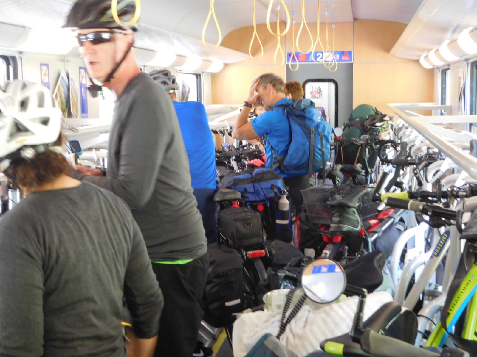 We found this train trip to be a super adventure, and we think other bloggers also thought it was cool. But the other cyclists on the train, mostly German, sorry to say, were so darn serious! There was no laughing, and certainly no singing of camp songs or anything like that. We felt sorry for them - on what surely will be an adventure of a lifetime, and so grim about it!