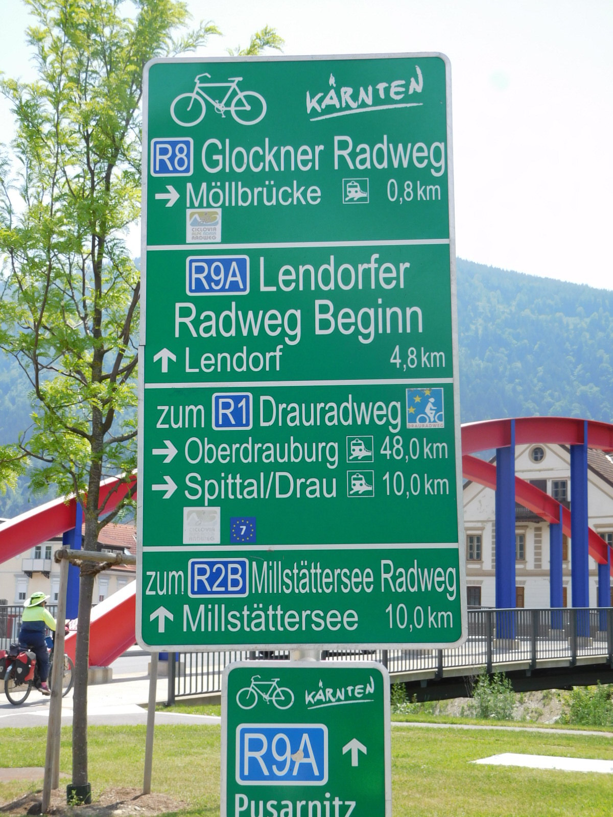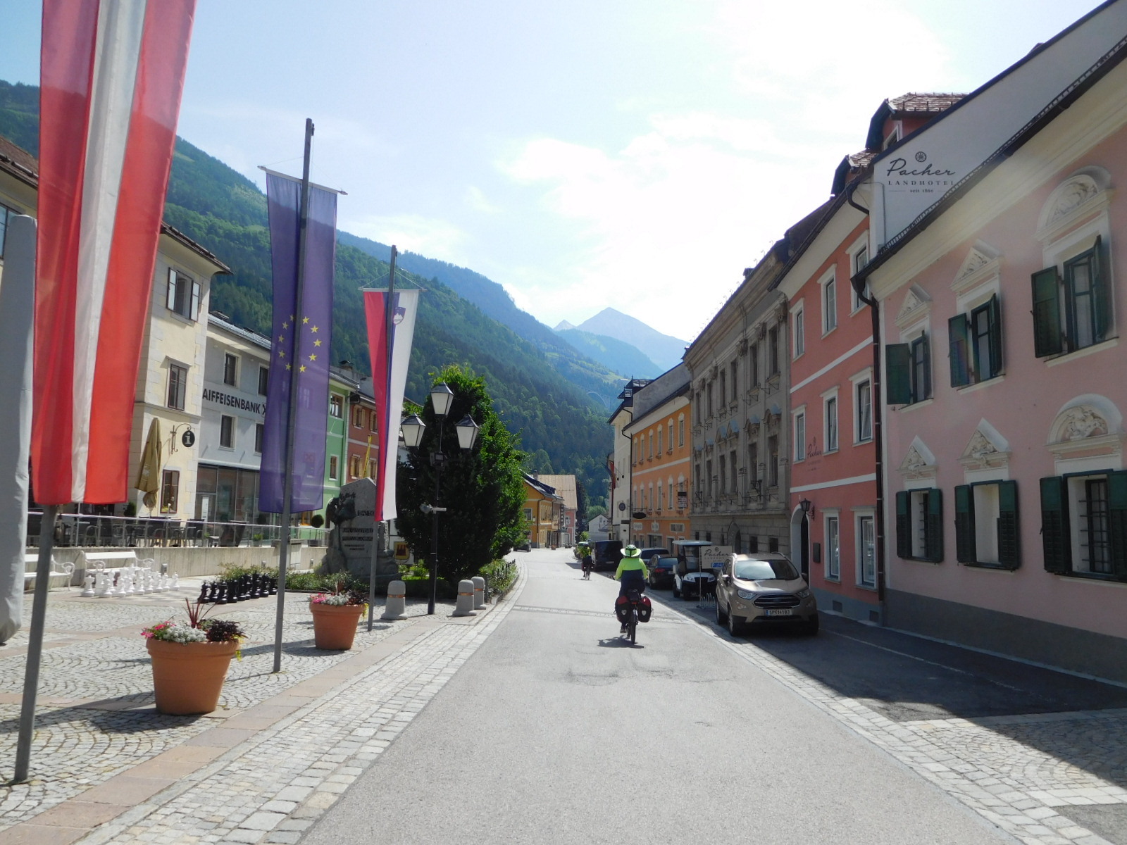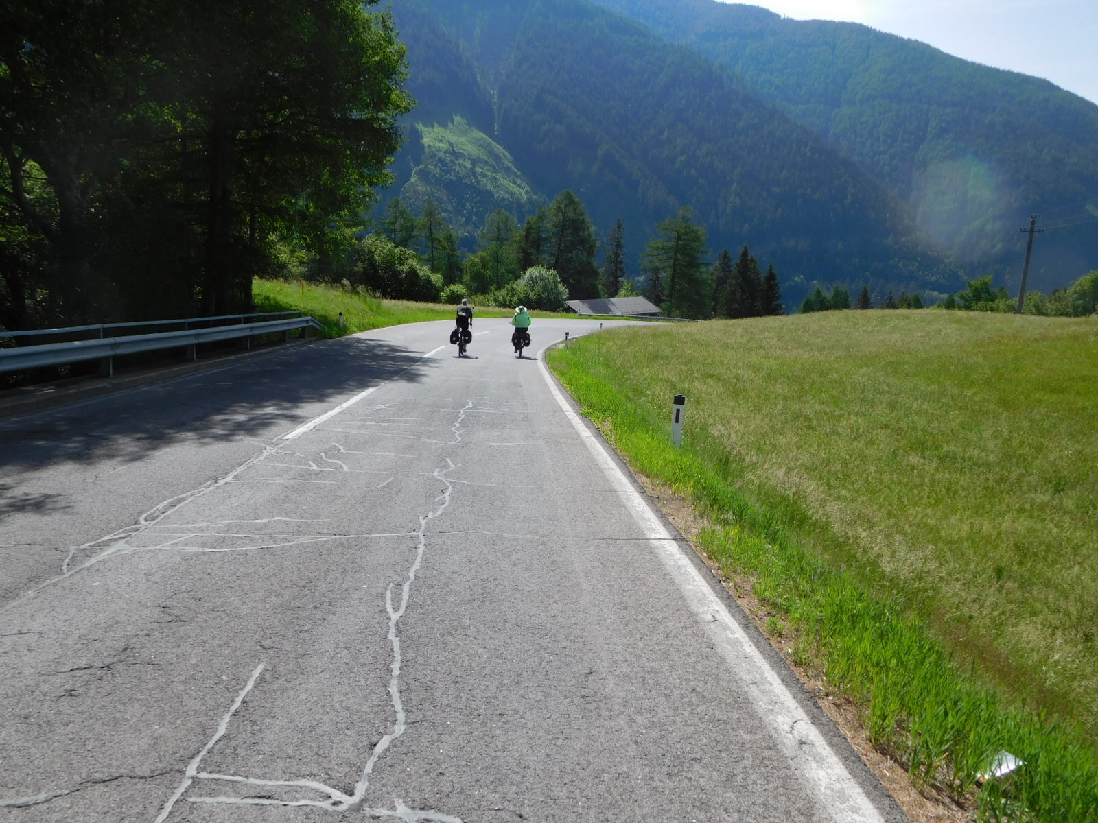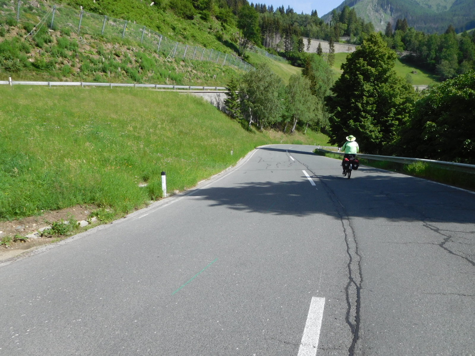 At the other end of the tunnel - Mallnitz - came something that others have also waxed poetic about - 7 km of straight down! According to the GPS, we dropped 521 meters in this distance. People with time to research out there - how does this compare with the Stelvio Pass or Mont Ventoux? Anyway, we would hate, hate! to have to cycle up this one.