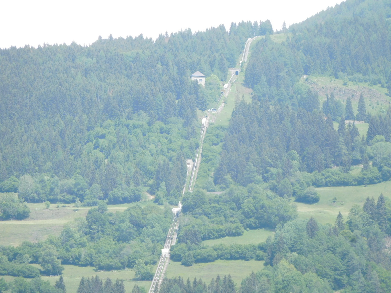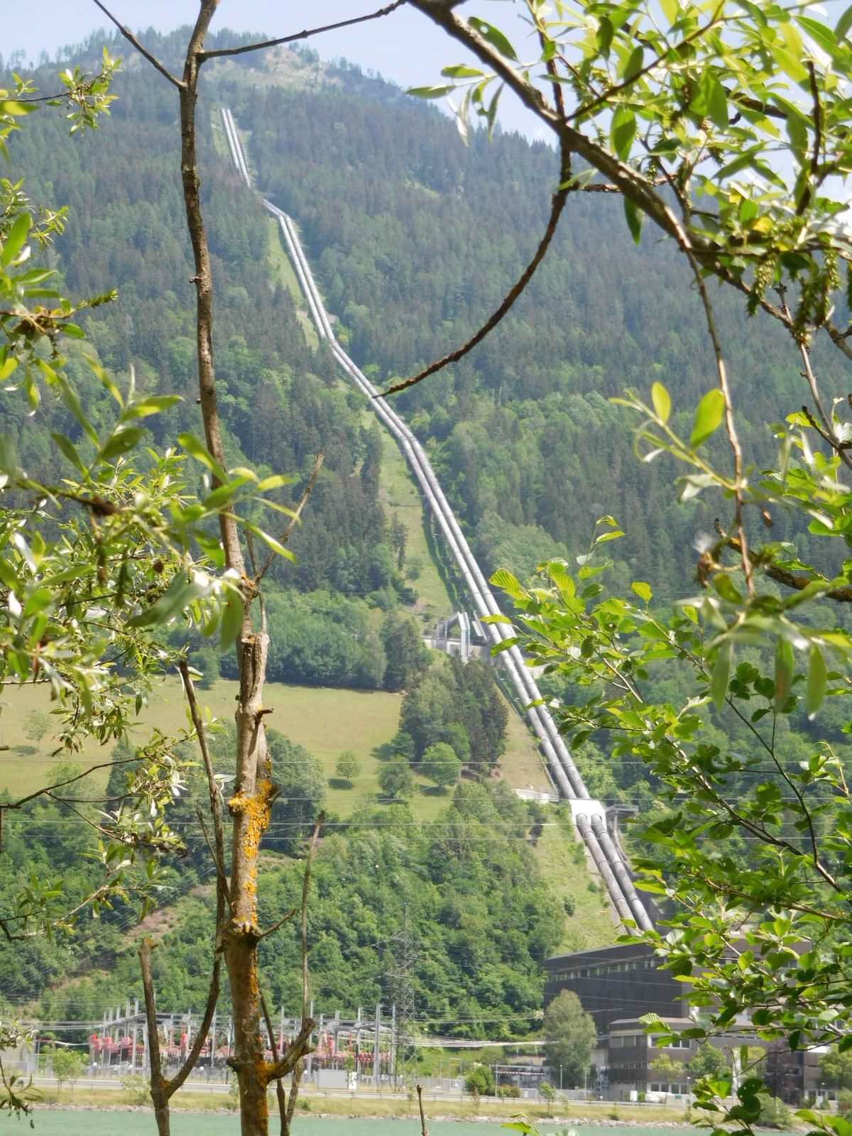 One of the lines up a mountain was not a lift but rather a dual pipeline. This dropped down to a power plant and a reservoir. There must have been a lake up top, and water coming down could power turbines. It also struck me that this could be a pumped storage arrangement, in which power in time of surplus could put the water up the mountain, and when needed, the water coming down would regenerate the power. This is just surmise, we really did not know what this was all about.
