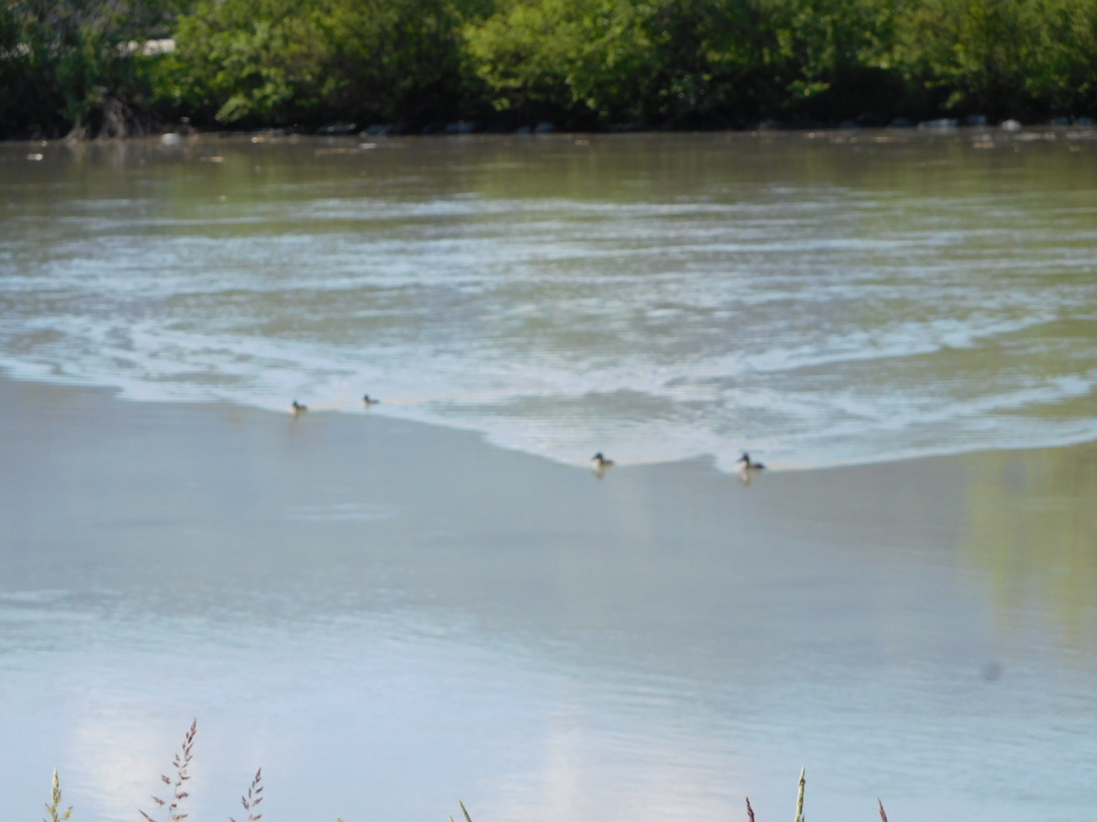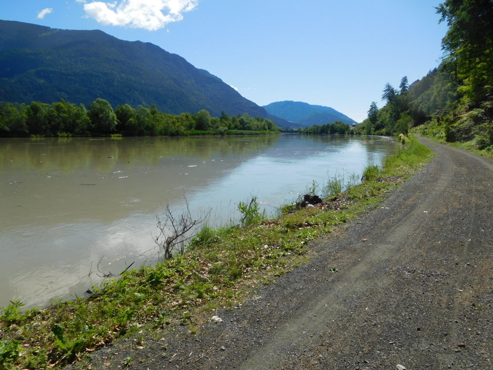 The river had lots of debris floating in it, and also ducks who were going with the quite fast flow, but also paddling toward shore. That's the same technique that Manni mentioned to us, to get to shore if you happen to fall into his fast moving stream at Feldkirch.