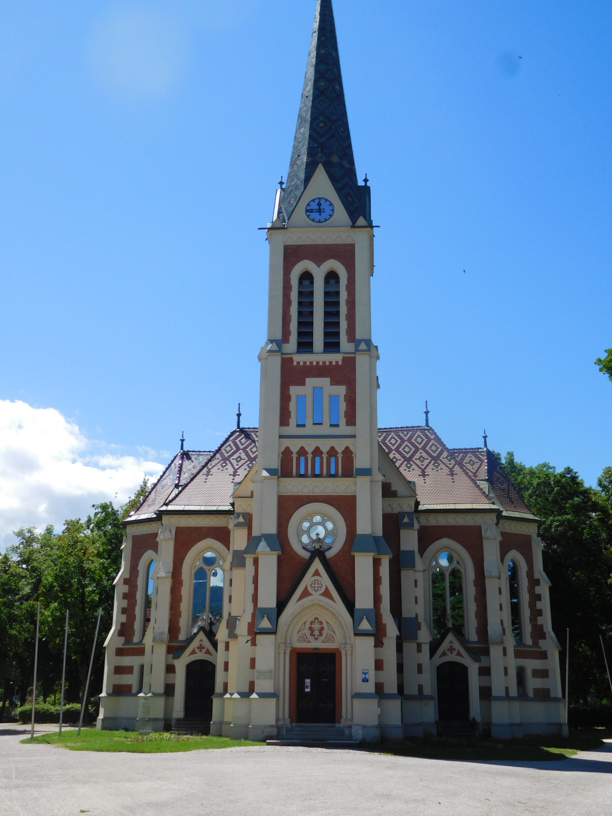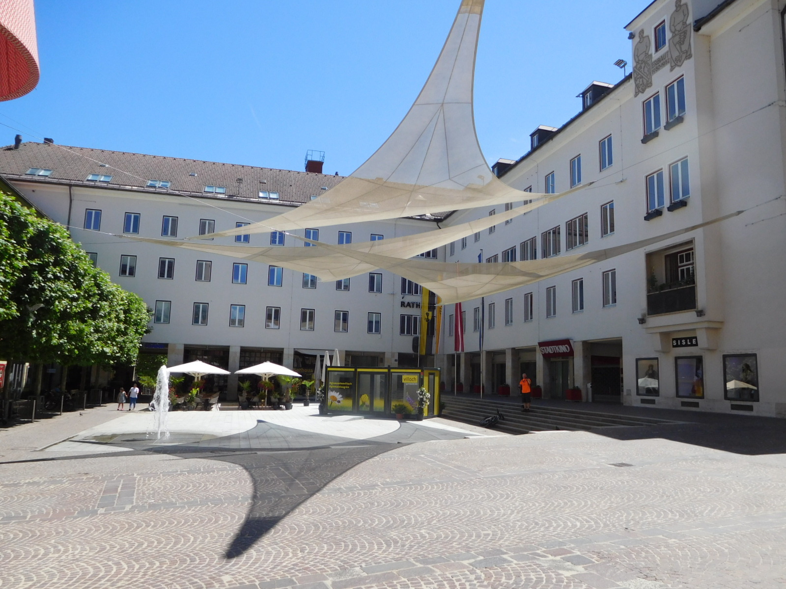 The Goldenes Lamm is right on the Villach pedestrian street. We went down to the end, where the Rathaus is, and found a shady bench on which to eat our sandwiches. The rathaus is very plain, and relatively new, and in fact although not unattractive, the Villach downtown does not rate highly compared to some we have seen.