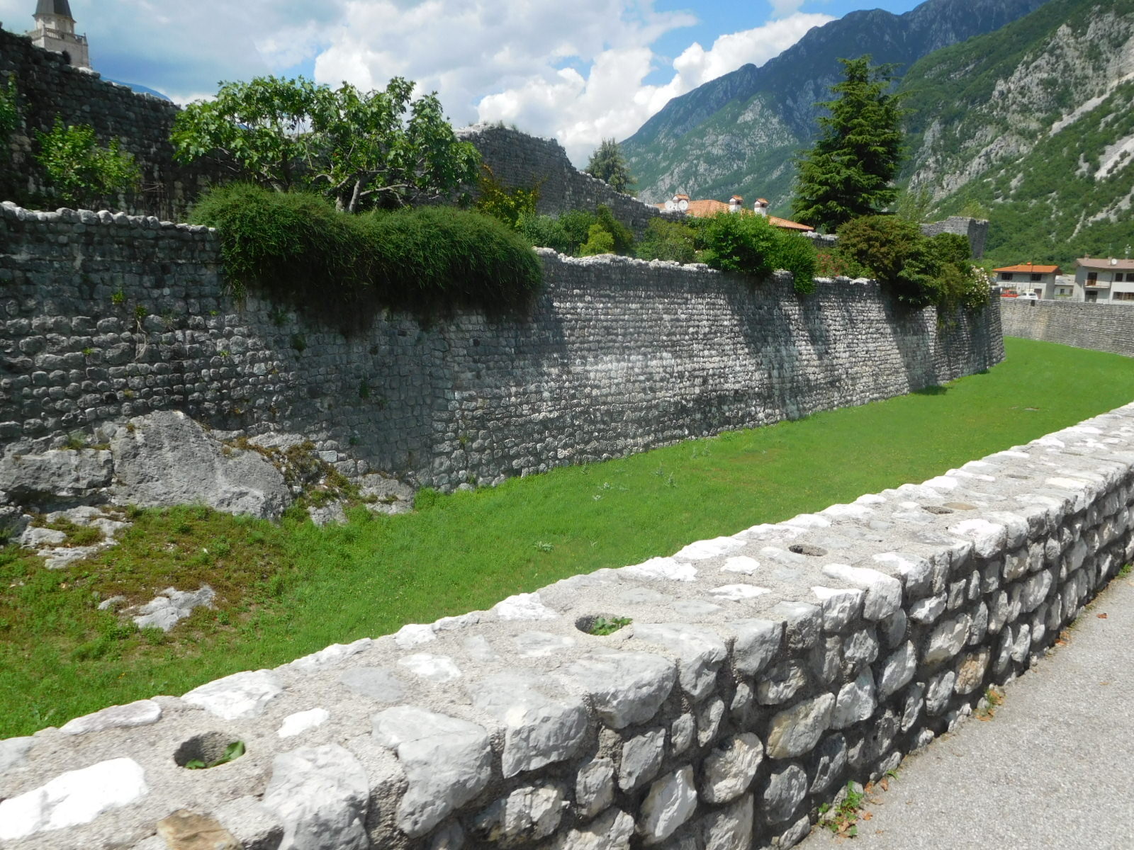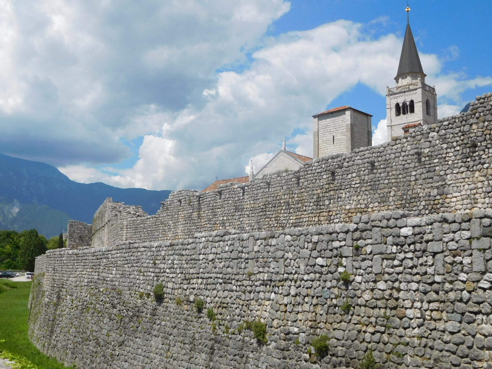 The town of Venzone has some interesting things about it, which we could appreciate even as we rode through in a fairly frazzled state. It begins with the place having been a unique walled town, with a double wall and a moat between. That looks like this:
