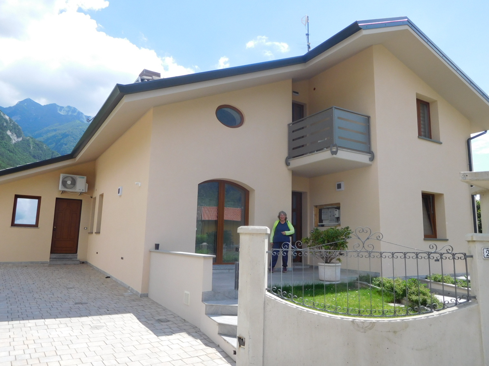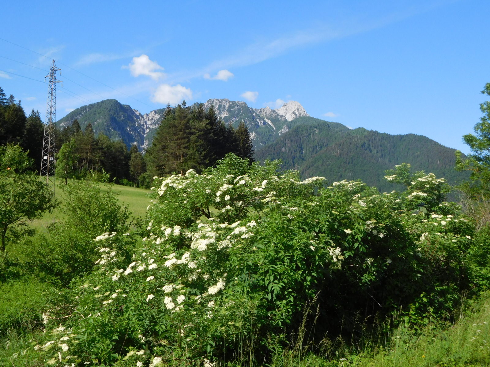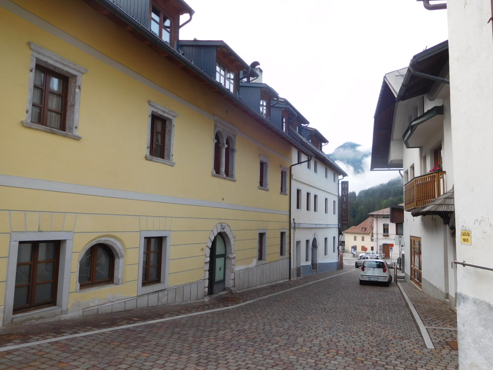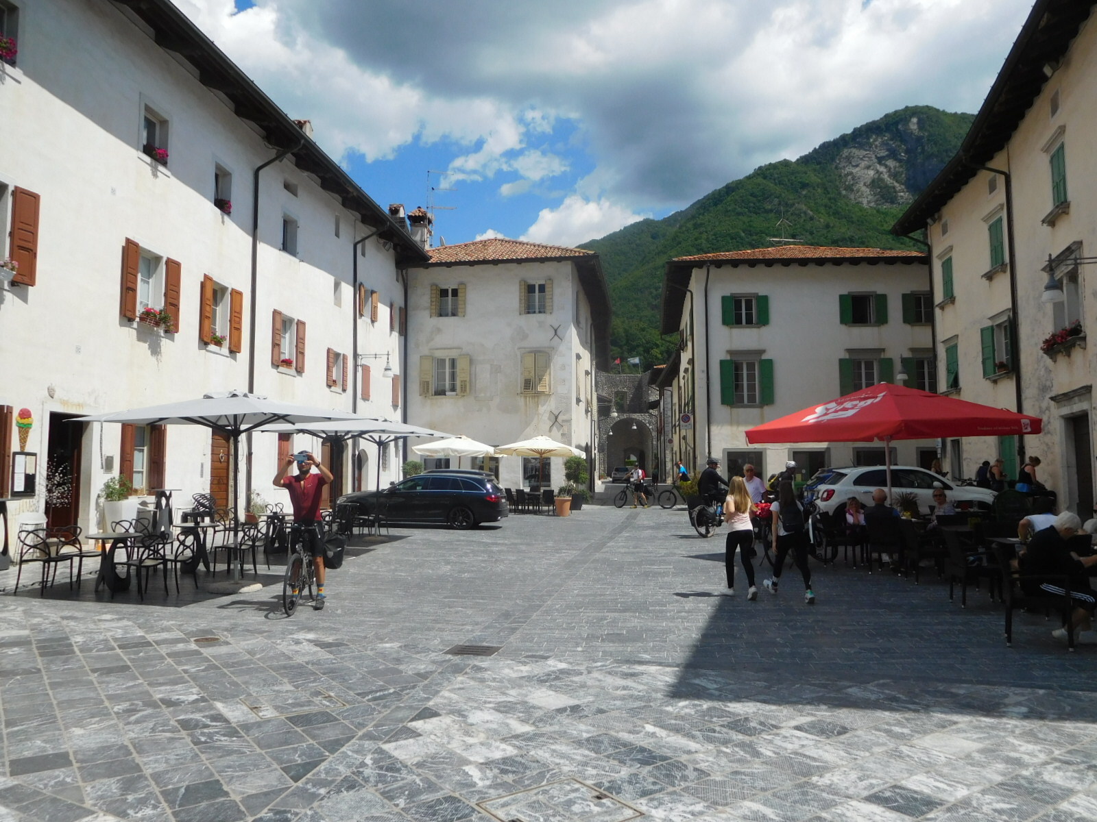 One of our friends sharing the route remarked that he would be having to cycle out east of Venzone, because he could not find a place in town. But we are proud of the one Dodie found for us. It's in sort of a private home, but with five rental rooms built in. The place is absolutely immaculate, large, with good wifi, and free drinks left for us in the fridge. Almost best of all are two large windows giving a great cross breeze, and each with a view of mountains. The other four rooms seem to be vacant, so too bad our friend missed out.