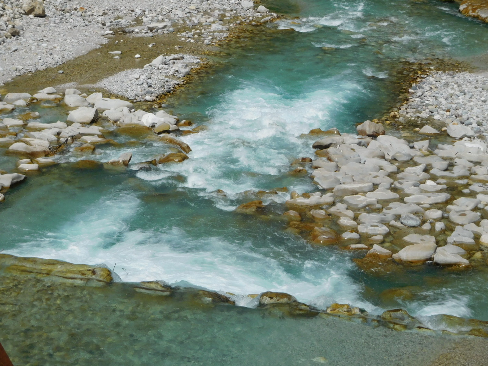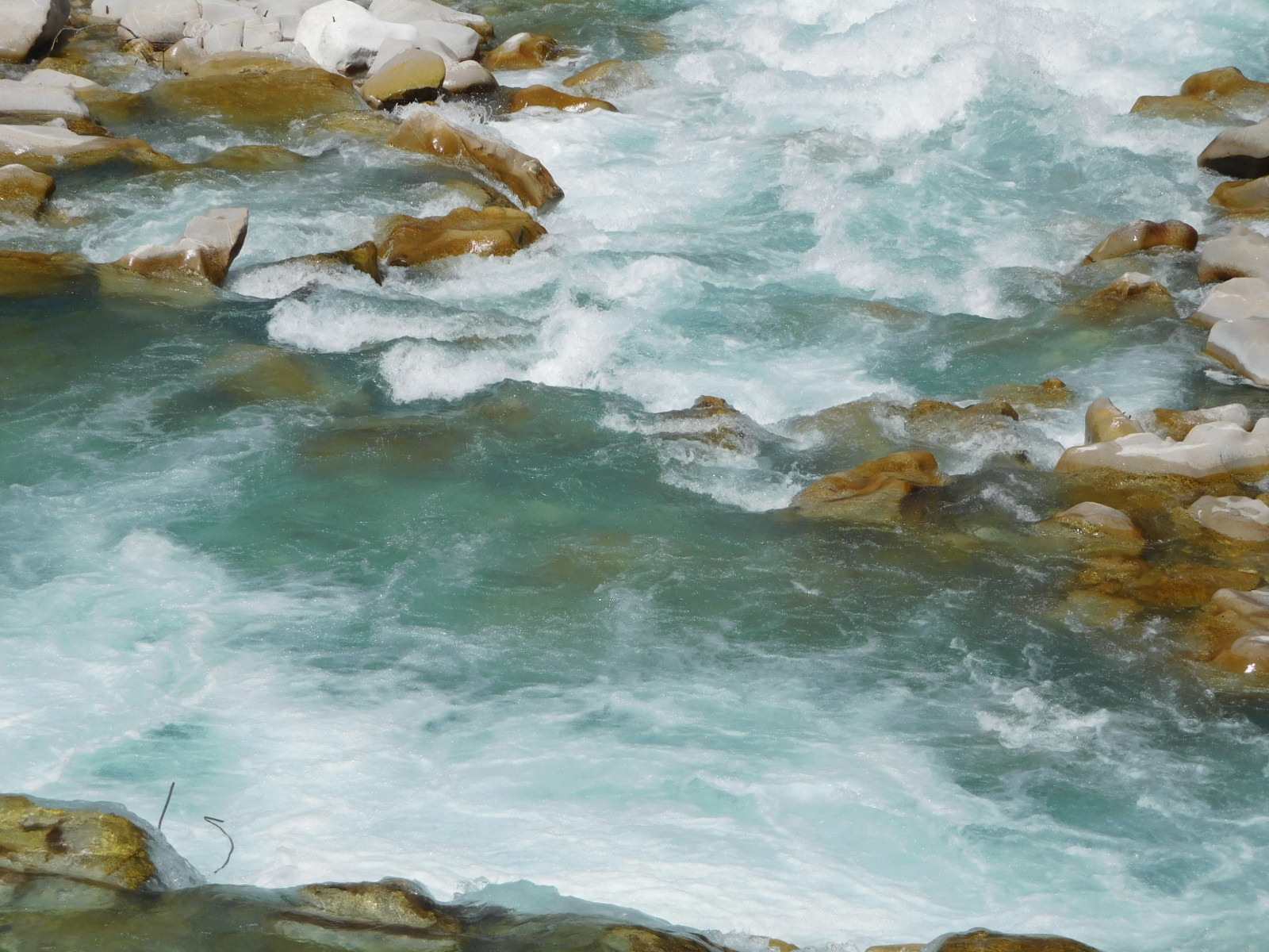 The river was a continuing source of fascination, for its colour and speed. And there were waterfalls from tributaries too!
