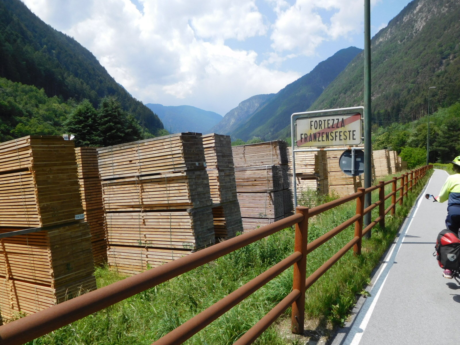Next up was the town and area called Fortezza. The river Eisack valley is narrow there, and a fortress was built to control the area. But a dam was also subsequently built, creating a reservoir behind. From a cycling point of view, all the fortressing and damming and highway too created a twisting route.