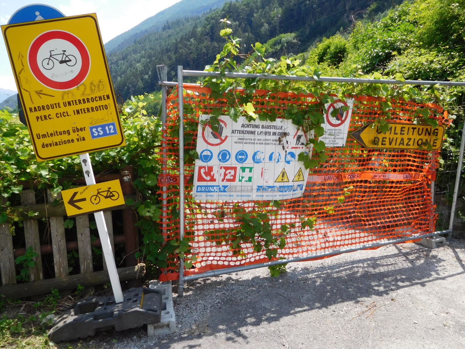 We ran into this detour, which we thought was uniquely Italian. It had been there so long that the grapes will be harvestable on the barrier.