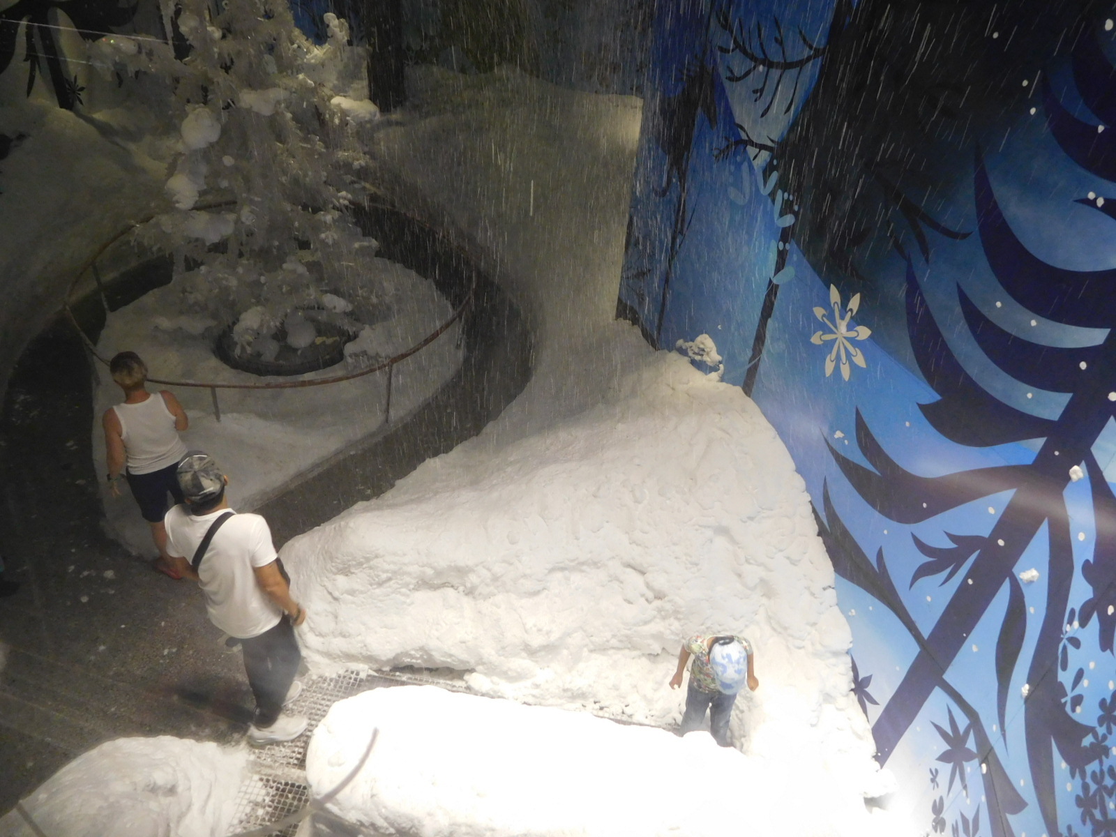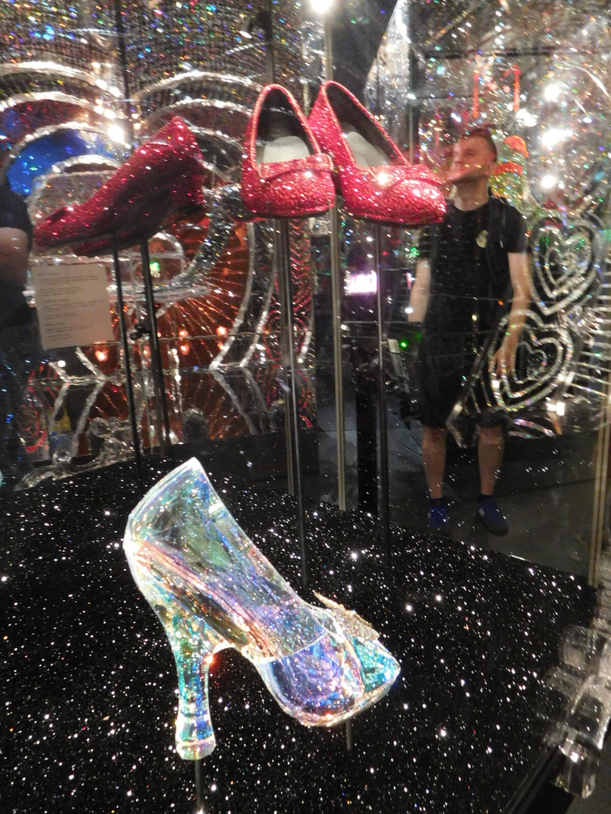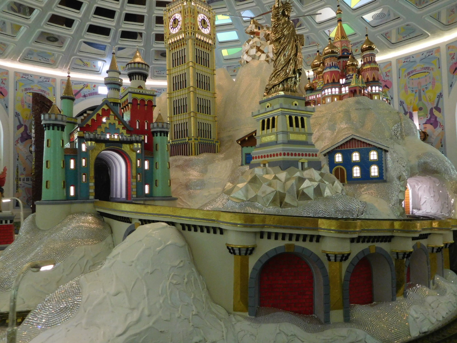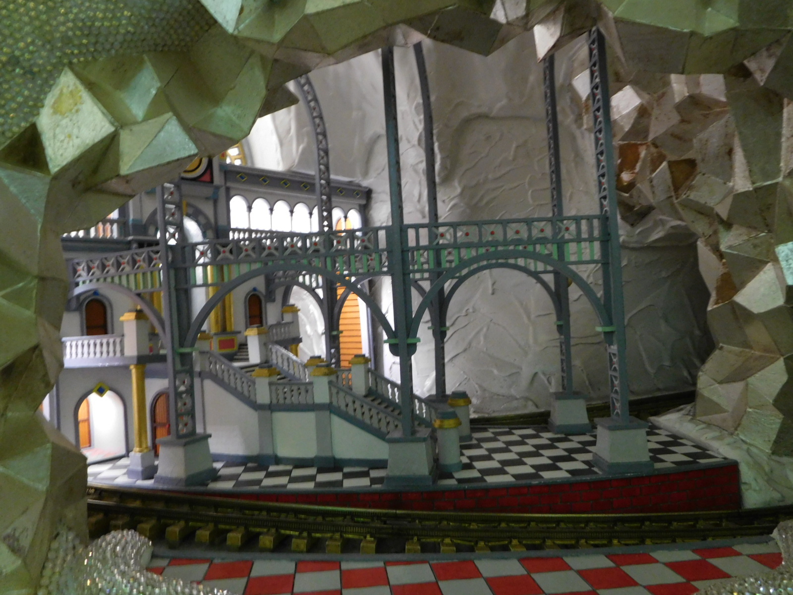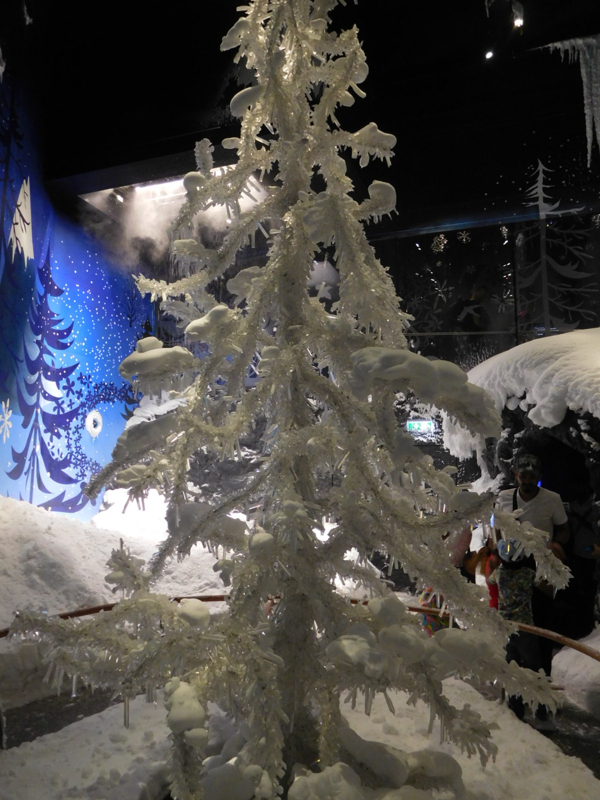 Within 20 kms of Innsbruck we came to Wattens. Wattens is the home of Swarovski, which is in Europe a very famous maker of jewel like crystal (plus other related stuff, like abrasives). In most towns there is a Swarovski store, featuring crystal jewellery. Because of being the home base of the company (and origin town of the founding family), Wattens has Swarovski Crystal World. We passed by here in 2014 and visited the centre. At the time I remarked on being surprised that rather than being the story of how crystal is made and marketed, Crystal World is actually an art exhibit, featuring installations that each in its unique way takes advantage of crystal and light. Dodie chided me for only being concerned with machines, or maybe machines and economics vs art, but anyway I was willing to give it another go. There was also the prospect that eis could be found inside, which would be my other main interest.