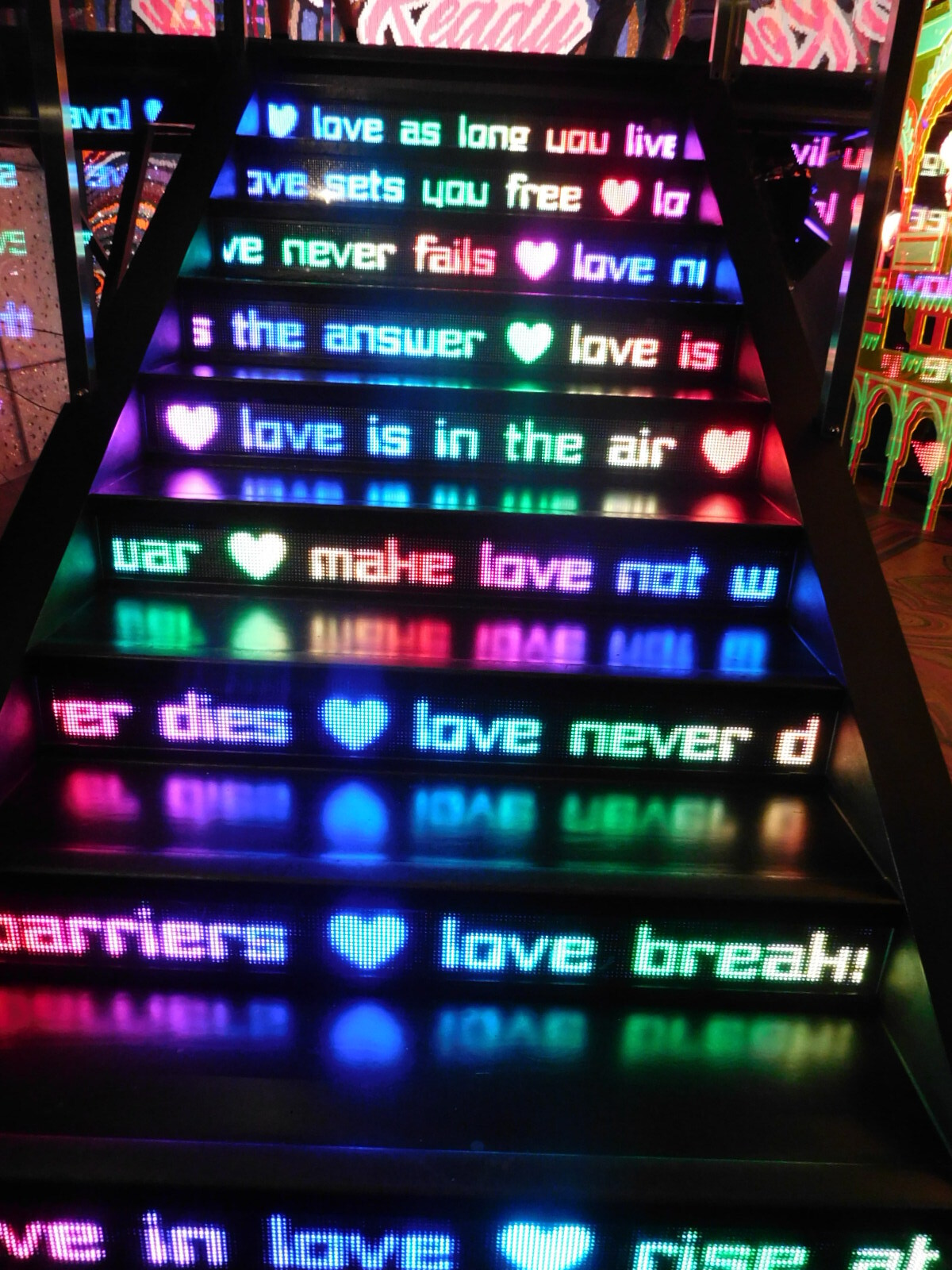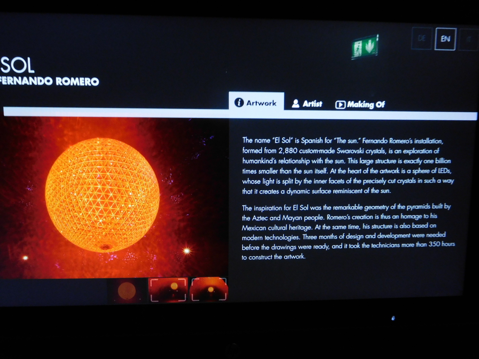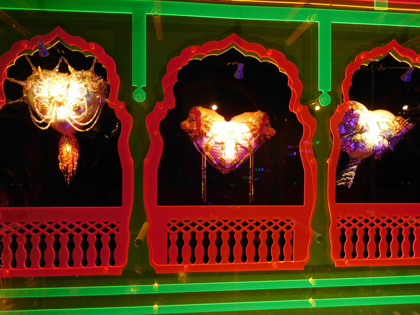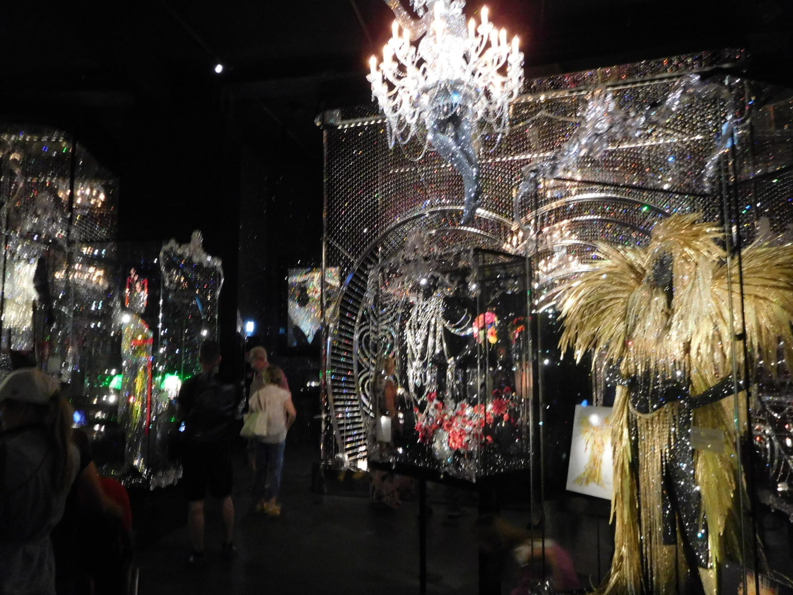It turned out to be interesting and worth it, though I am sure some would label the art installations kitschy. Since light and to some extent temperature were important to each installation, visitors travelled from one to the other by passing through very heavy black curtains. There were 18 installations, or "chambers" in the show, and obviously we can't review or describe them all here. Not to mention that is was hard to fathom what some were about. So here are some bits of photos and comments, hopefully to convey the general idea.