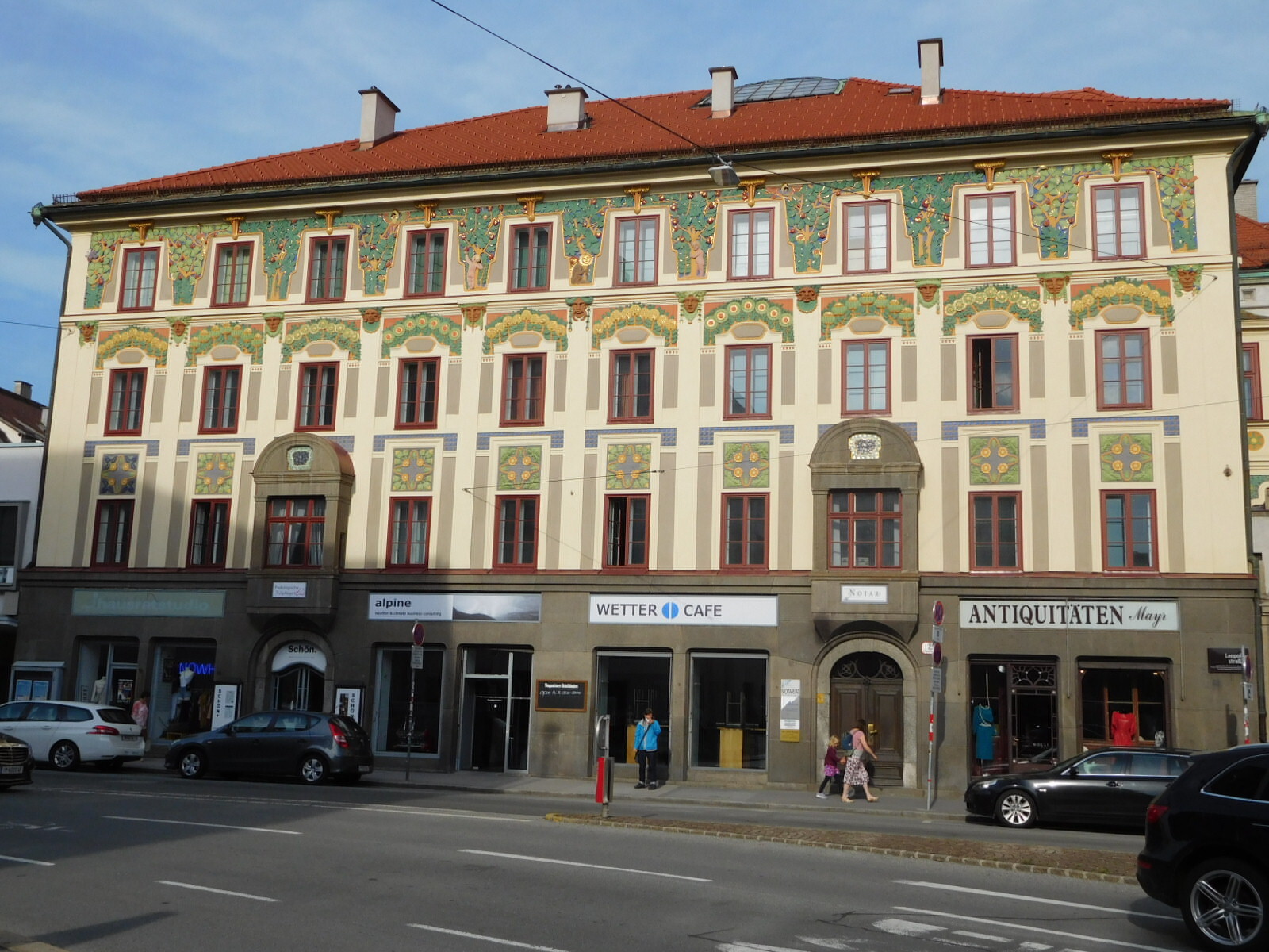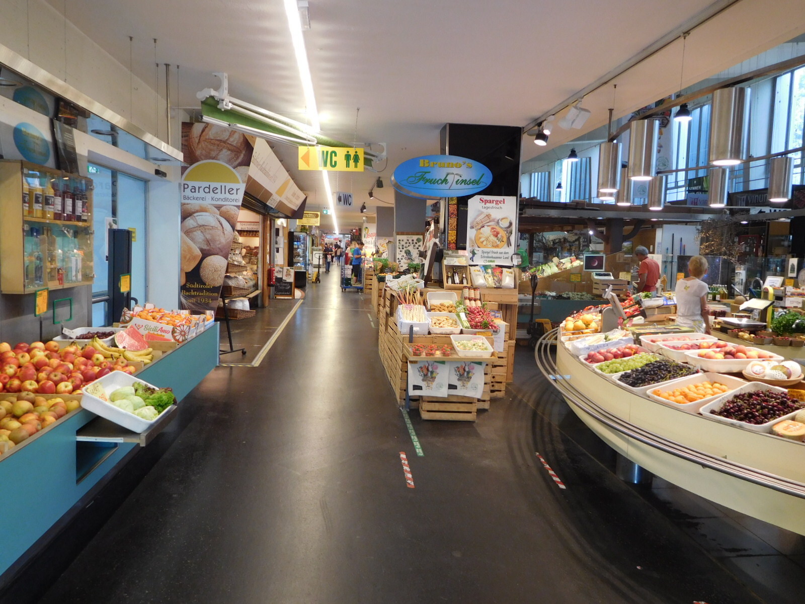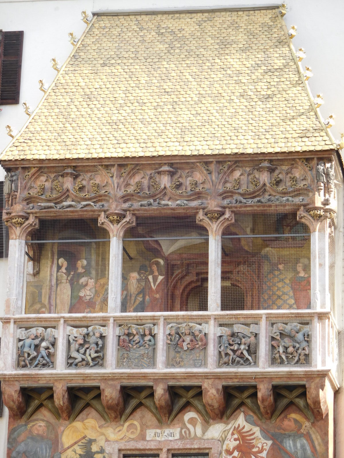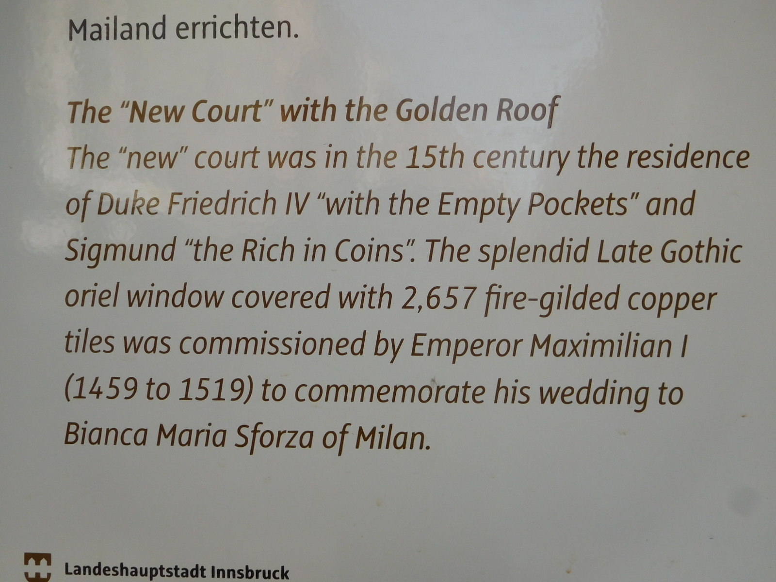We knew we had time today, because the quirks of finding places to stay put us in Jenbach for tonight, a mere 46 km away. So we set out for a bit of a closer look at Innsbruck. The "market" is always a good starting point. Innsbruck does not have a big market square, with lots of vendors bringing in produce. But there is an indoor market, which is sort of ok. We had a quick peek at it, and I was also happy because the lady in the bakery there understood my German and did not have to make any corrections. Of course when you are sticking with mohn schnecke you can't really go wrong!