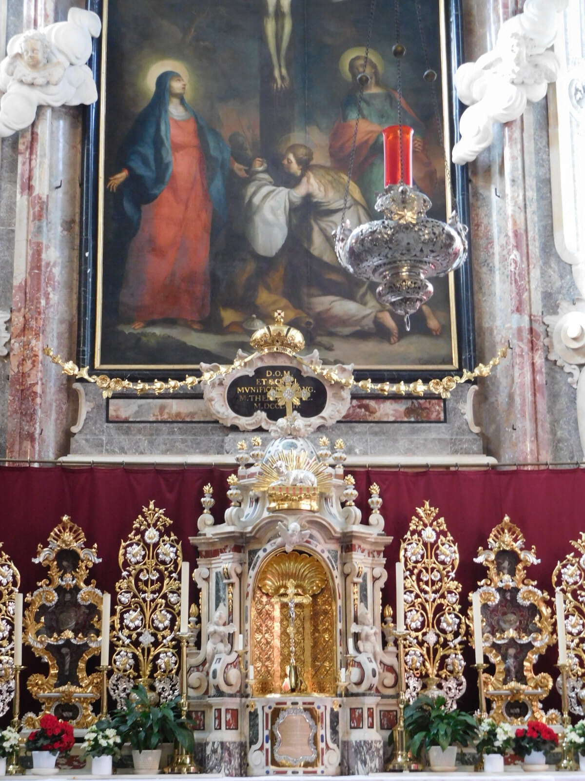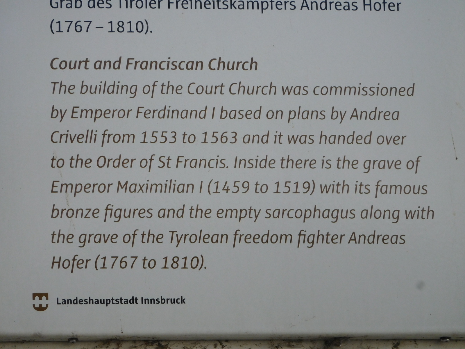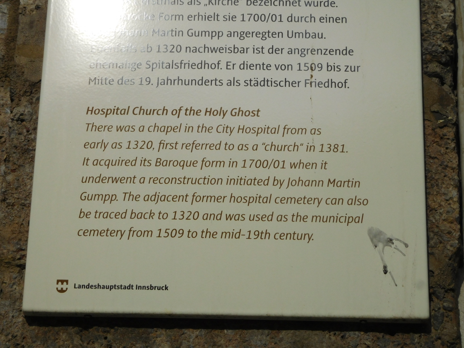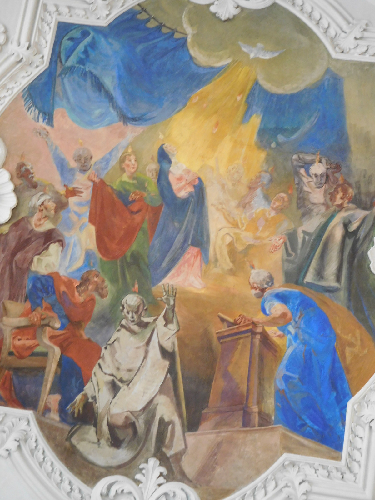 We can't visit every church in Austria, or even in Innsbruck, but the Spitalskirche is rather devoted to the Pentecost, something that interested us since it closed all the grocery stores we might have needed, last week.
