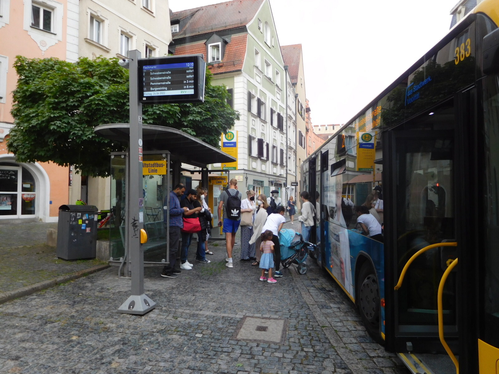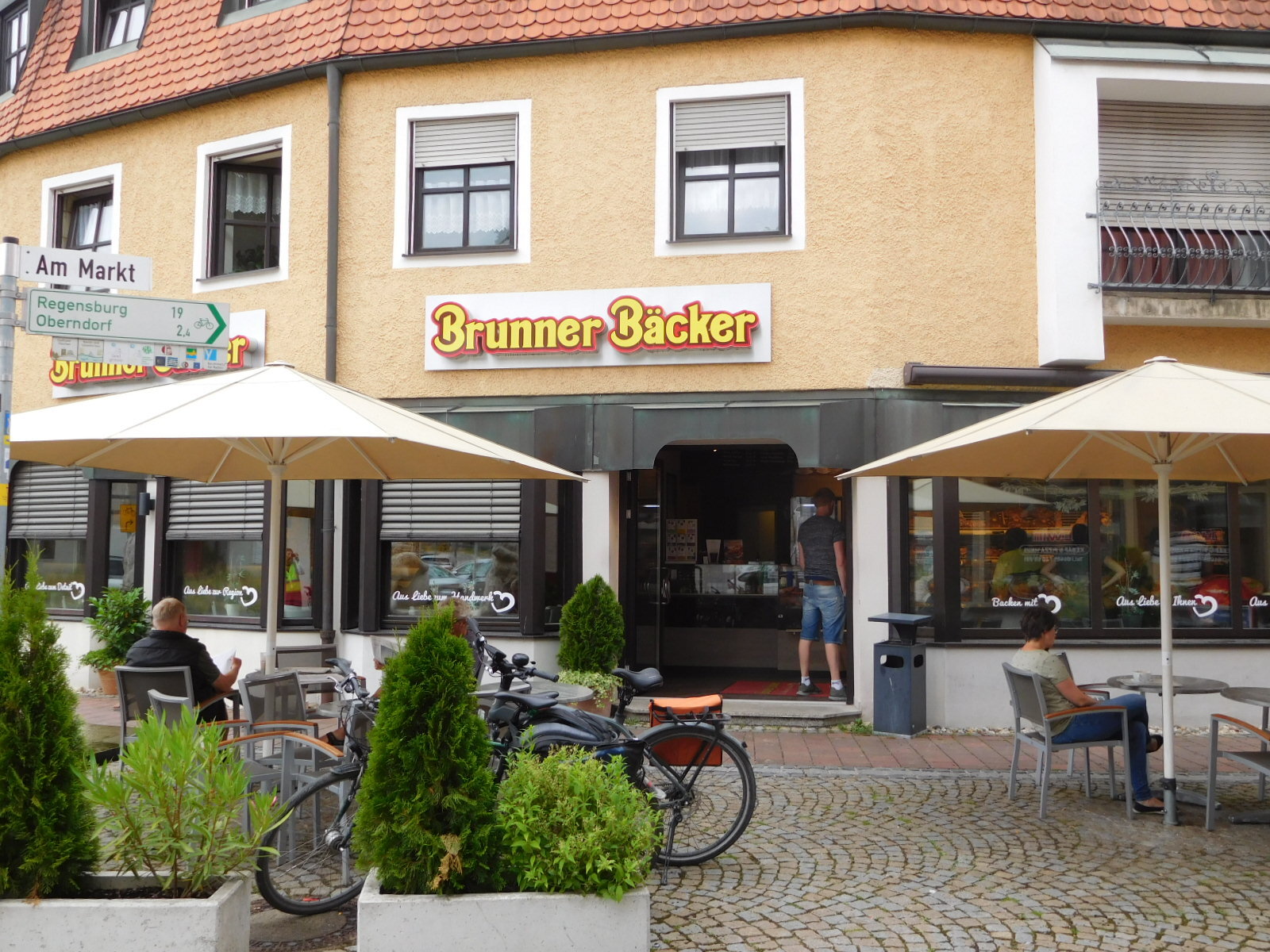 We knew that Regensburg had a fine altstadt and ancient cathedral, but we decided not to go looking for it. The experience with the BMW and the buses was part of it, but with the rain we also had an interest in just getting to our destination. It seems we have taken this tack before. Looking up our other visit here, in 2012, it seems we focussed on one bakery we liked.