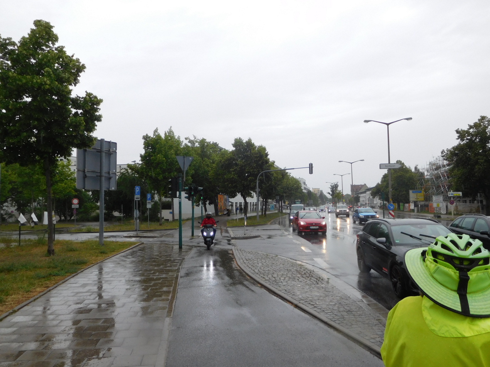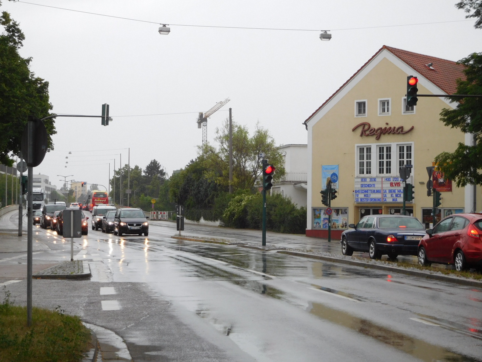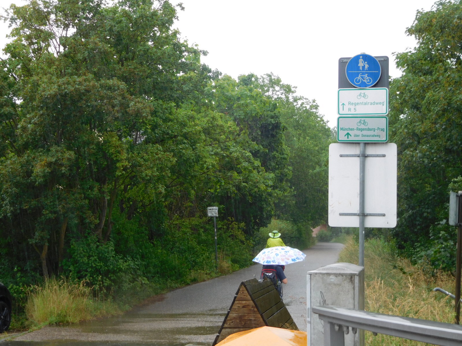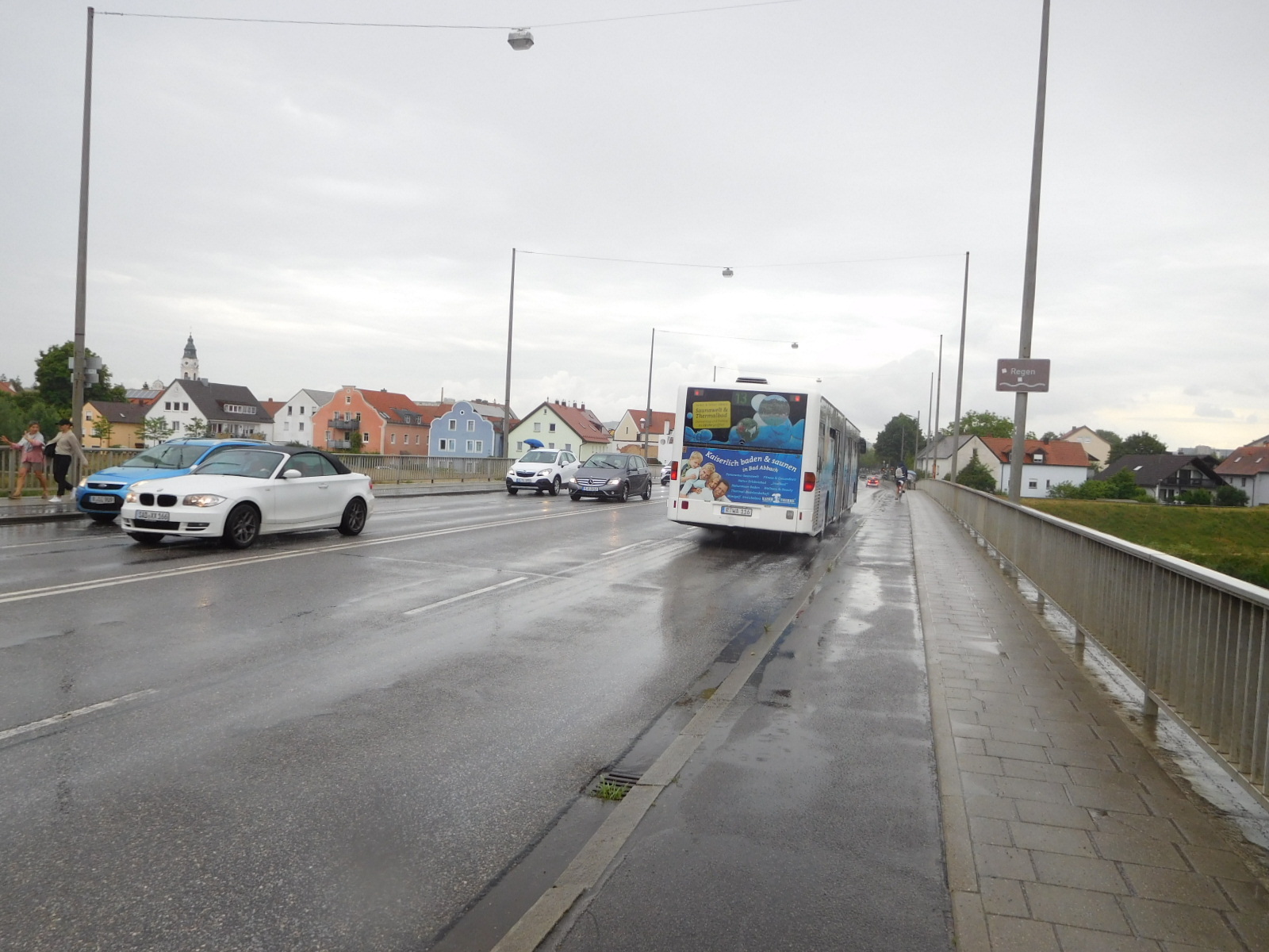 Regensburg is named for the Regen river, which comes from the north and east (starting in Czech) and joins the Donau here. Our route follows the Regen, at least for a while, so this is where we left the Donau. Getting onto the Regen radweg meant working our way through outskirts of Regensburg. True to the form we we had already picked up closer to town, we found aggressive traffic, and some wild and/or abusive bike riders.