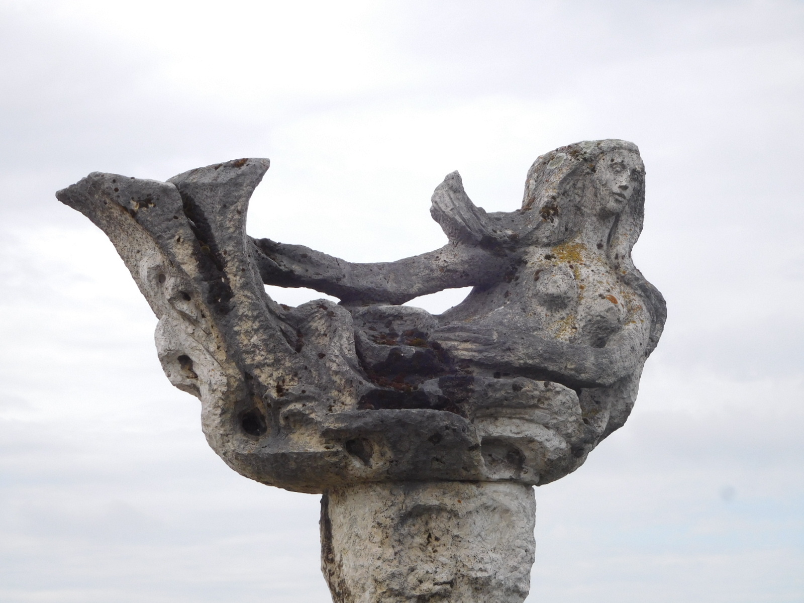 We took shelter under a nearby tree, because now it was also time to put on our rain pants, since the rain had intensified. Our tree shelter was already occupied by three cyclists, who were trying to eat their sandwiches. Dodie stumbled against one as she balanced on one leg, with the pants. So he gave her a supporting arm, and a sympathetic ear as she explained about balance problems after concussion. This interlude under the tree was comforting, as we were already getting bad vibes from the town. The sympathetic cyclist, of course, was not from this place.