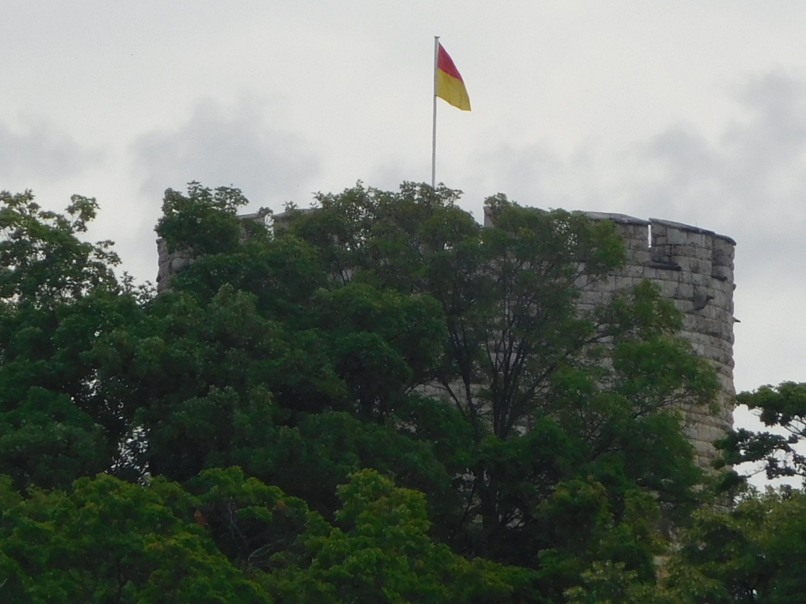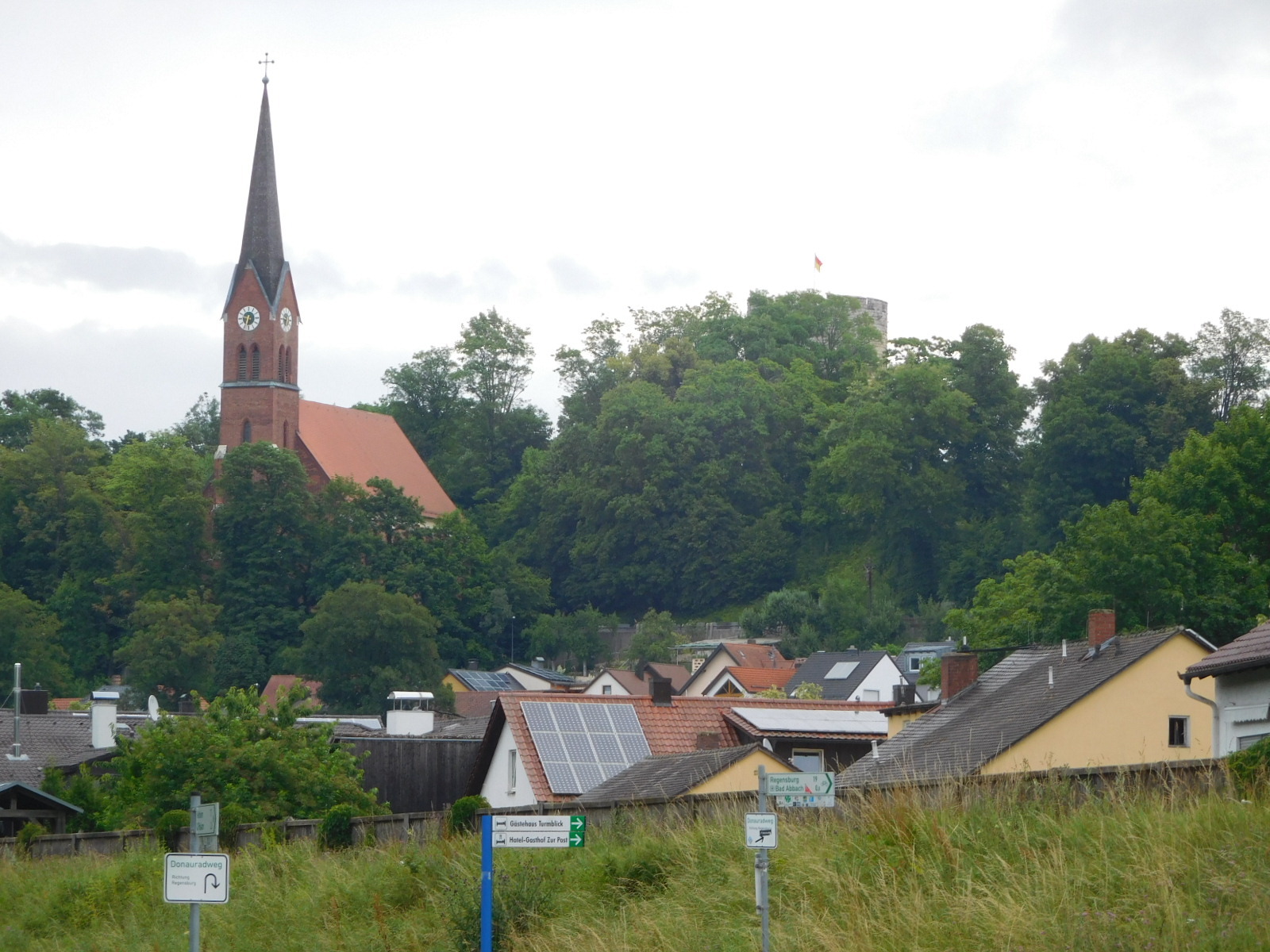 About 17 km down the line we approached Bad Abbach. Dodie pointed out that I should be impressed, because the schloss was flying a pennant. Yes, I was impressed, though what the pennant represented is not clear.