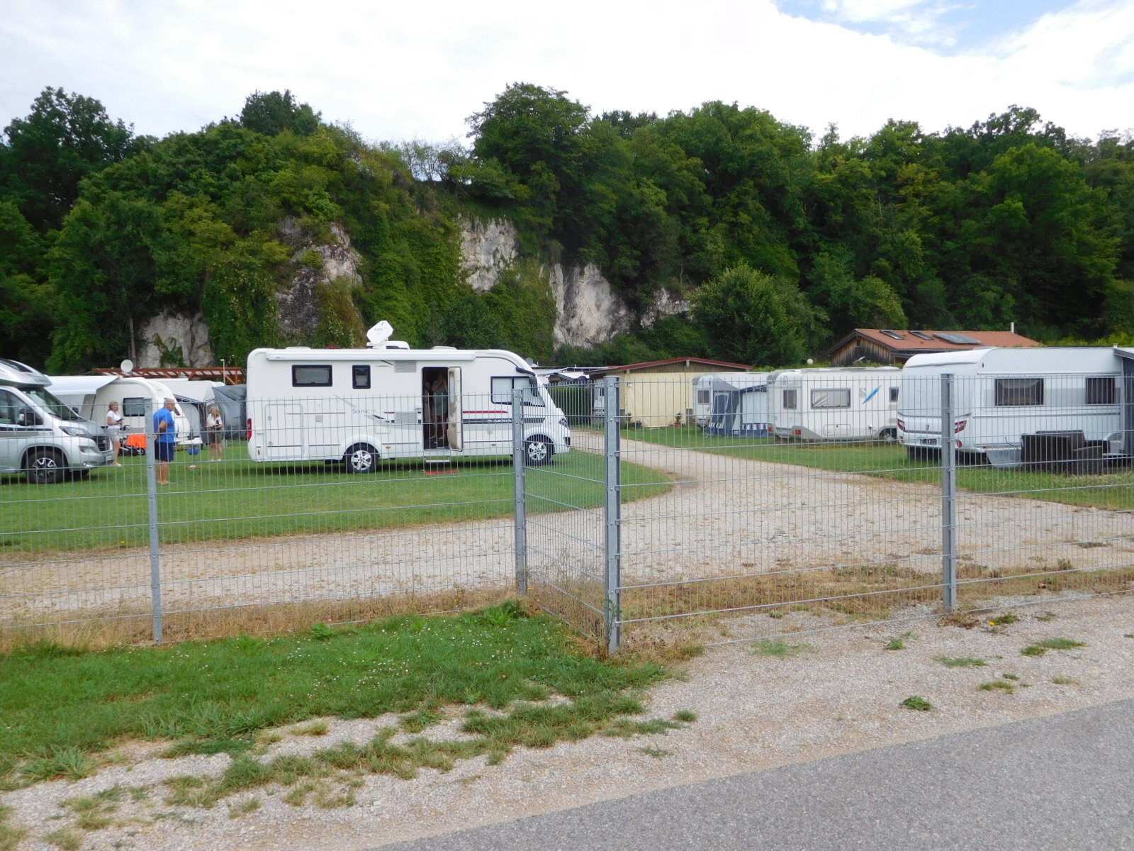 Now rolling beside the Donau, we observed a campground, of the type that always puzzles us as Canadians. People are content to just park their RVs, or put their tents on a piece of grass that does not have an RV on it. Sure Canada has "RV parks", but it also has some more pleasant "campgrounds".