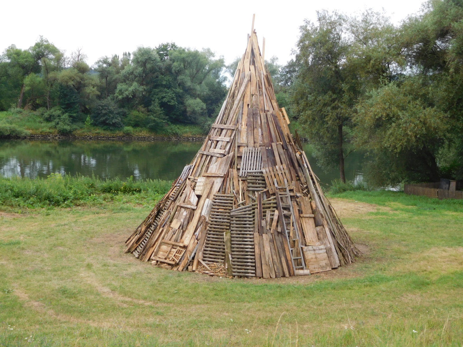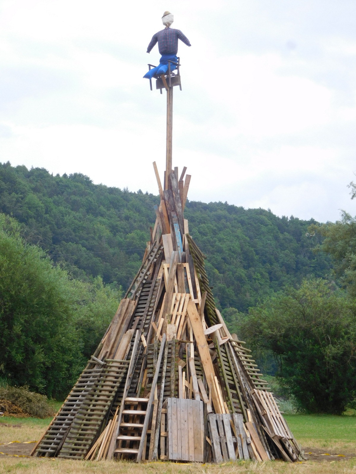 Back out on the trail we encountered a stacked wood pile, clearly set for burning. "Oh look", said I, "for Halloween". "They don't have Halloween here, silly", noted Dodie. We found a sign, that did not explain much. But the next stack and its sign gave us to understand that these fires would commemorate John the Baptist, on the eve and day of his saint's day. The setting of fires at this time has been going on since the 12th century, though putting a "witch" at the top of the pyre did not come in until the 20th century.