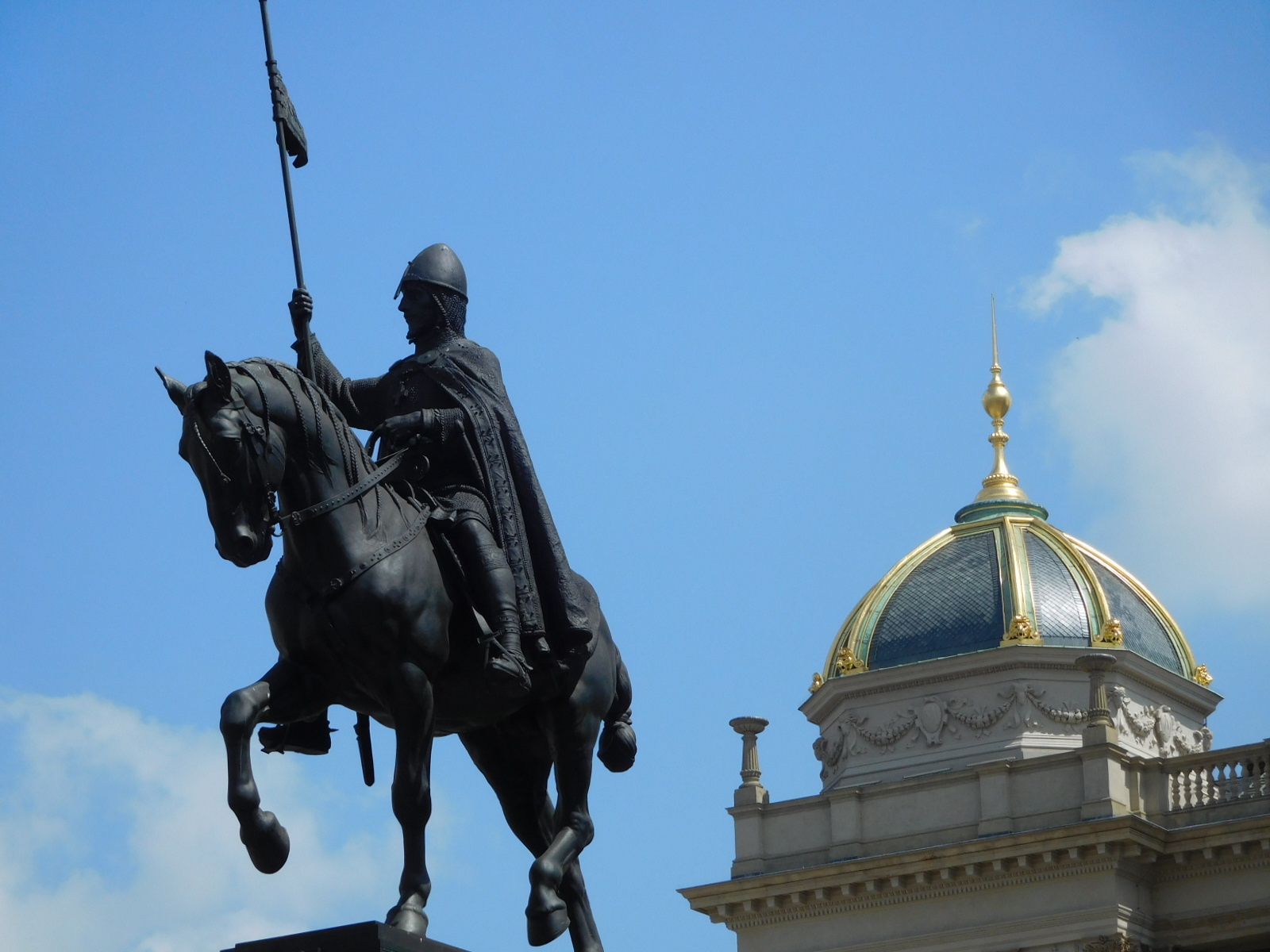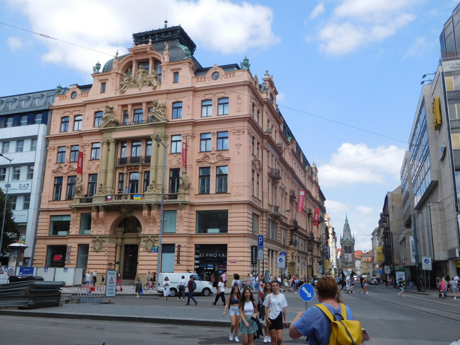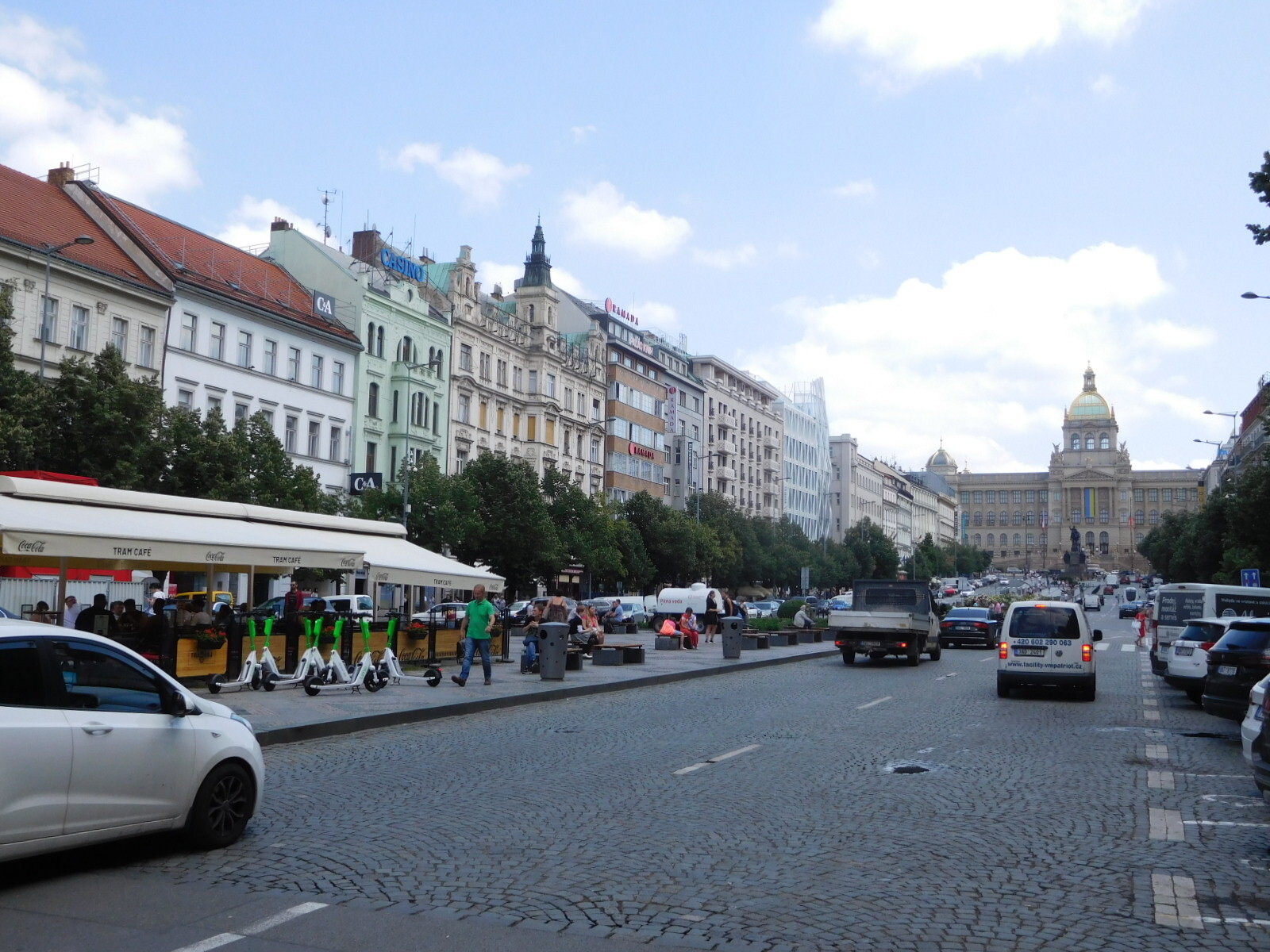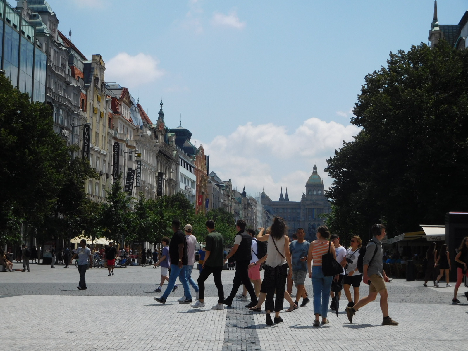 Back to the Old Town Square and looking southwest, you see Wenceslas Square, which is actually a very long street, lined with shops both high and low end, and reaching the National Museum and the mounted statue of Wenceslas.