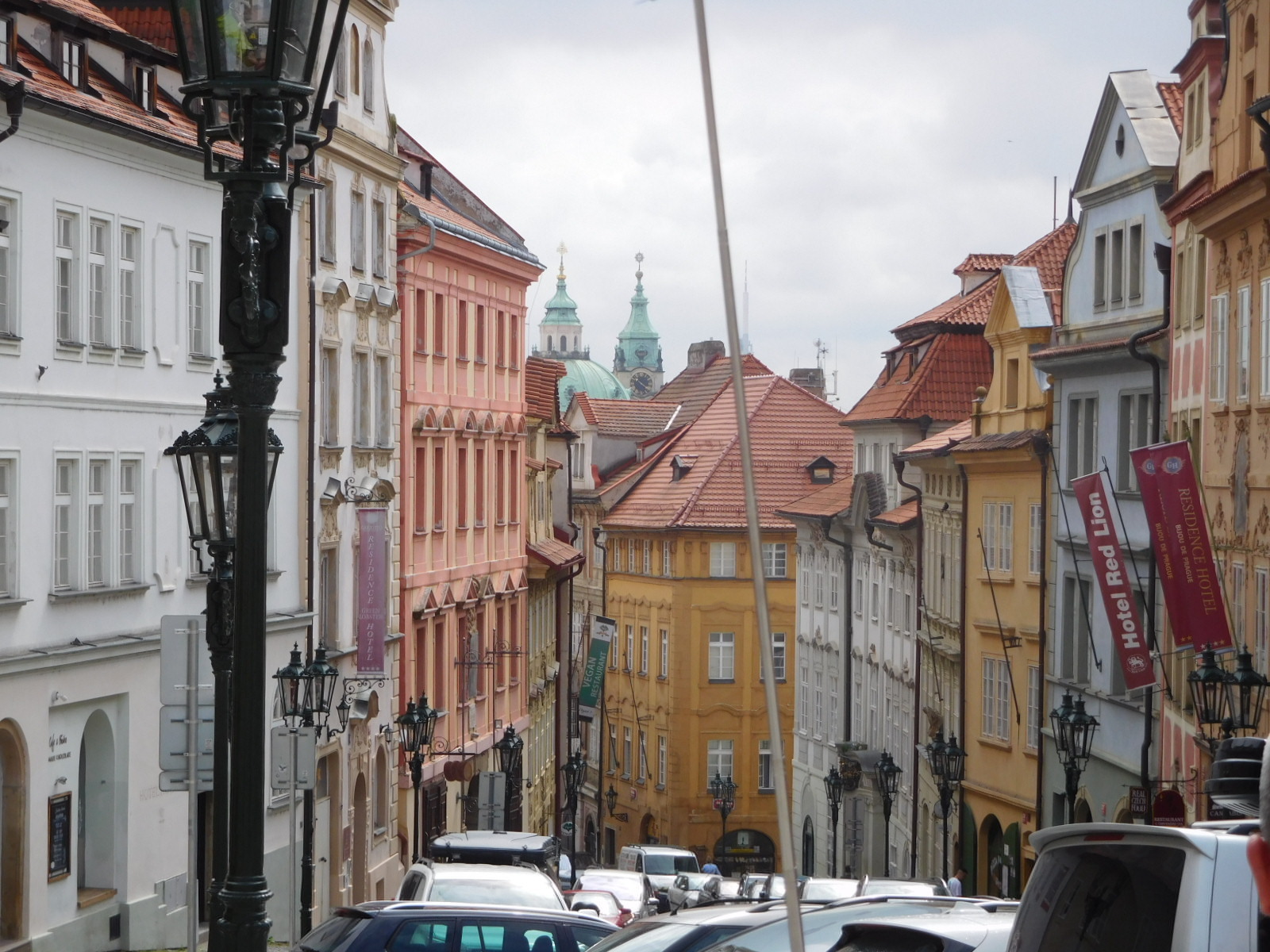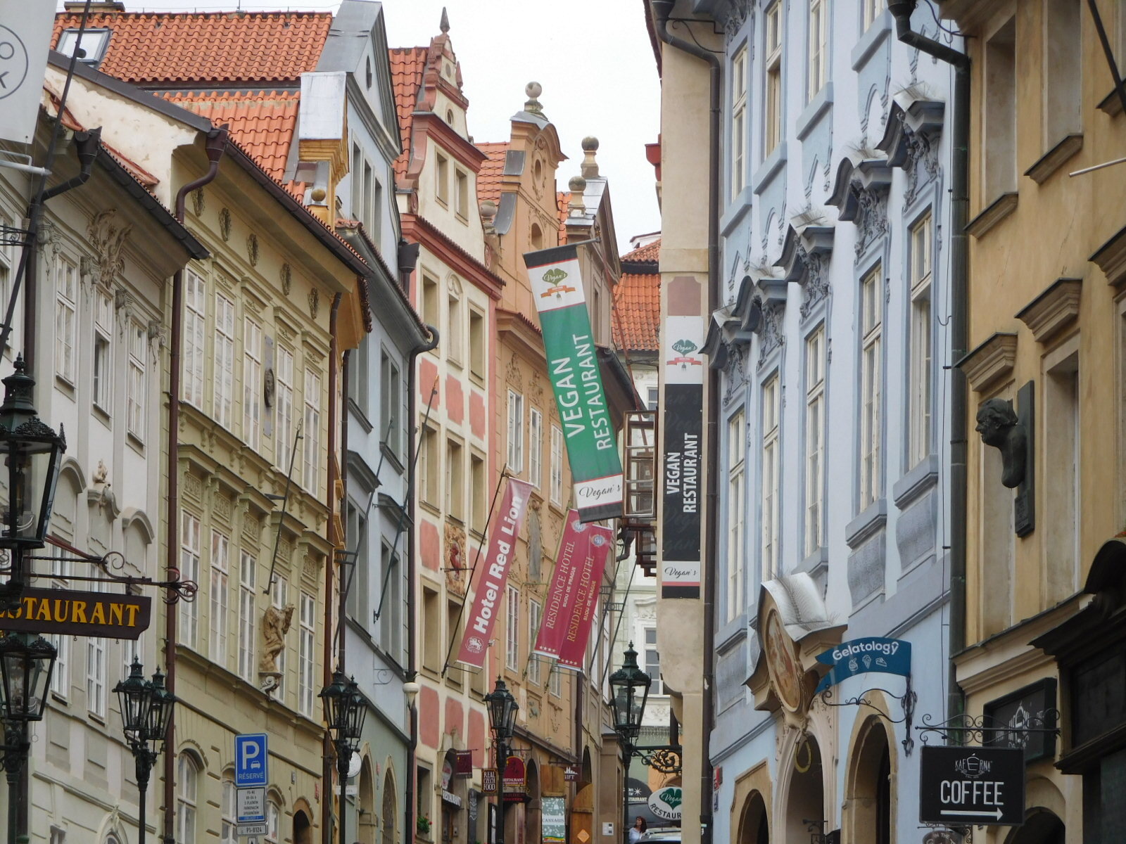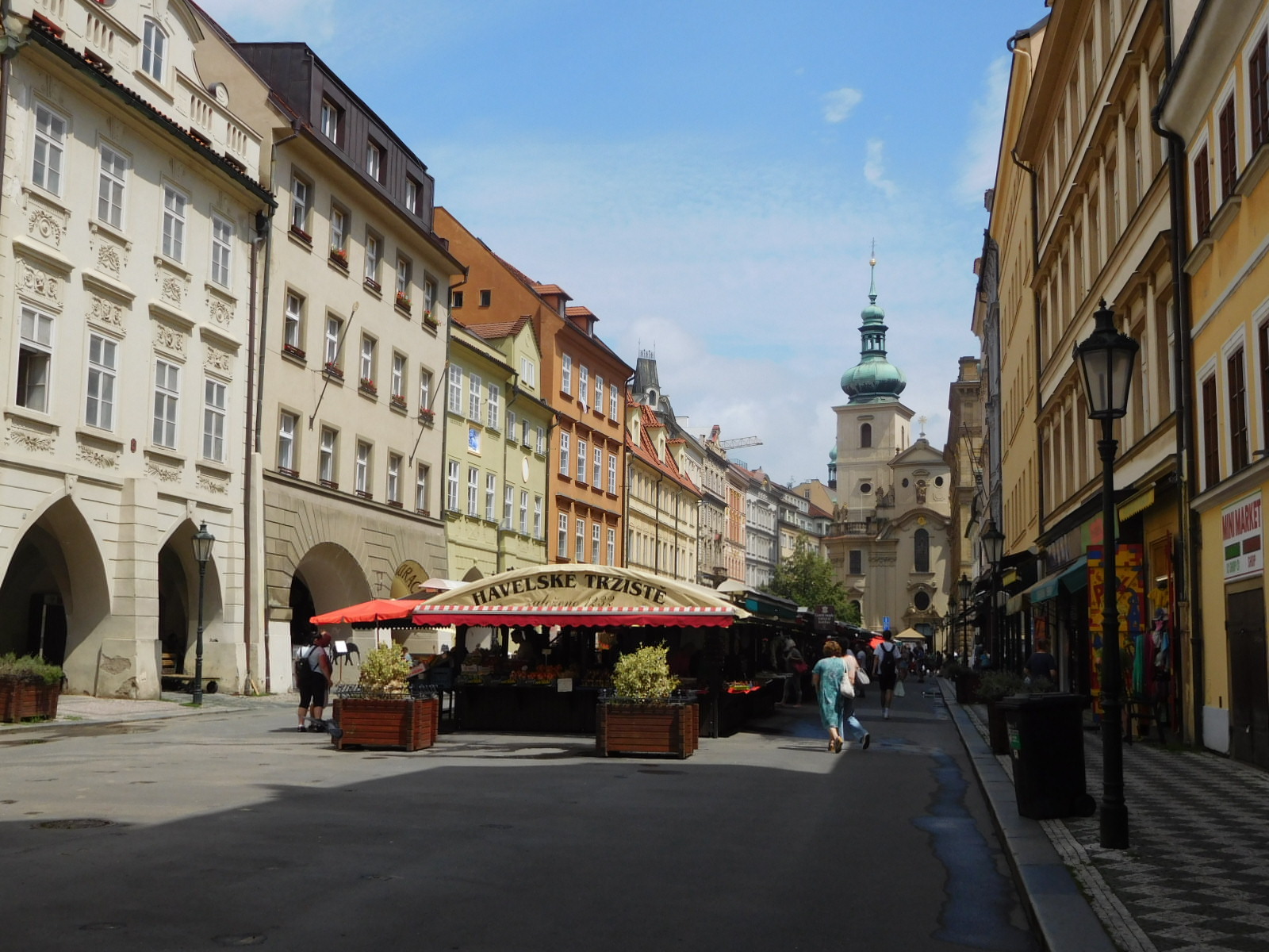 So that puts you in the picture. What we did was to walk to and over the Charles Bridge, into the Little Quarter. We then retreated to our hotel, ditched our rain gear (because rain had turned to broiling sun) and headed for Wenceslas. That's where we ate lunch, before wandering back, by the Jerusalem synagogue, to our hotel again.