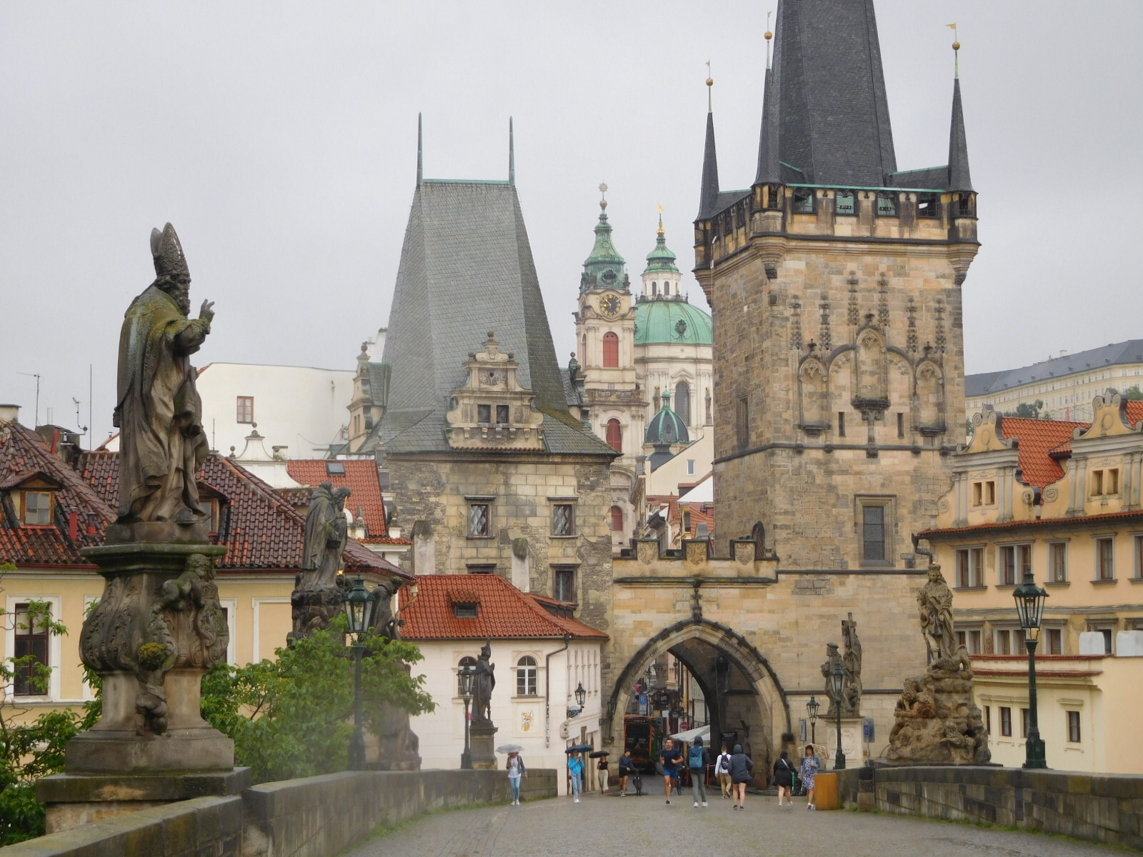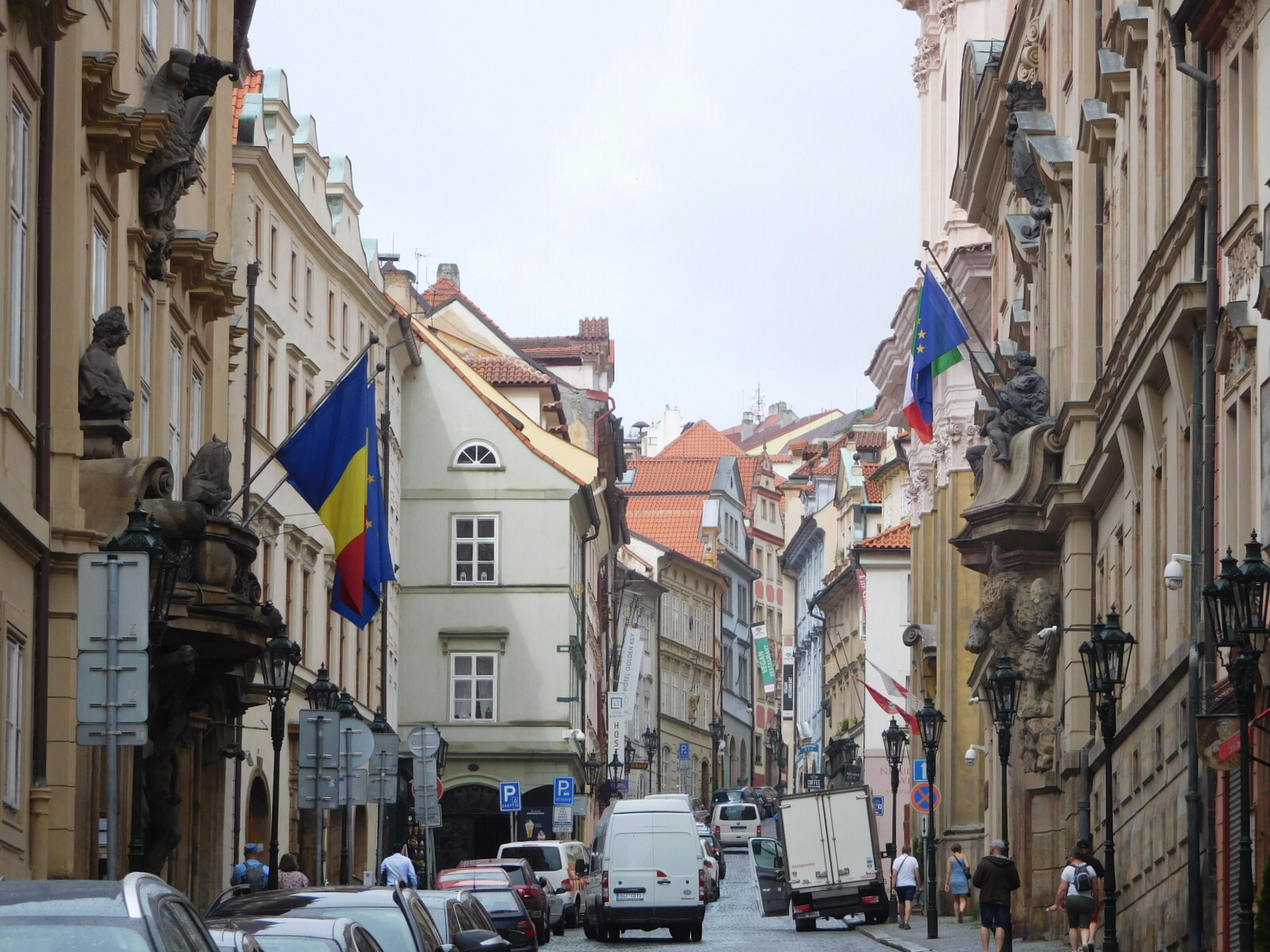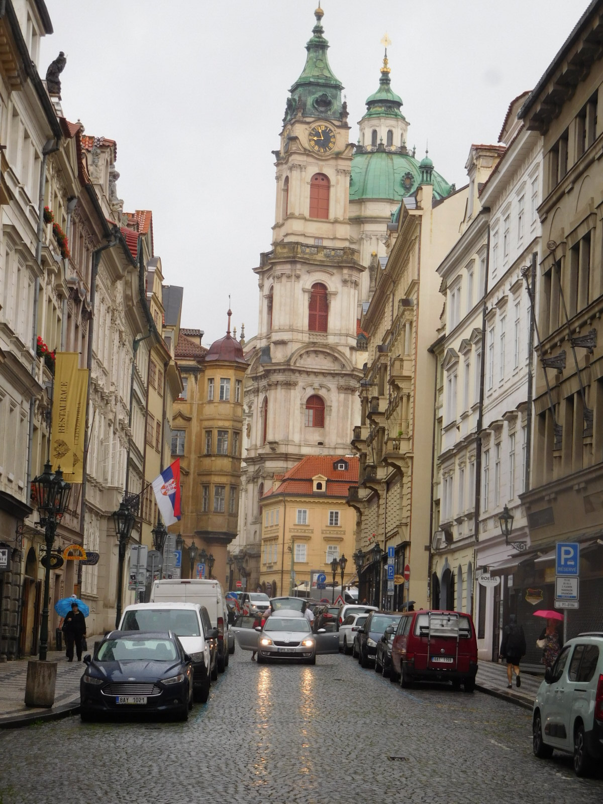 So that puts you in the picture. What we did was to walk to and over the Charles Bridge, into the Little Quarter. We then retreated to our hotel, ditched our rain gear (because rain had turned to broiling sun) and headed for Wenceslas. That's where we ate lunch, before wandering back, by the Jerusalem synagogue, to our hotel again.