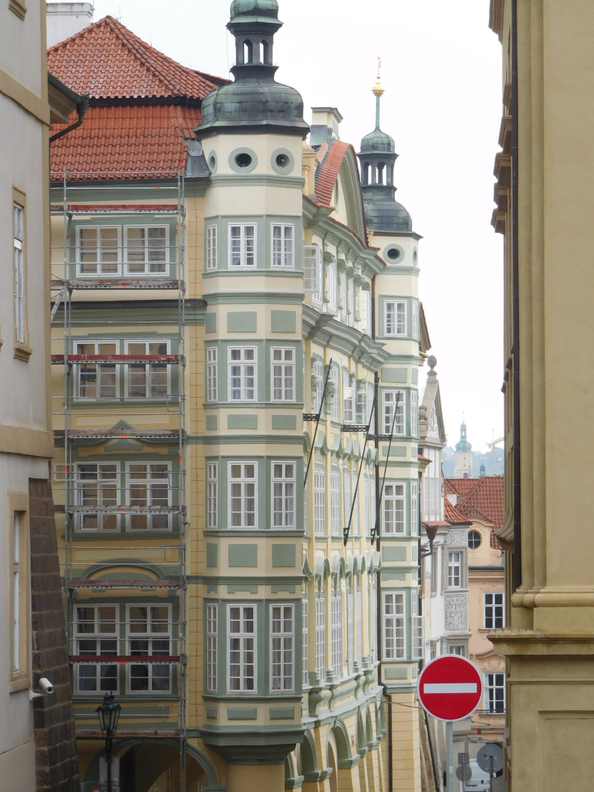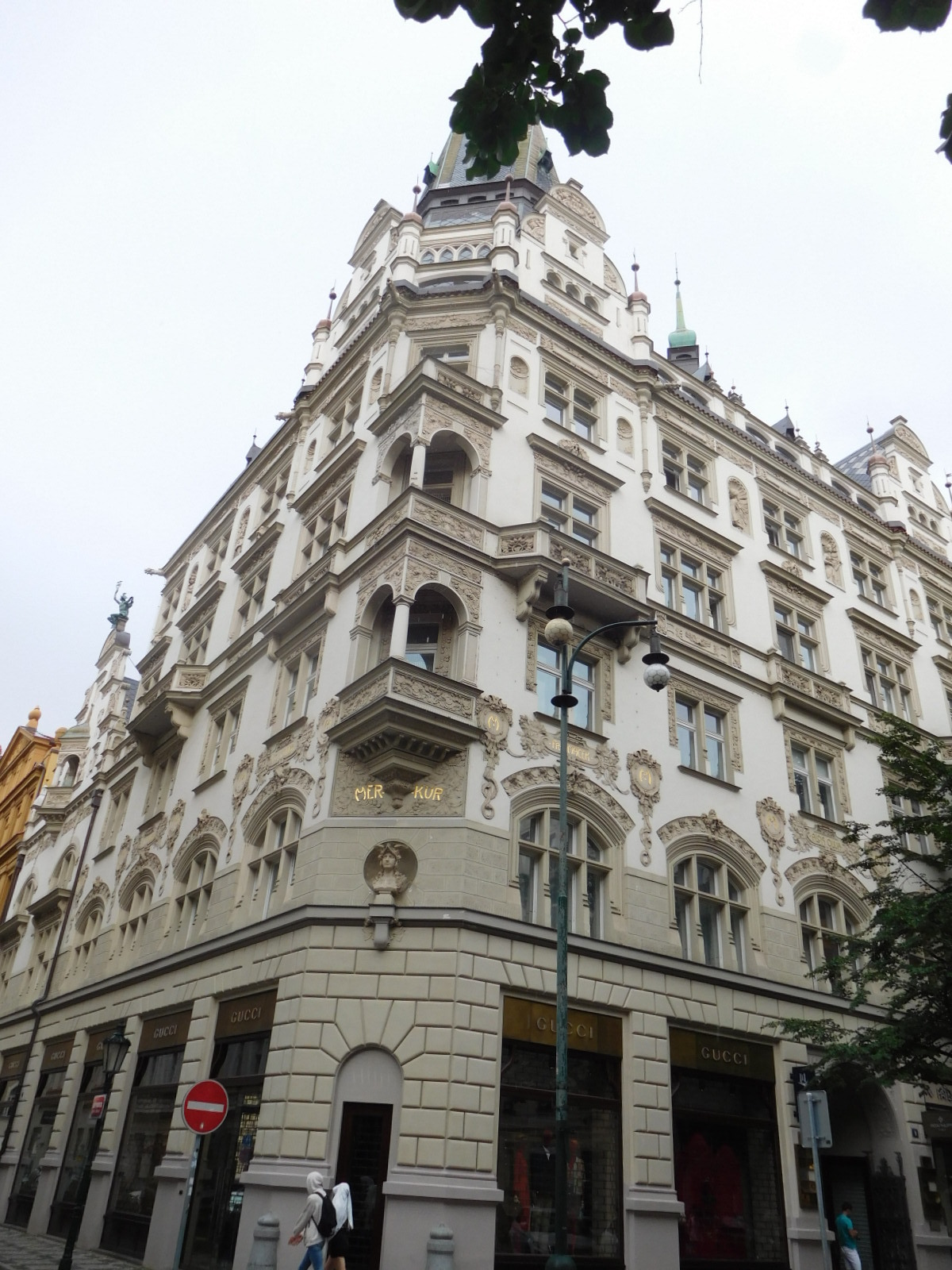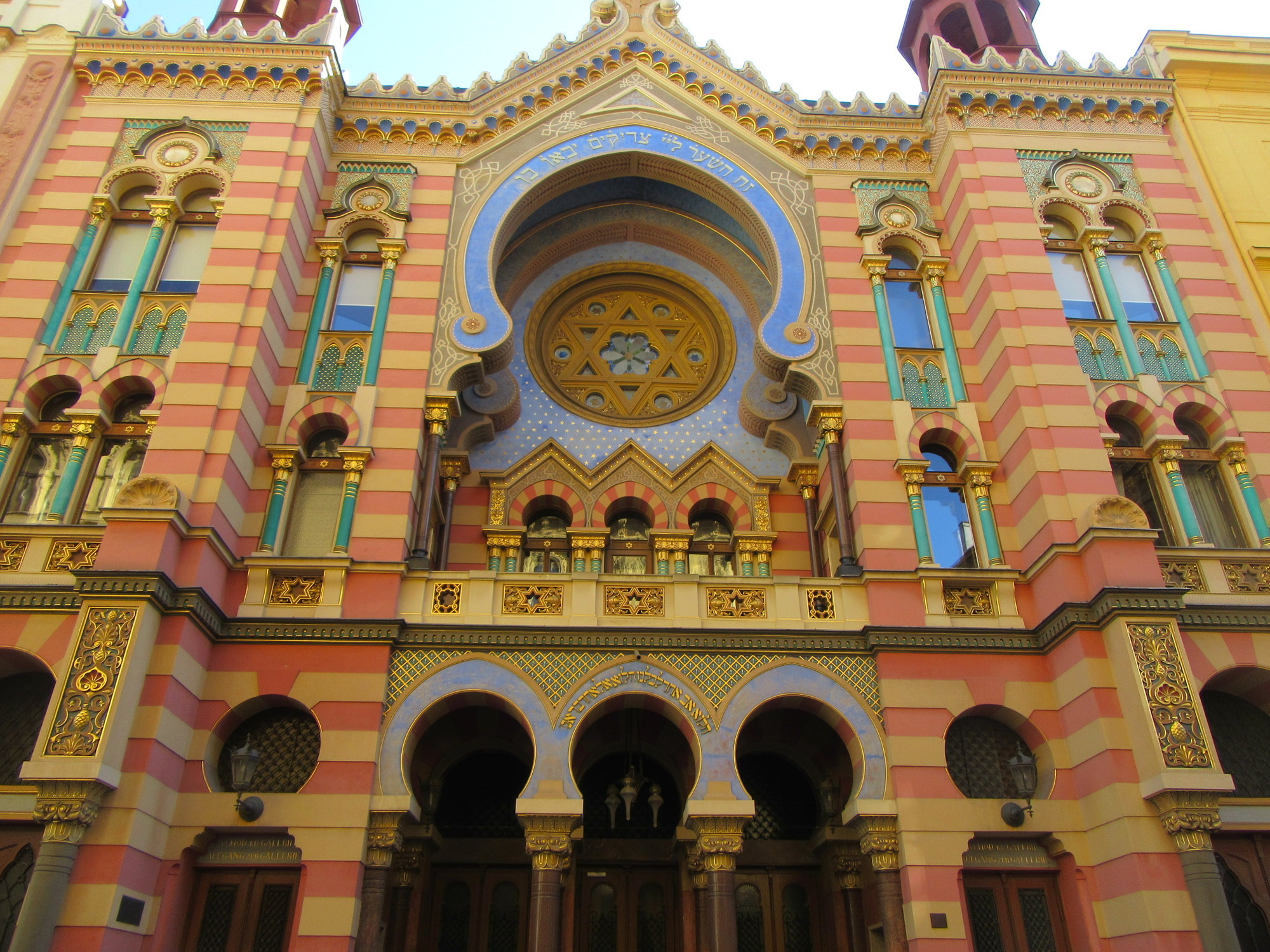 Prague has a well preserved Jewish Quarter, between the Old Town Square and the river. The Jewish Quarter is there for the historical quirk that the jews were forcefully concentrated there, beginning in the 13th century. The Nazis then conceived of it as " a museum to an extinct race", and they brought Jewish artifacts there from other parts of Europe. Today there are six synagogues, a ceremonial hall, and a cemetery, as part of what is treated as a single museum. The whole thing makes us a bit nervous and we have not made a special effort to check it out, much less buy a ticket for this. Read a bit more about this here. We did however pass by the Jerusalem Synagogue, which while a part of the museum concept is not in the Jewish Quarter. This synagogue is interesting in the way it uses Islamic architecture. Today it was swathed in some kind of mesh, so here is my 2019 shot of it: