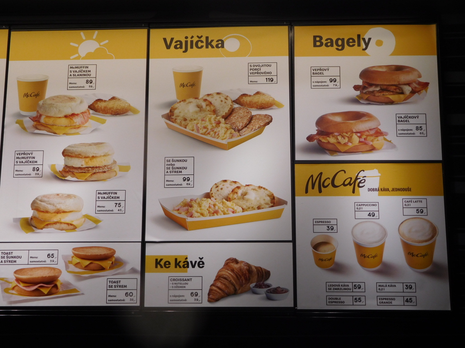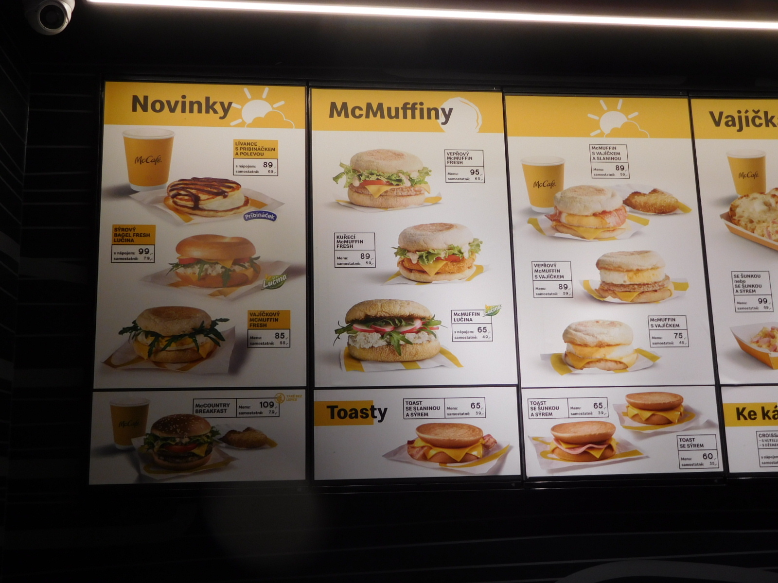We had stopped in to McDonald's not to research breakfast options, but for the WC. In Europe they charge for the washroom, and here we see Mcdonald's happily falling into line. 20 crowns is about .8 euros. Often you are asked 1 euro, so maybe Mcdonald's can claim to be the bargain option?