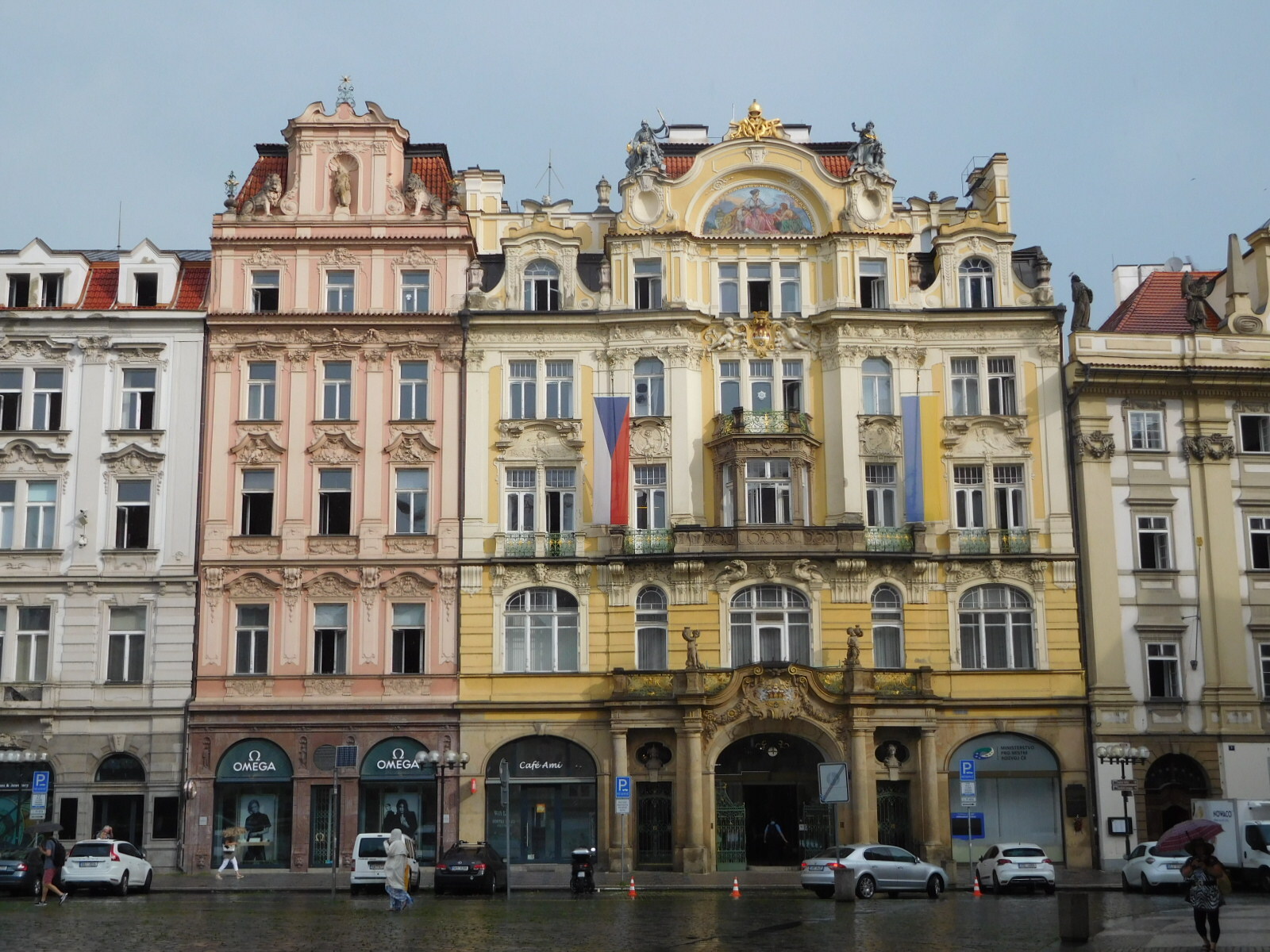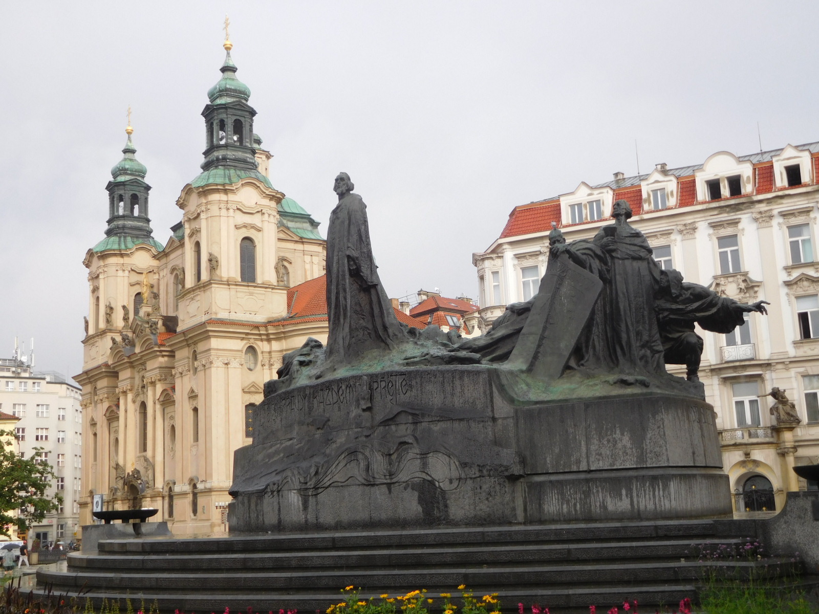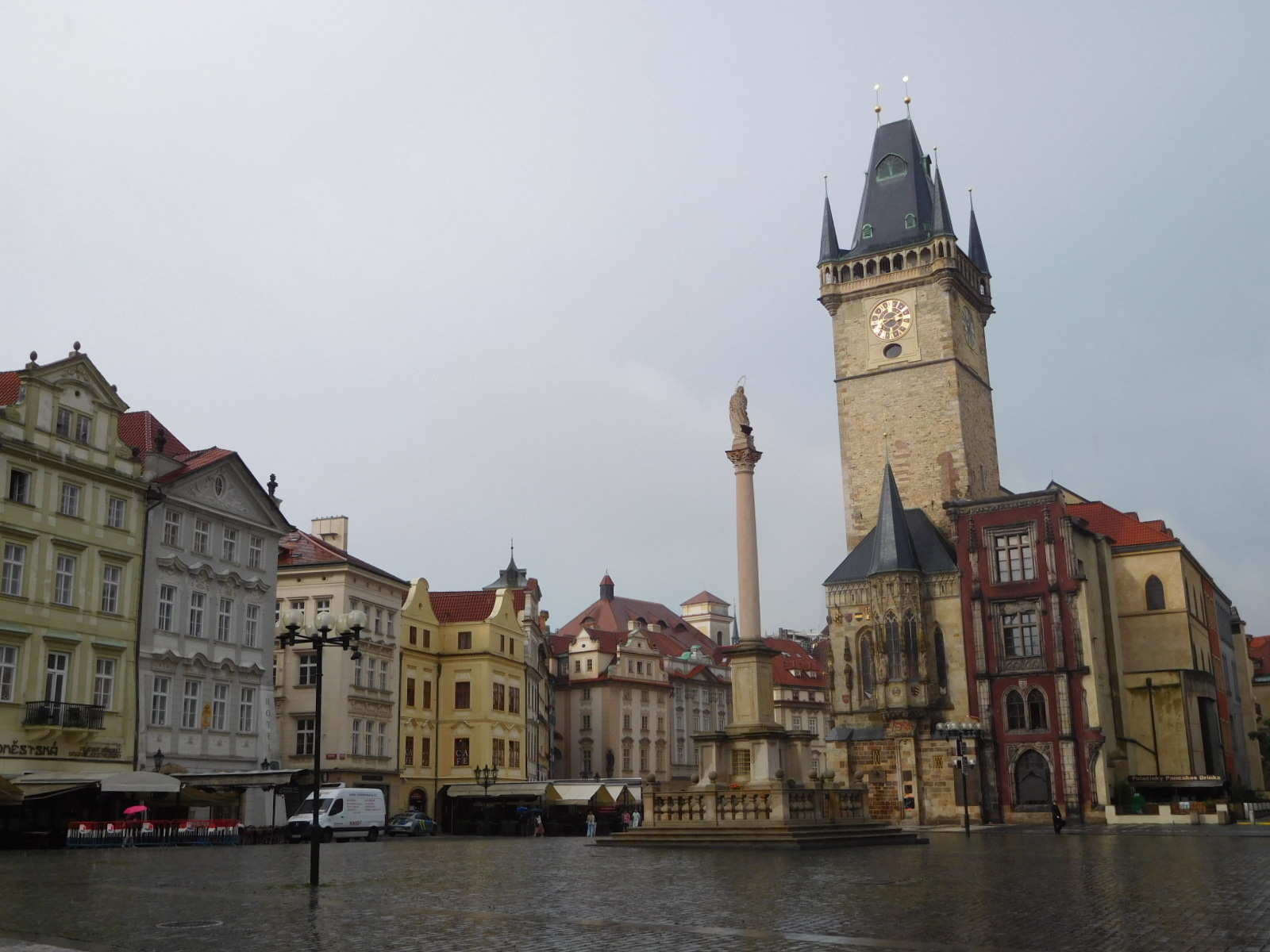 In the middle of the map you'll see Old Town Square. That contains the Tyn Church (with pointy roofs, seen on all Prague postcards), the Nikolas Church, the Old Town Hall (has the astronomical clock on one side), and yes, our hotel! The rest of the square is totally lined with absolutely gorgeous buildings, and in the middle of the open space is the statue of Jan Hus, the guy who pre-dated Martin Luther and got burned at the stake in Konstanz.