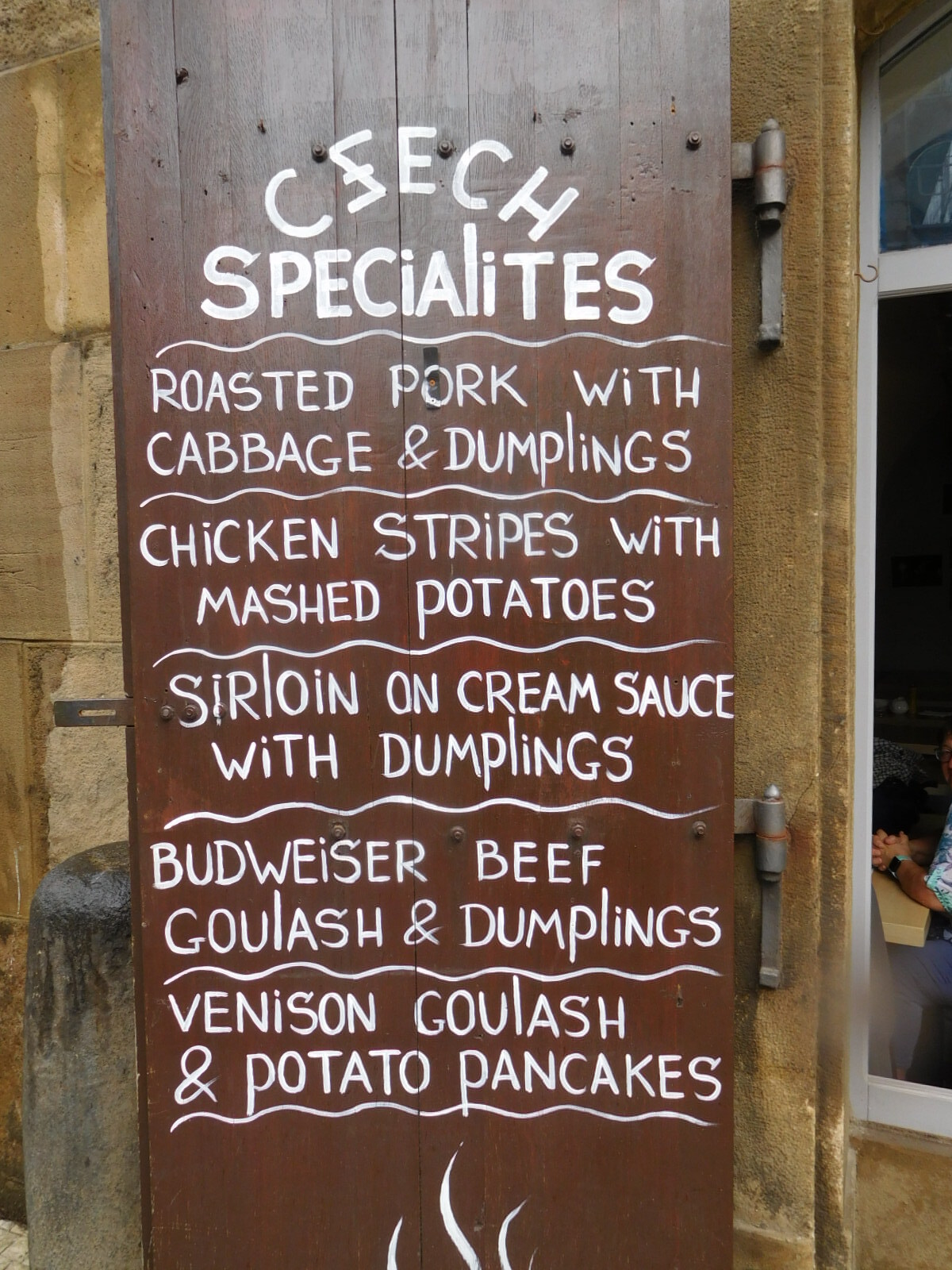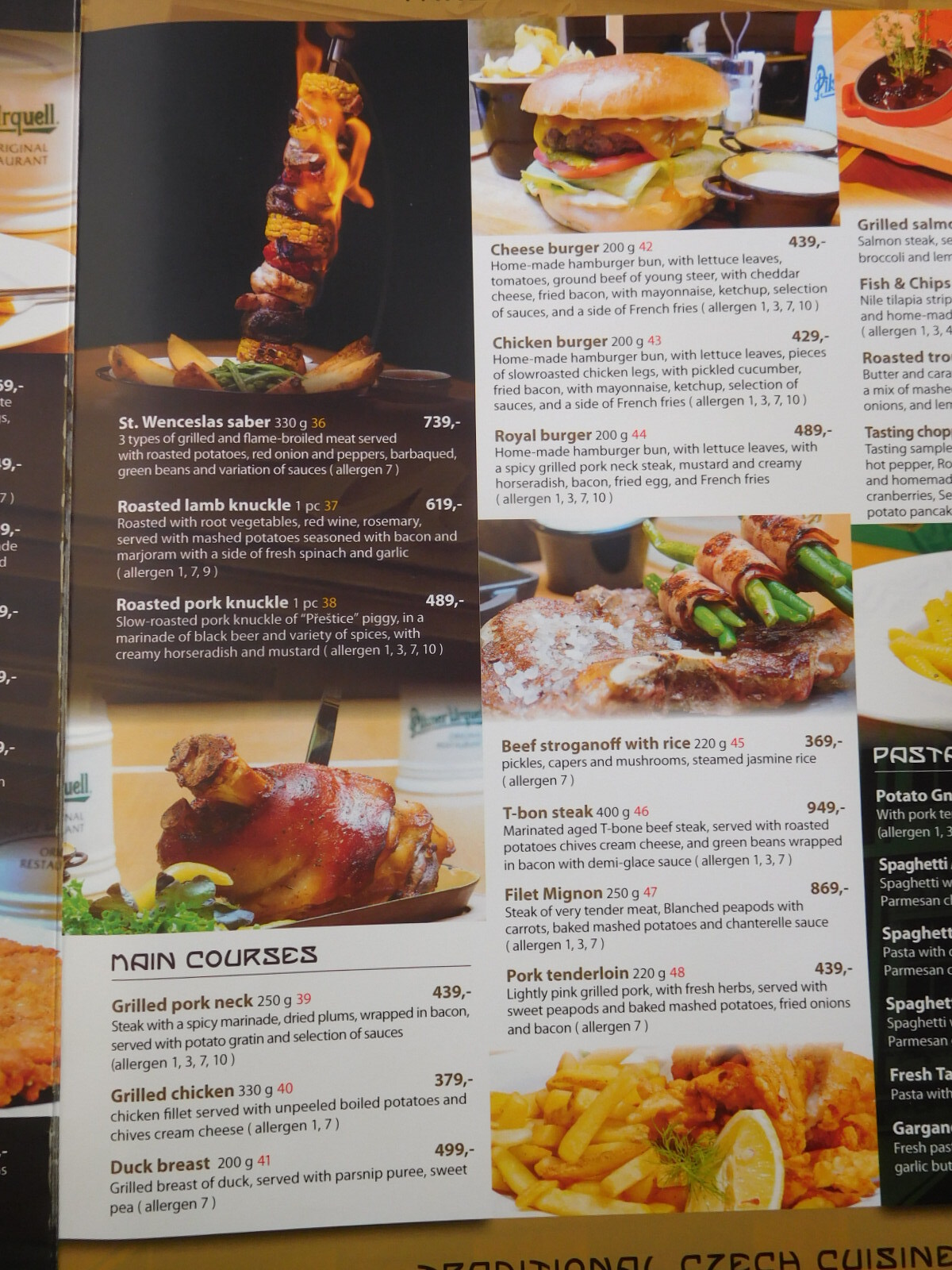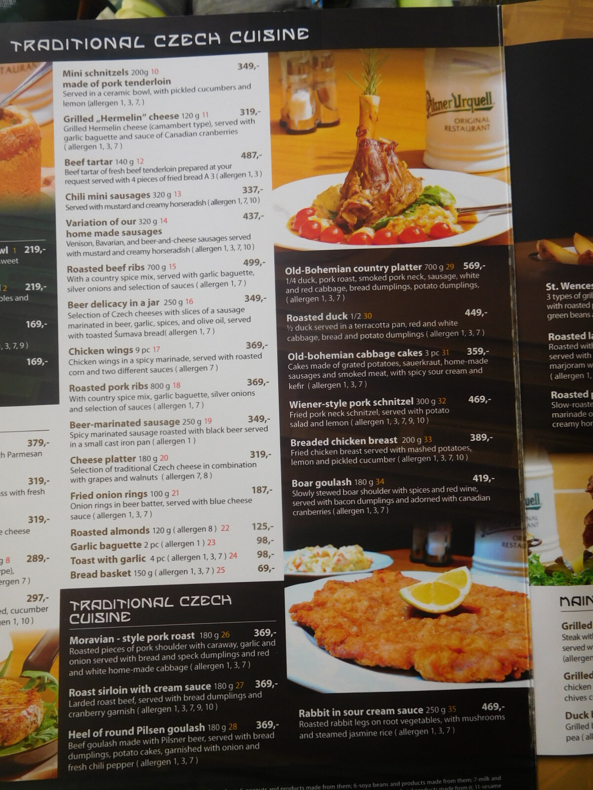 Fortunately the next restaurant also had a good menu and very polite staff. In all cases we are talking about traditional Czech cuisine, which is very heavy, but yummy. It also seems the right thing to eat for a visit to Prague. Here is the menu.