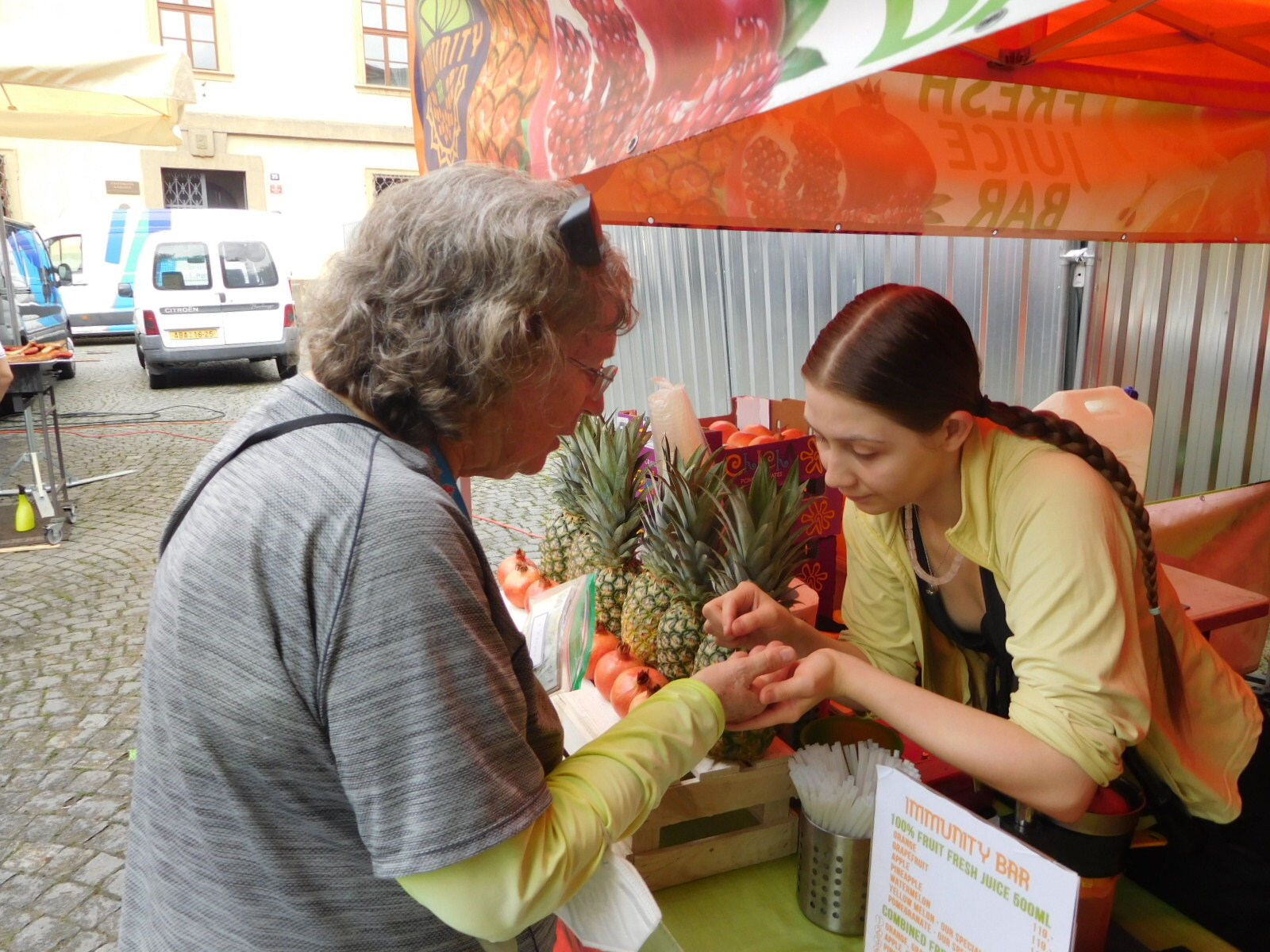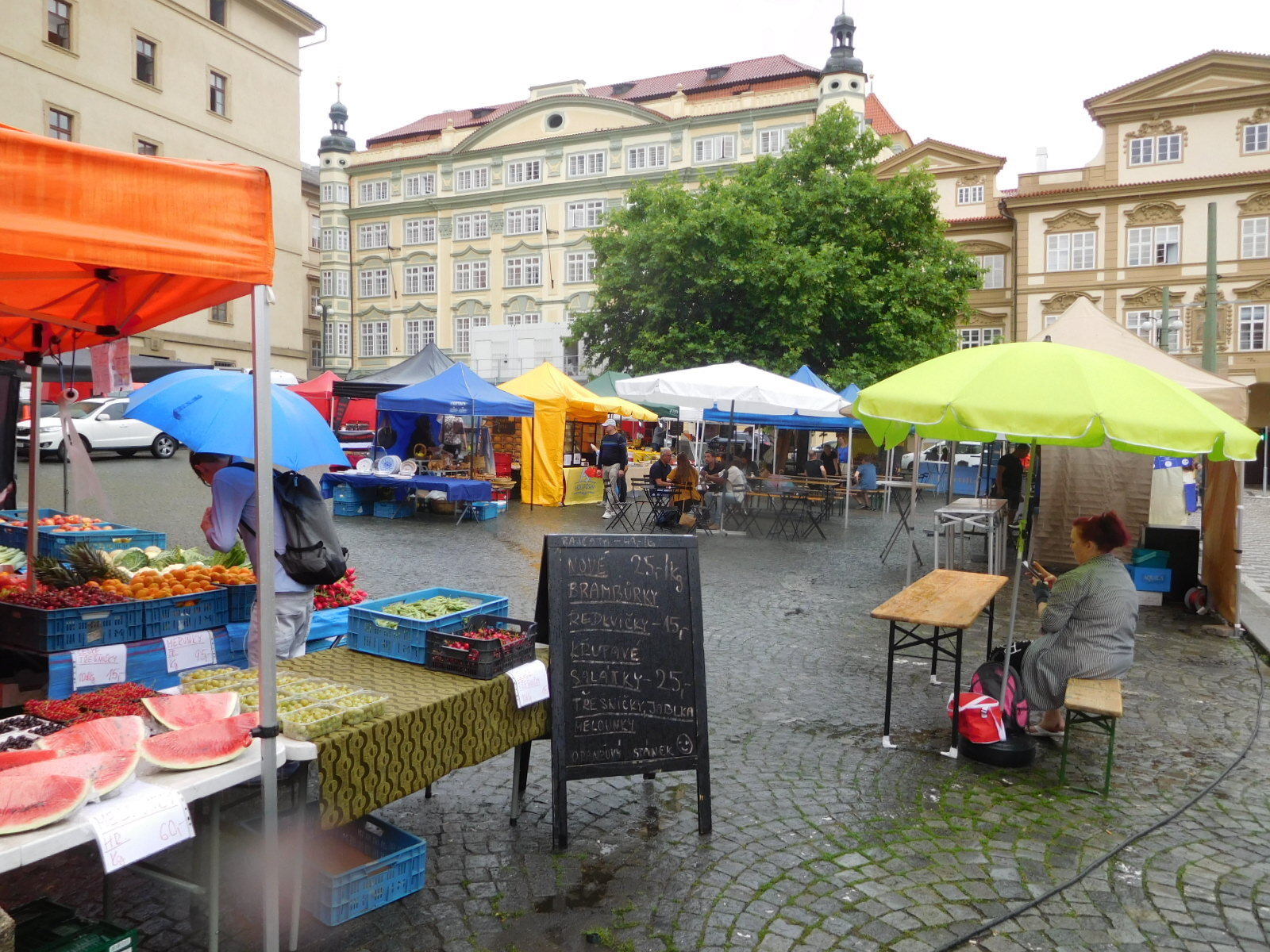 To the west of the Old Town Square is the Charles Bridge, the 665 year old stone structure with saints' statues all along, and leading to the Little Quarter and the Castle Quarter. The Little Quarter is more and more beautiful buildings, and for us - as you read on - a great farmers' market and an interesting McDonald's.