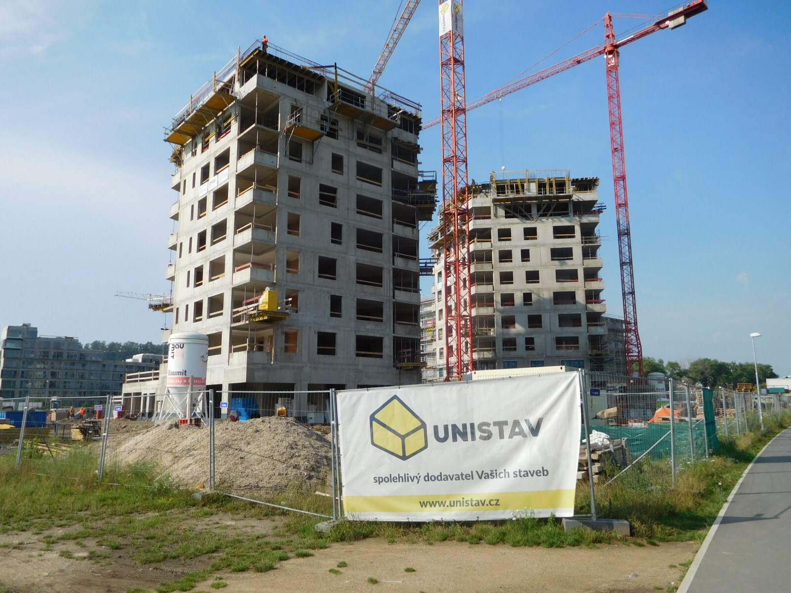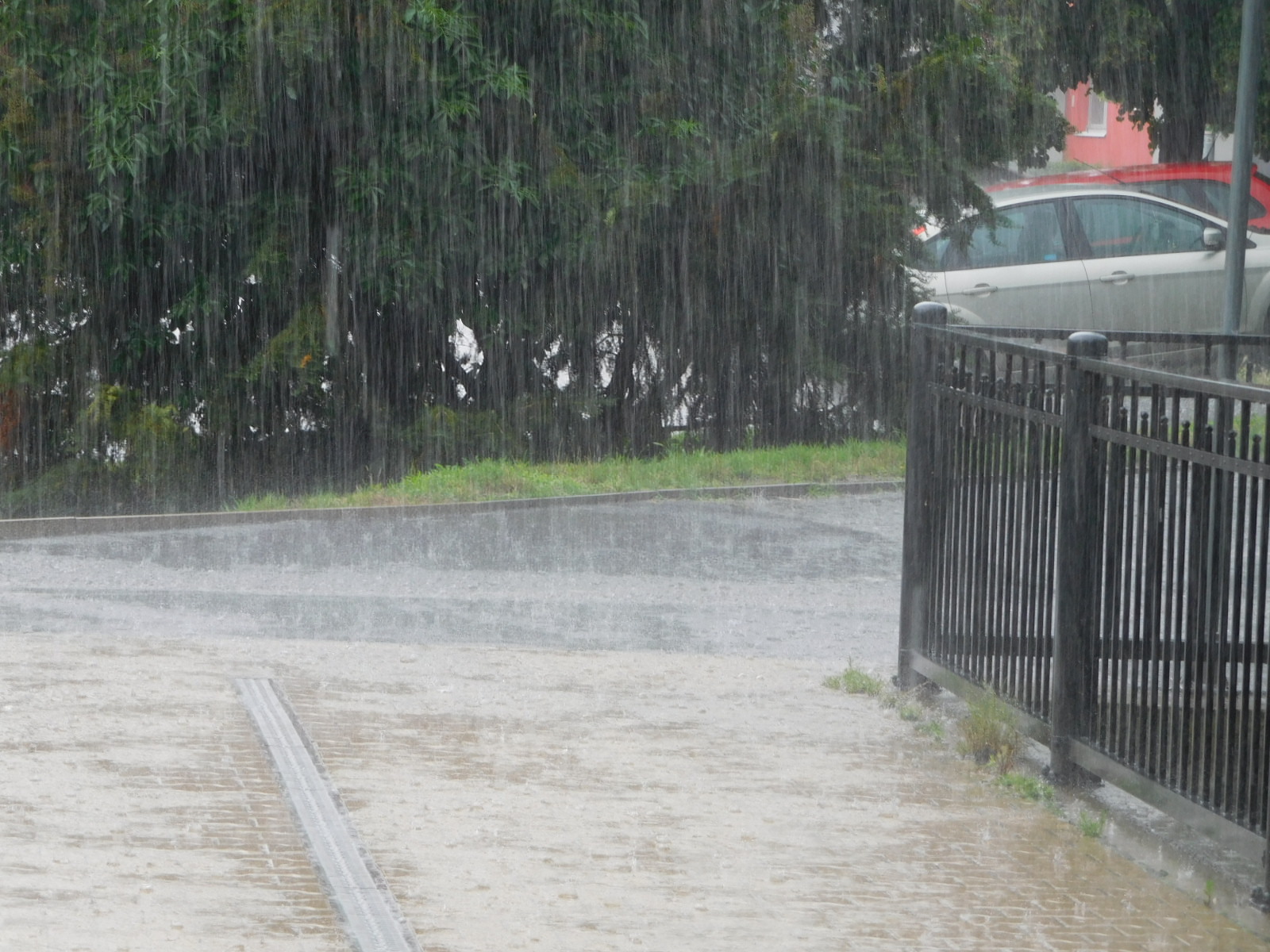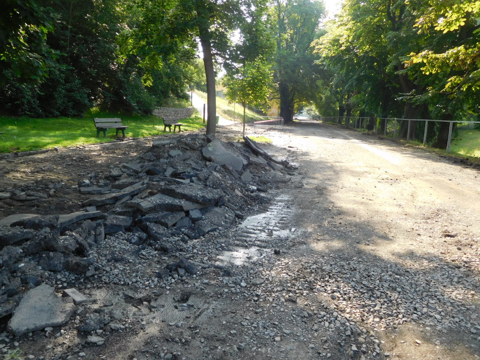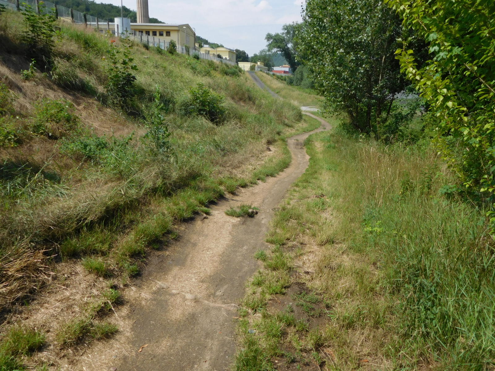 The footpath finally rejoined the official way, coming down from the hills, and the official way now proposed to follow the river. So we thought, we are getting with the program and the trail will be rideable now. Not! We walked further 5 km to a bridge, where the route crossed to the other side, at Kralupy. At this point the heavens decided to open, and a real deluge of rain came down. Despite our rain gear, we hid in an underpass with a bunch of other people for a good while.