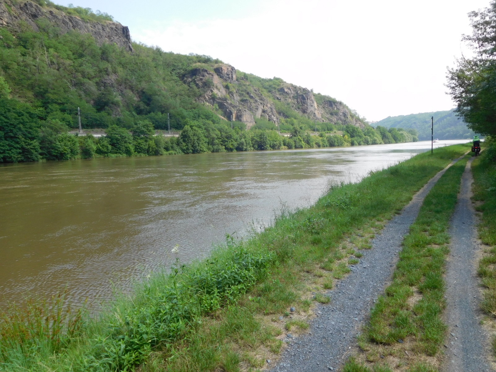With the help of the improved surface, we soon came to the Elbe River, here called the Labe. The Vltava had joined with it behind the scenes. So now the Grampies had returned to the Elbe - like 80 days later!