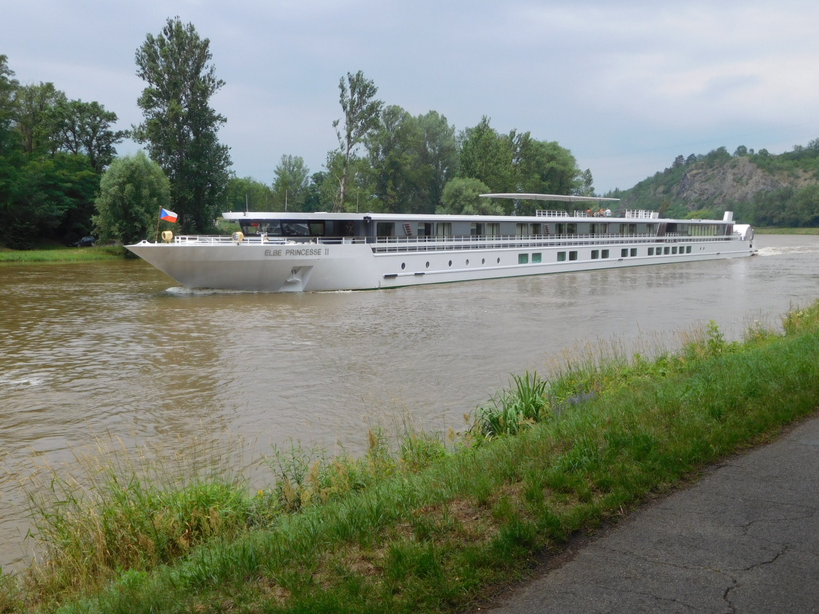 There was a little distraction from plodding along the path, in the form of a river cruise boat that passed by on its way to Prague. Clearly it came out of the Elbe, which our river would join, around Melnik.