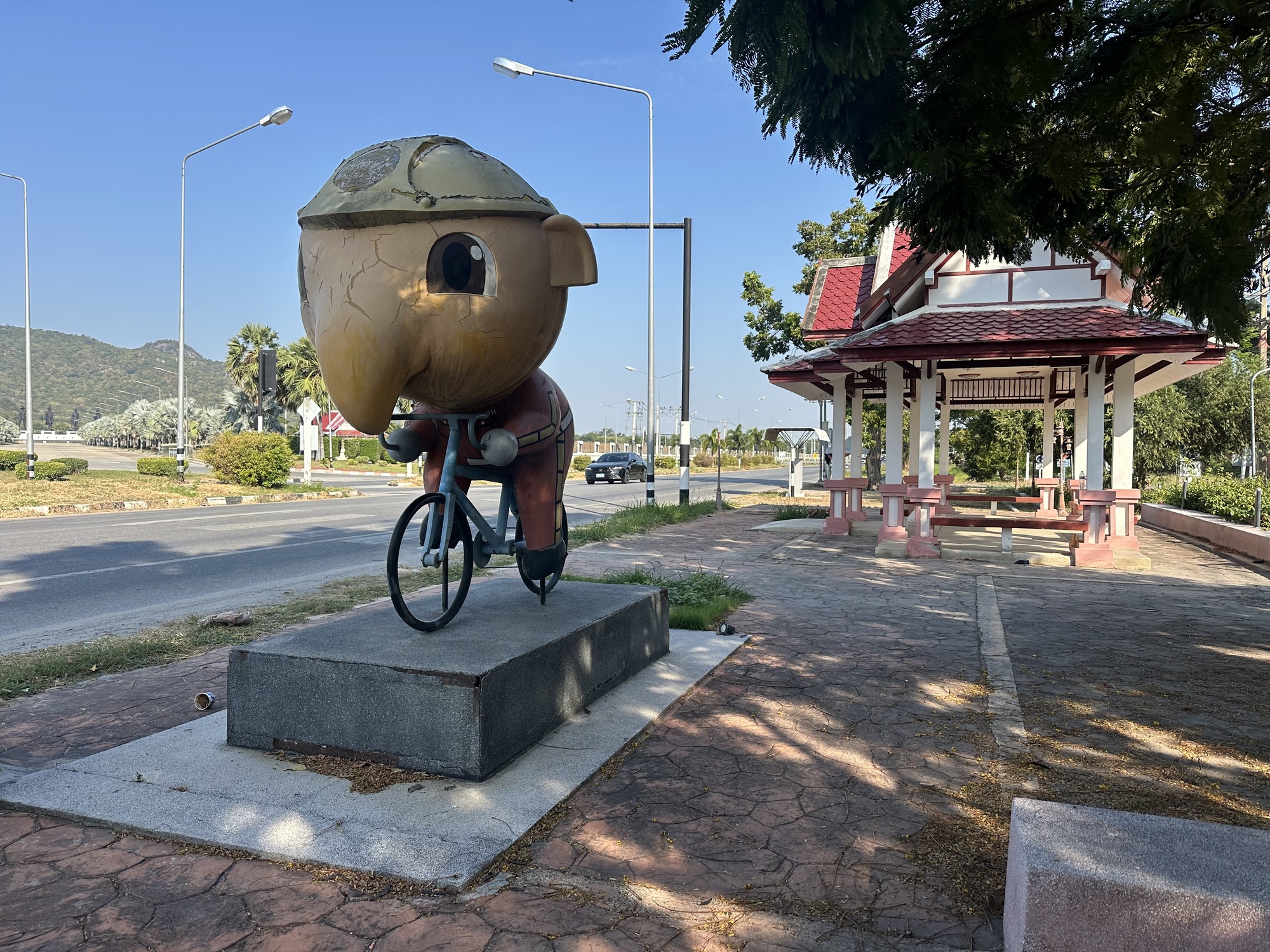 Fortunately we had an easy introduction planned — just 40km down the road from Hua Hin to the beach town of Sam Roi Yot. And, in a very marked change from our Japan cycling experiences, the expected elevation gain was only about 100m. What? No 800m sweaty climb followed by a screaming switchbacking descent? Well OK, maybe I can handle the heat if this is the kind of biking we’ll be doing.