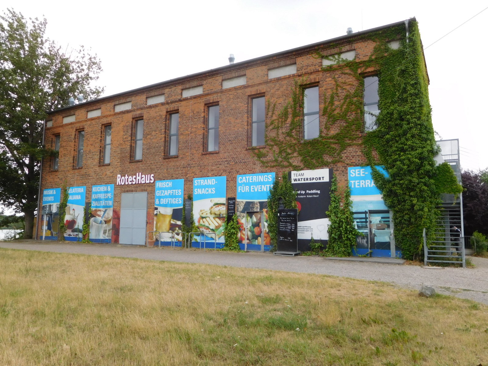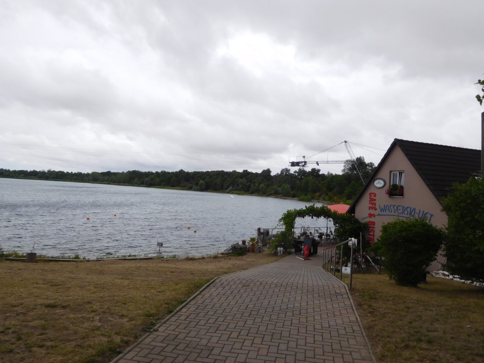 Our friend Jurgen volunteered to guide us on a bike tour out of Markranstadt today. The original objective was the Kulkwitzer See, a lake named no doubt for the little centre of Kulkwitz, southeast of town. If you zoom out with the map above, you will see a whole flock of lakes, south and east of Leipzig. These came about from this having been a big open pit coal mining area. As the coal played out (I think) the pits were allowed to fill in, creating cold and deep lakes. In the case of the Kulkwitz lake, the end of coal mining provided a super recreation site, with beaches, sailing, scuba diving, and restaurants. Since this is Germany, even GDR, a bikeway went around the lake, mostly paved, and partly rail trail. It just burns me up that wealthy British Columbia where we live has in 20 years not found the will or money to pave the defunct rail line that runs from Victoria to Parksville. But in GDR? No problem, apparently.