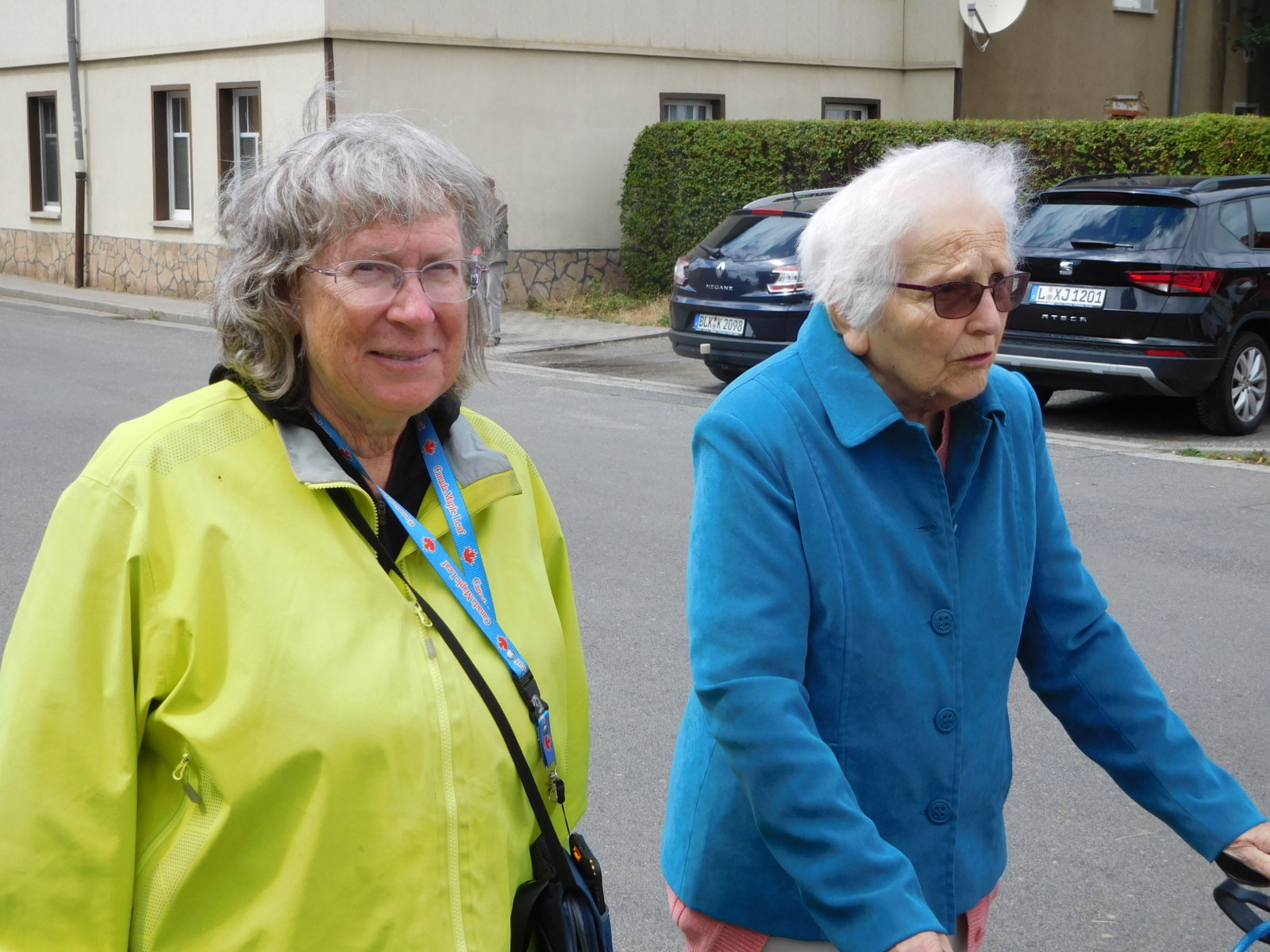 We arrived back in Markranstadt in time for the Childrens' Festival parade. We went with Jurgen's 91 year old Mom, and Birgit's mom Kate as well. The two great grandma's are shown greeting each other below.