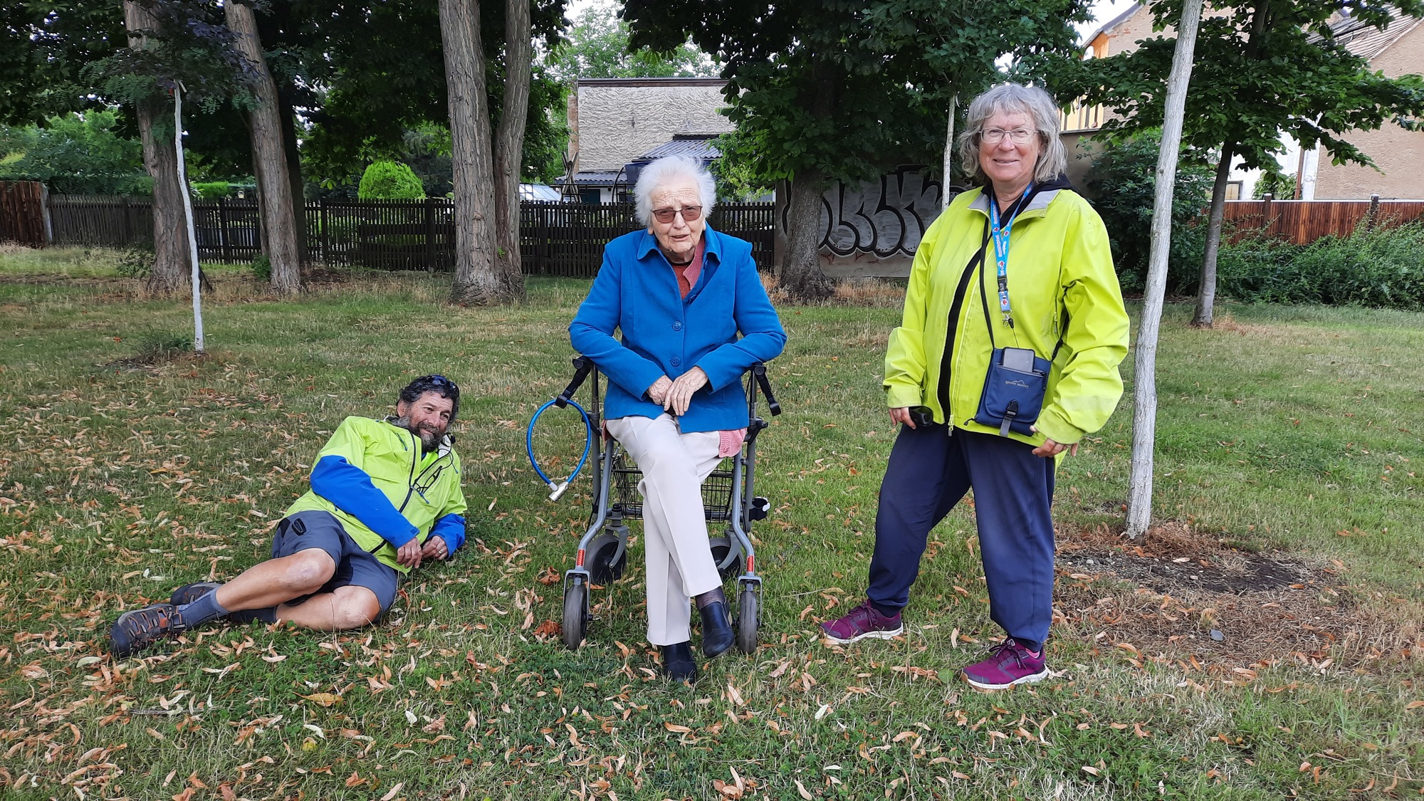 It's a bit of a tough walk to the parade for Jurgen's Mom.