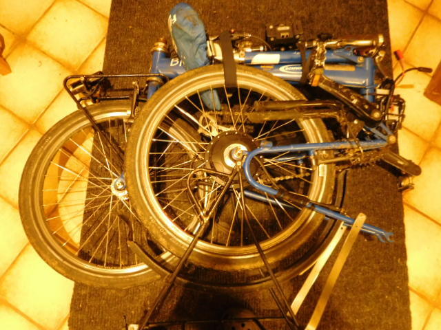 That knocked out one nervous uncertainty. Next up, speculating on where the baggage handling gorillas were likely to grab our clear-bagged bikes, and to what extent we should fold them, to expose the fewest delicate hand holds. We toyed with not folding at all, just turning the handlebars, just folding down the seat, and strapping the bars and steering tube beside the frame. Somehow we did not even consider a full Bike Friday fold. Oh, oh, I just told Dodie what I was writing, and now she is trying it!