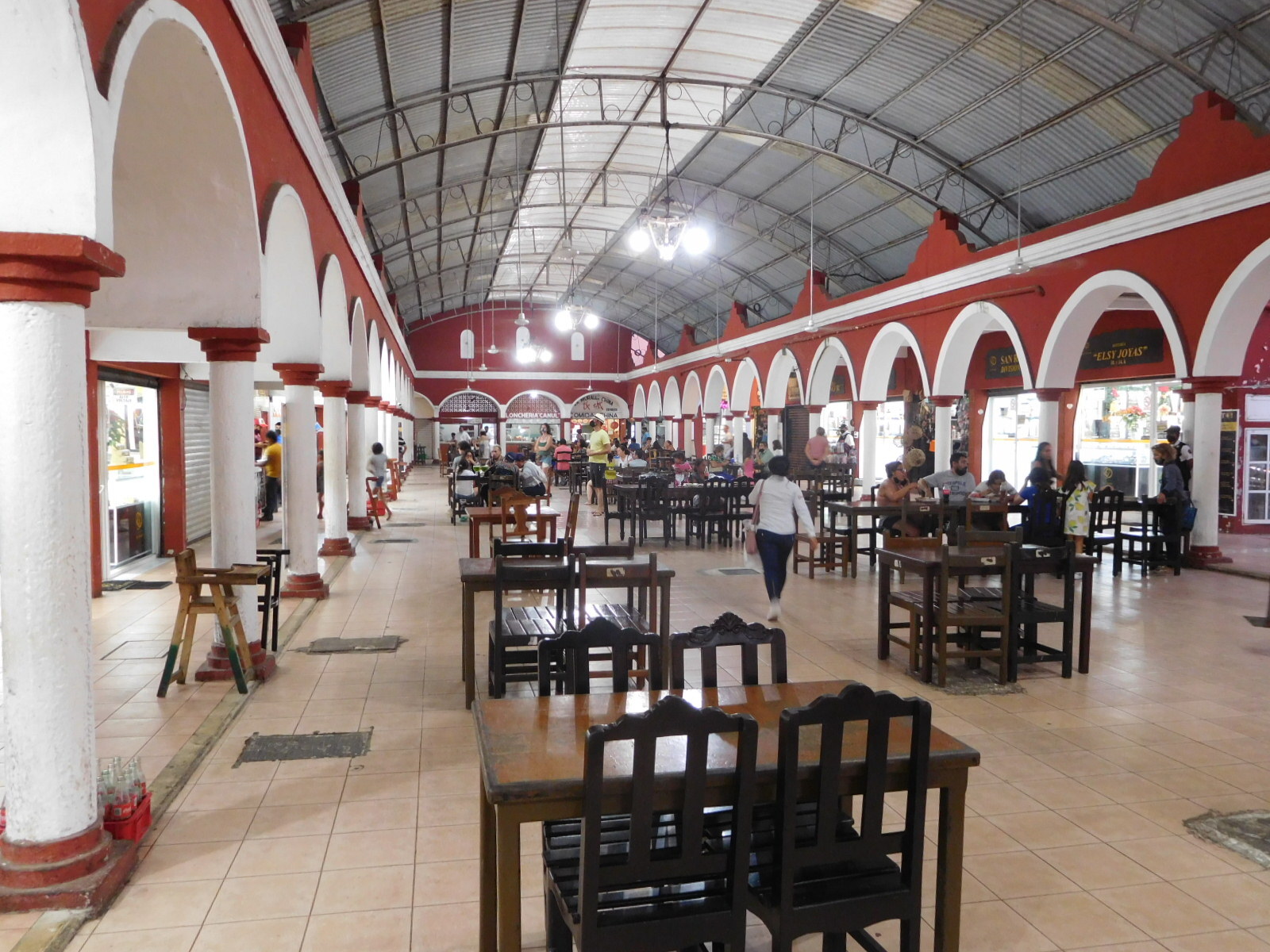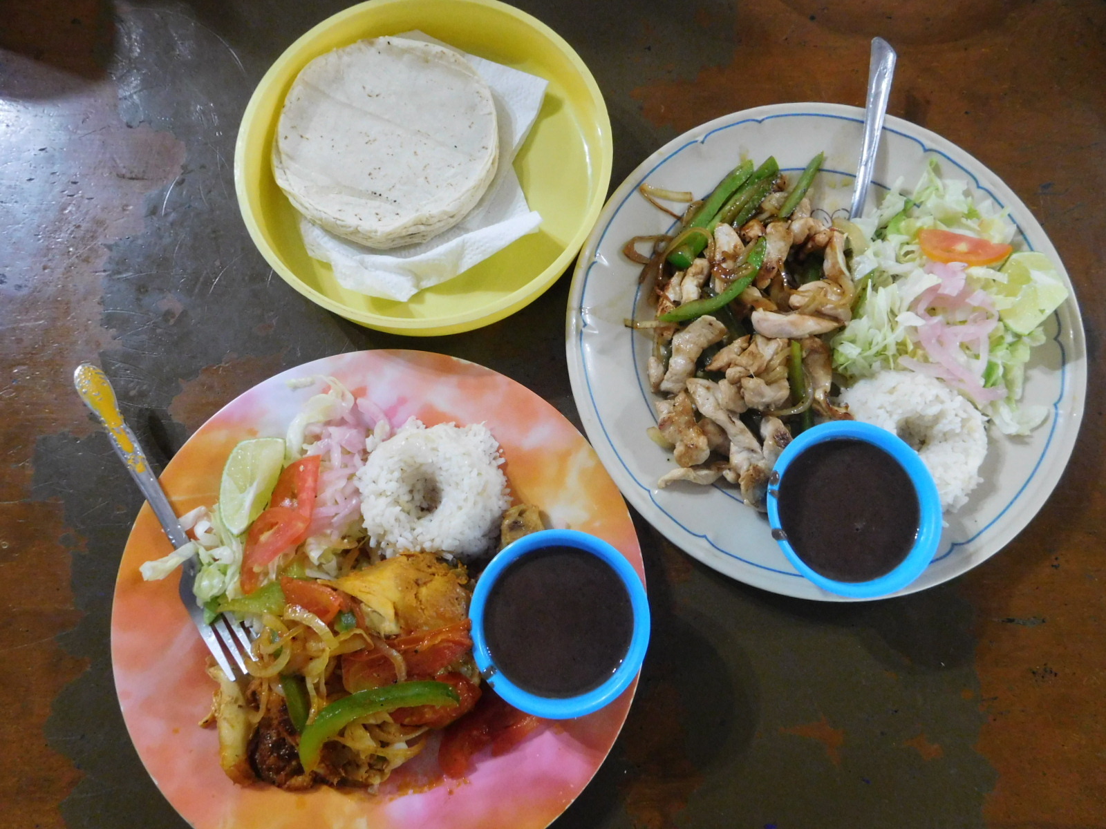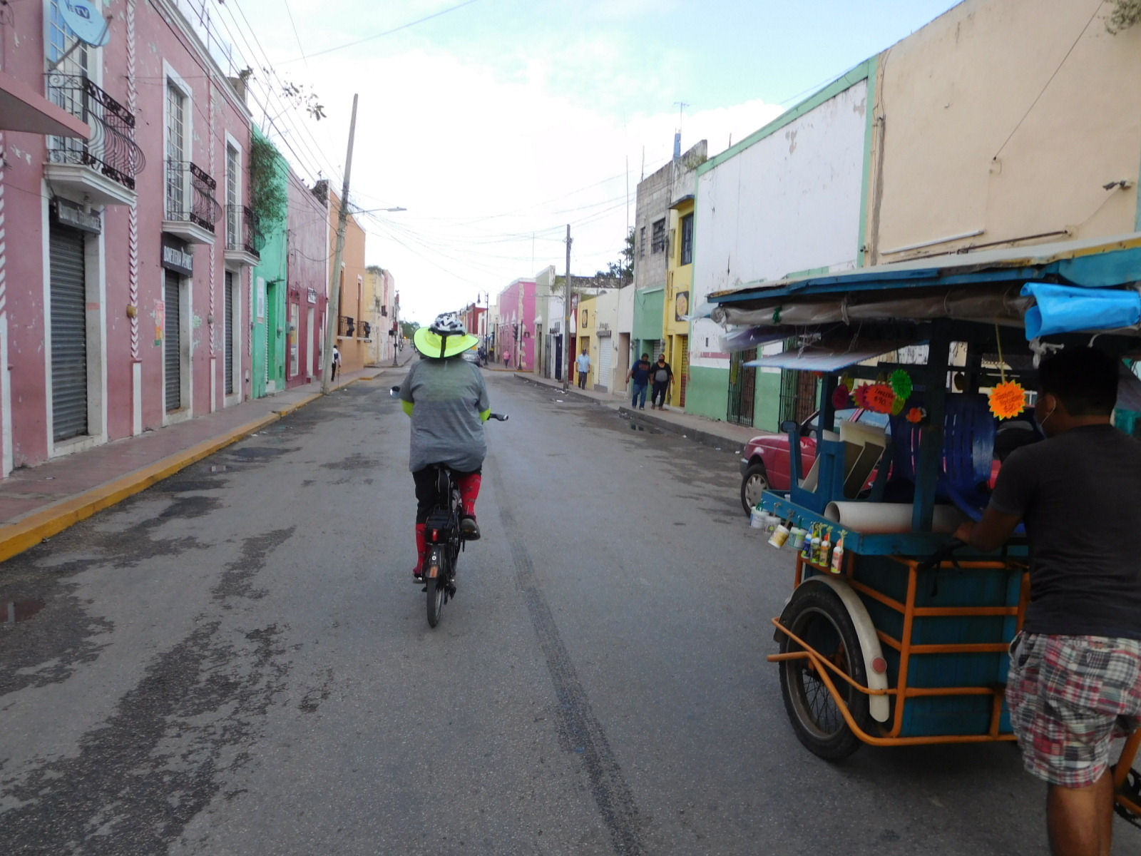 The run to back home was really a dream, with the fine road and moderate temperature today, we were feeling really good. That made it a lot of fun to go out and find supper. We went to a food court on the main square. It's actually where our theme photo for this blog came from, taken by us four years ago. We chose horchata (almond milk), fajitas, and pollo pibil, from a little stall. all very good, we found. Horchata is an almost ultimate power drink. We haver seen it in bottles, but it seems what we are getting here is in some sense "fresh".
