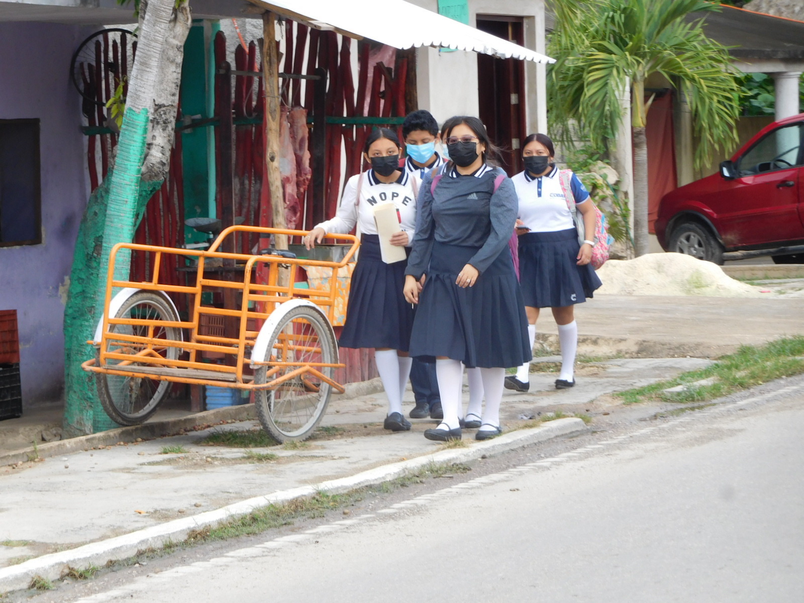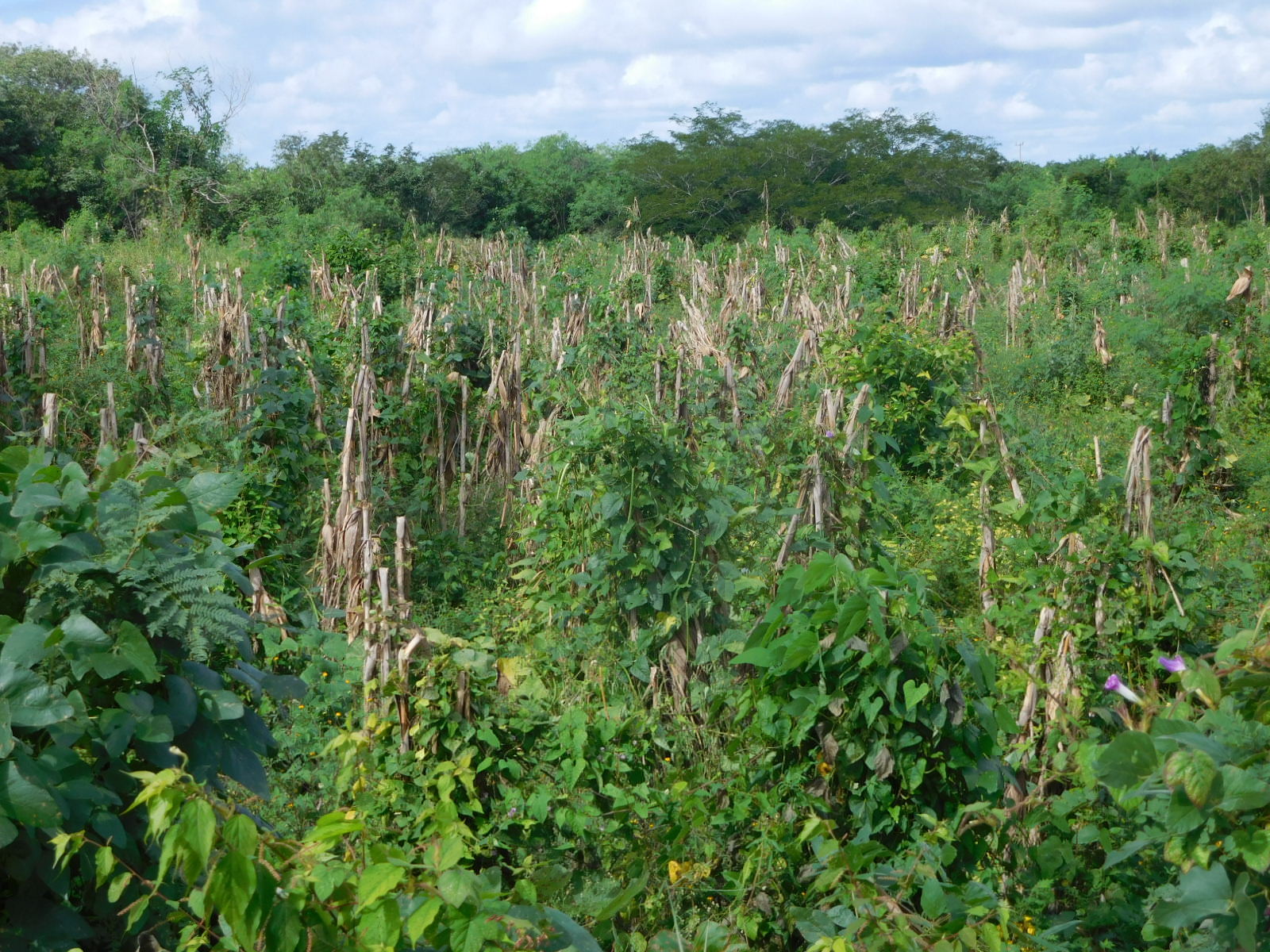 The way from Valladolid to Ek Balam qualifies as a rare super bikeway. There is only moderate traffic, a wide shoulder basically all the way, a smooth surface (mostly), and a straight shot (mostly). If we lived here, we would be doing this one all the time. Clearly someone else knows of this run, as we encountered a small group of day cyclists on the road. They were Americans, from Washington State, Chicago, and Portland - these were the ones we spoke to.