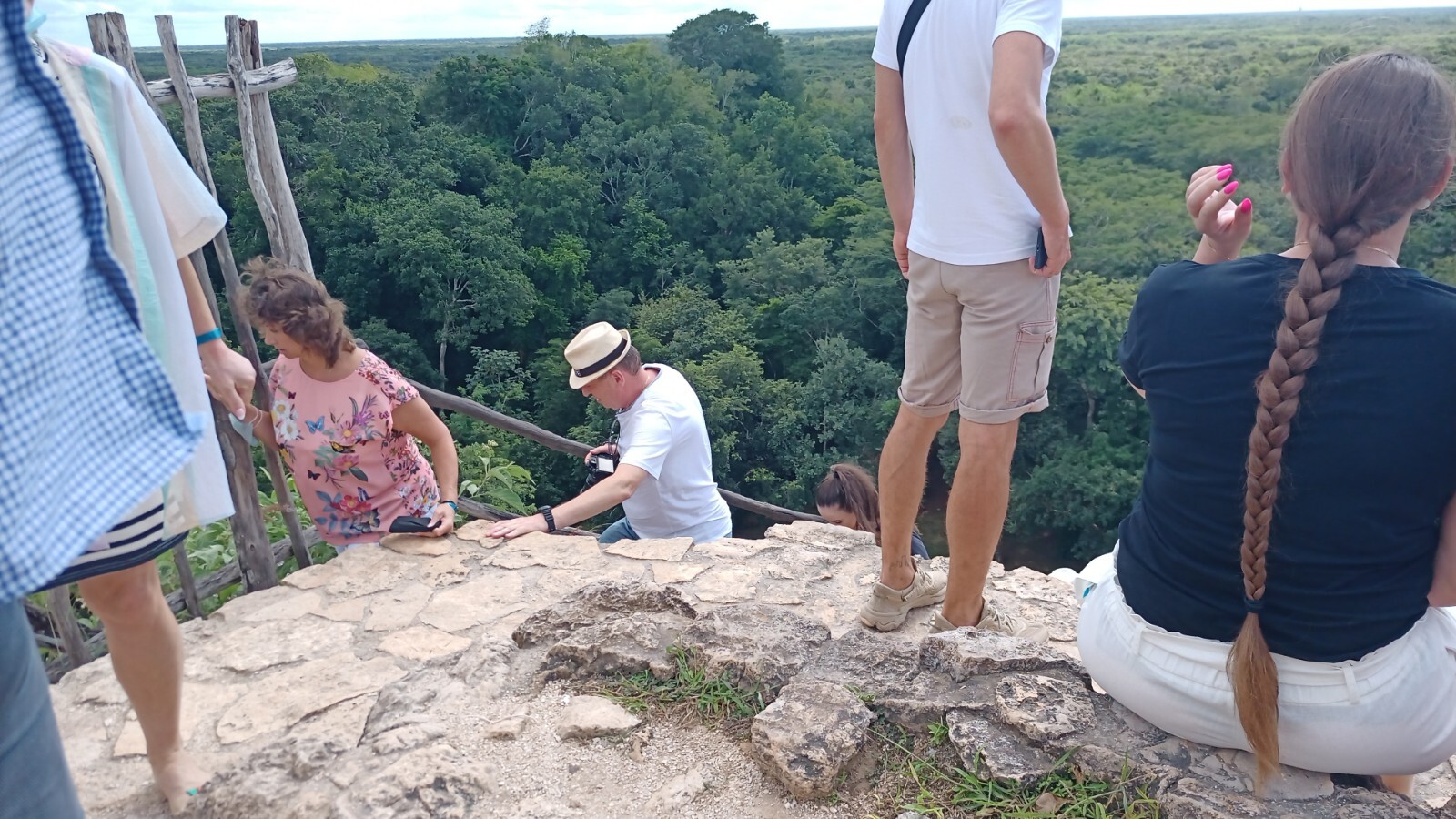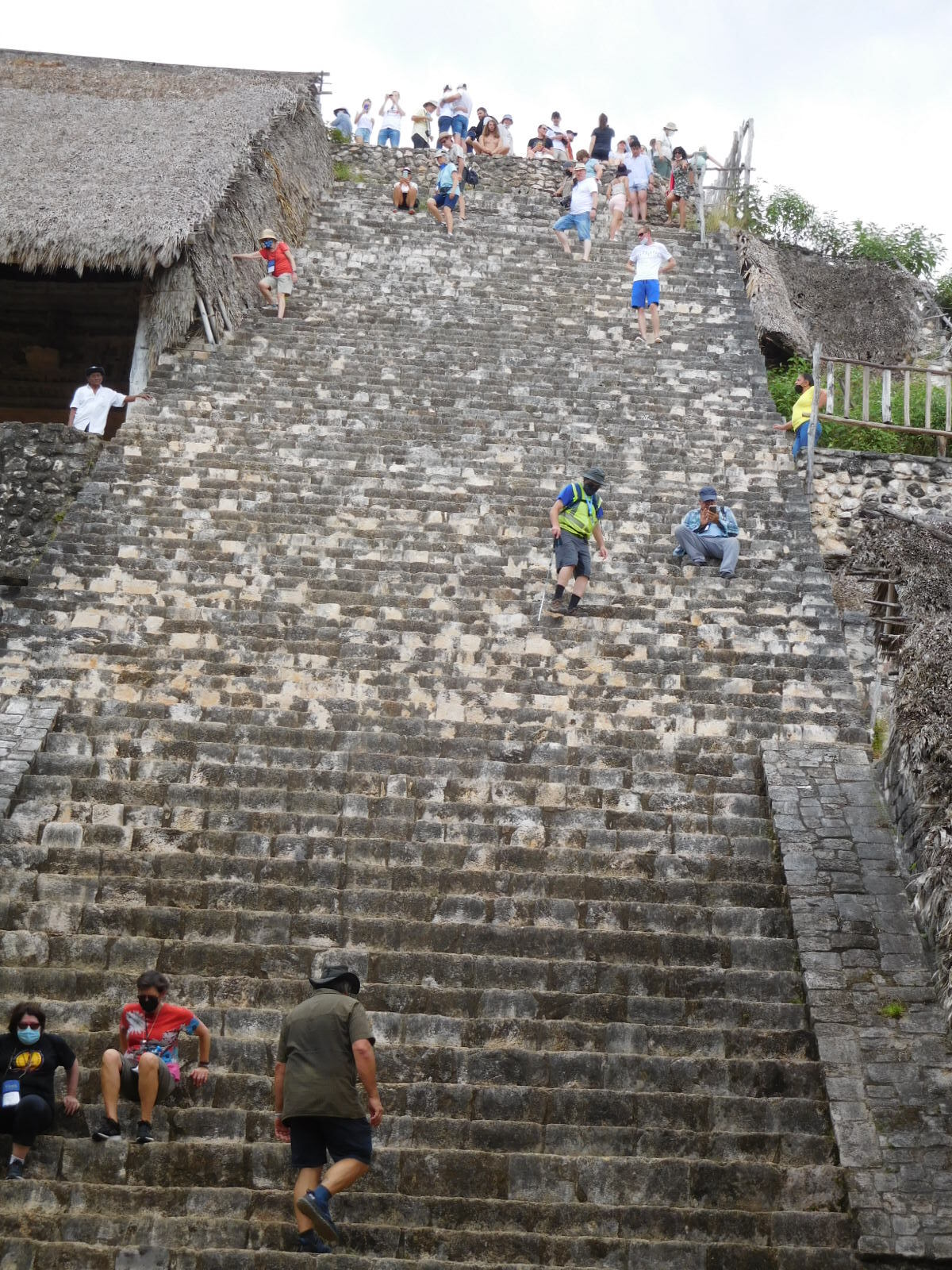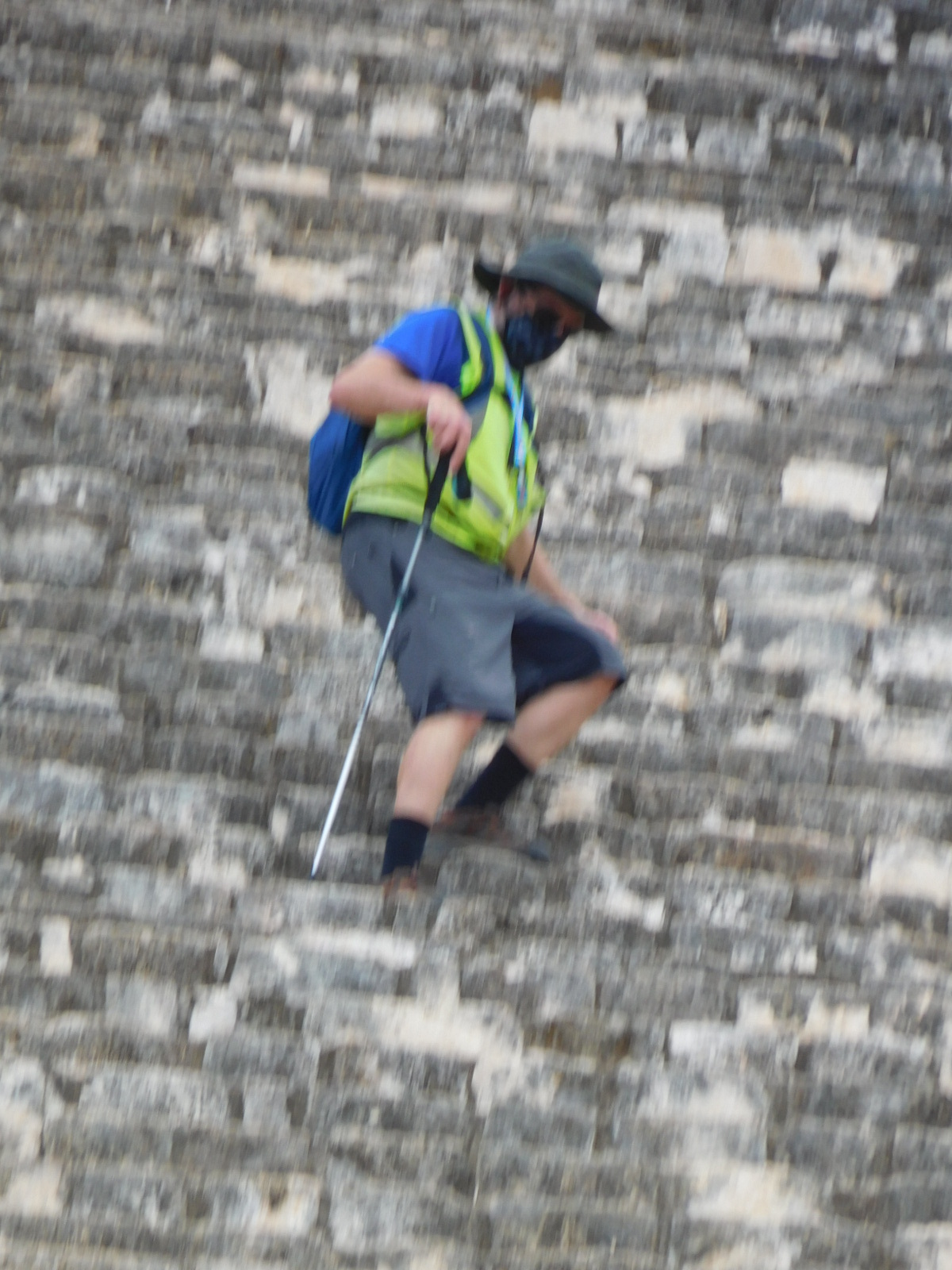 It was permitted to climb to the top, so I borrowed one of Dodie's trekking poles and had at it. With the steep steps and height there was no way her knees could have joined me. Still this positioned her to snap some photos: