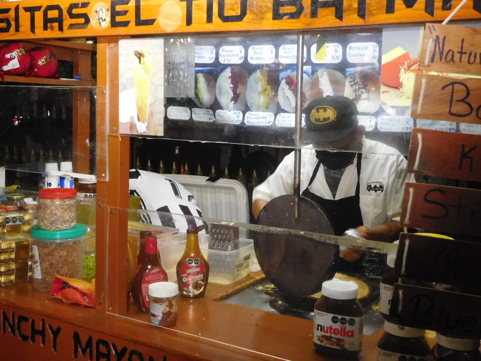 Out in the square, people were enjoying the evening and various treats on offer. One of these is marquesitas - which are crepes, filled with fruits or ? and rolled. We'll try some next time.