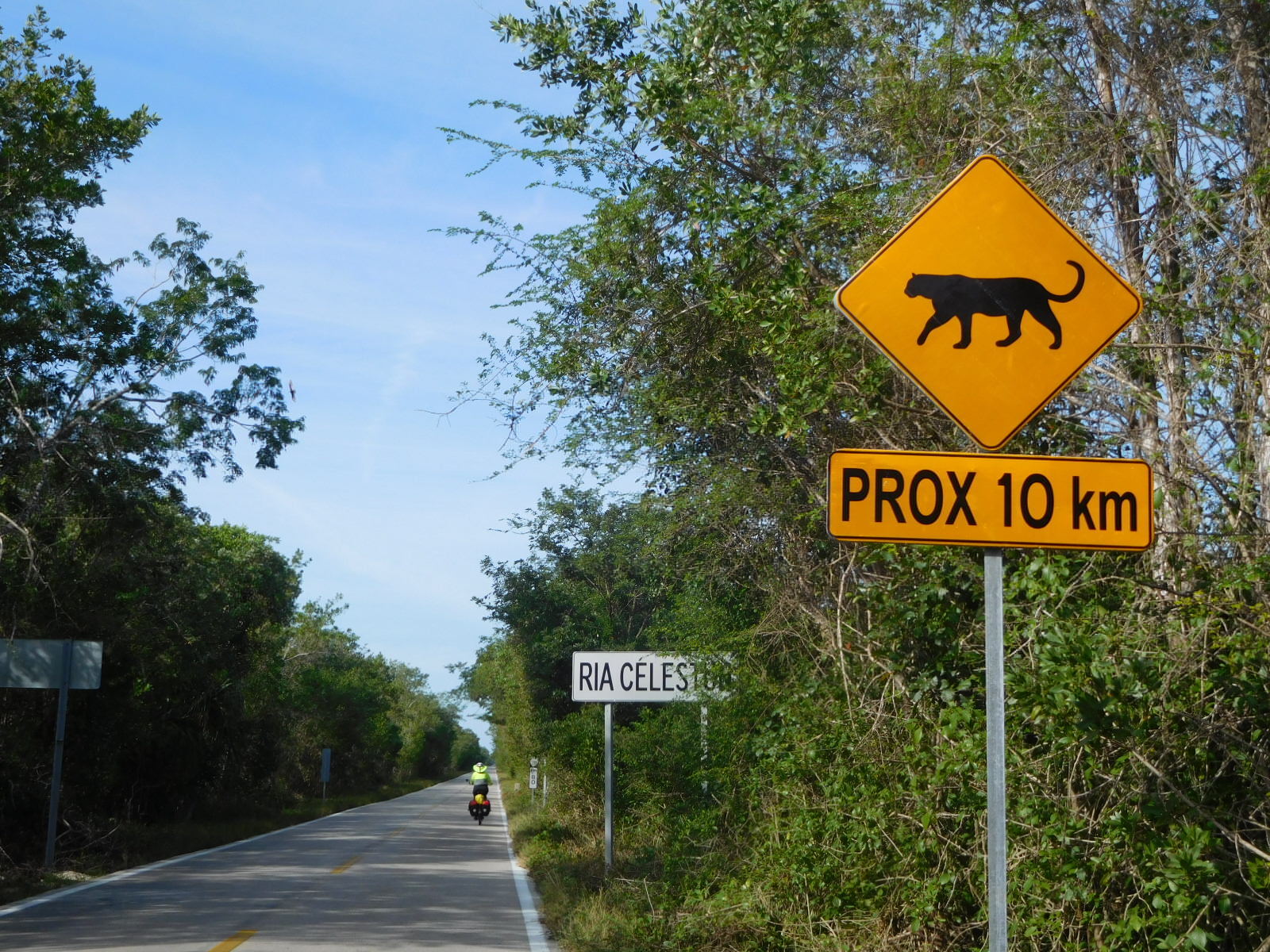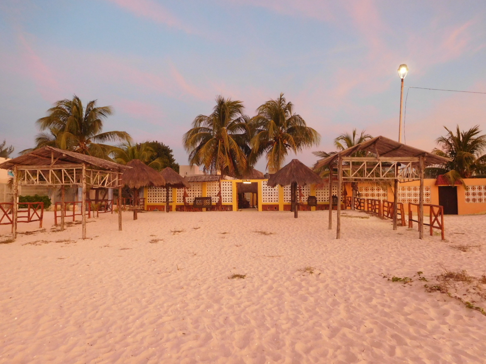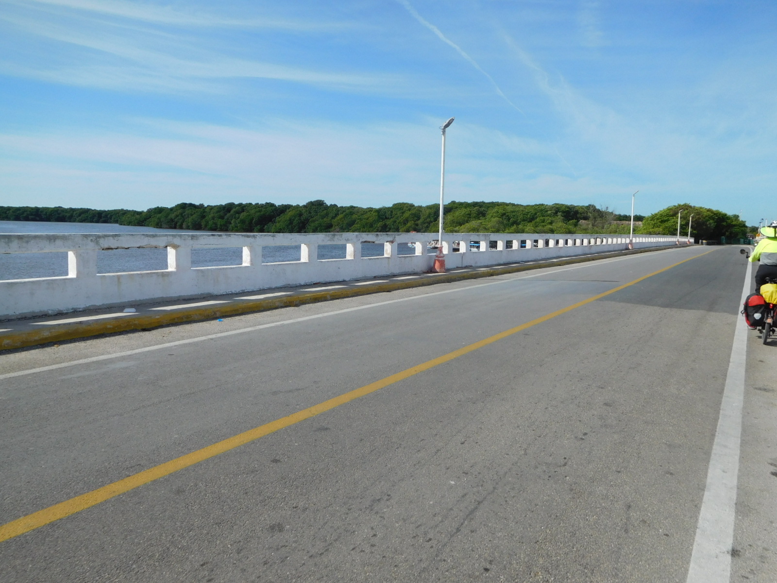 The Posada that we found for last night did the trick, and allowed us to be ready for the run to Celestun. The only thing, Dodie came down with the same diarrhea I had. But quick application of Immodium had her mostly ready to go. We went at 5 a.m. , so as to almost be there before the full pôwer of the sun bit the road. As a special luxury, instead of filtering the typically warm tap water, we stopped at OXXO and loaded up on ice cold water. We can keep much of this cold because many of our water bottles are double walled. We put some peach juice into the water. This would be our only nutrition outside of a few mini bananas. Right now neither of us is up to actually eating anything.