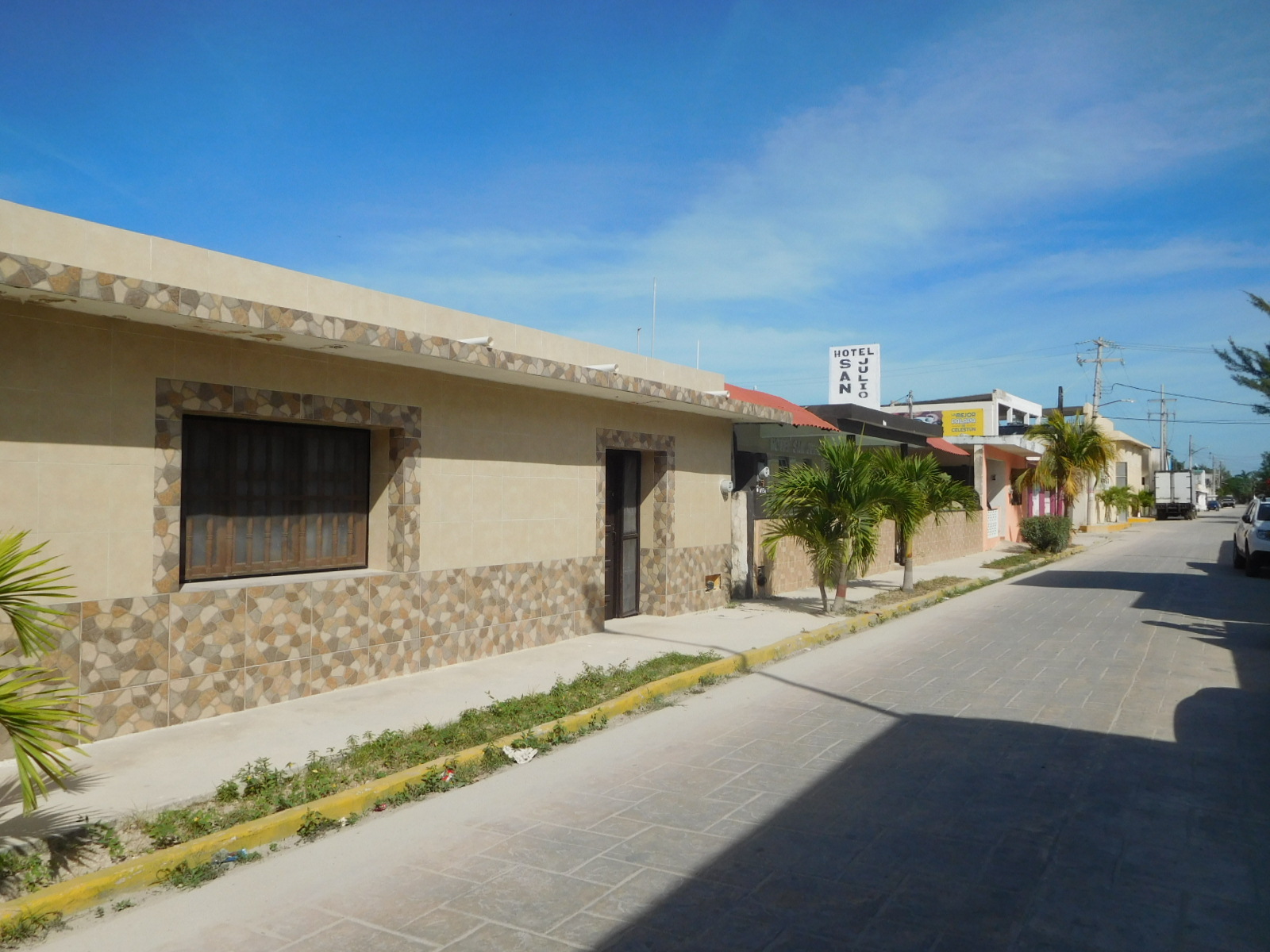 The town of Celestun looks much like an other Yucatan small, town, but the street by the beach does have a more festive aire.