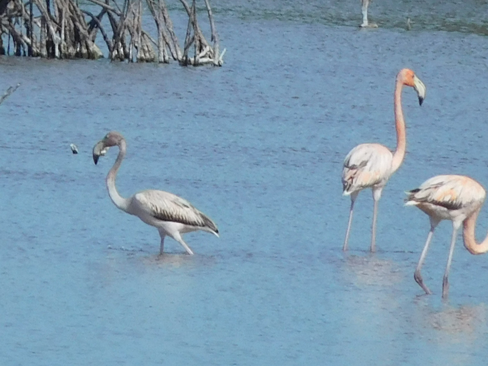 We came to the bridge, often mentioned as one place to get a flamingo boat tour, and well, just over the bridge we spotted our first distant flamingos.