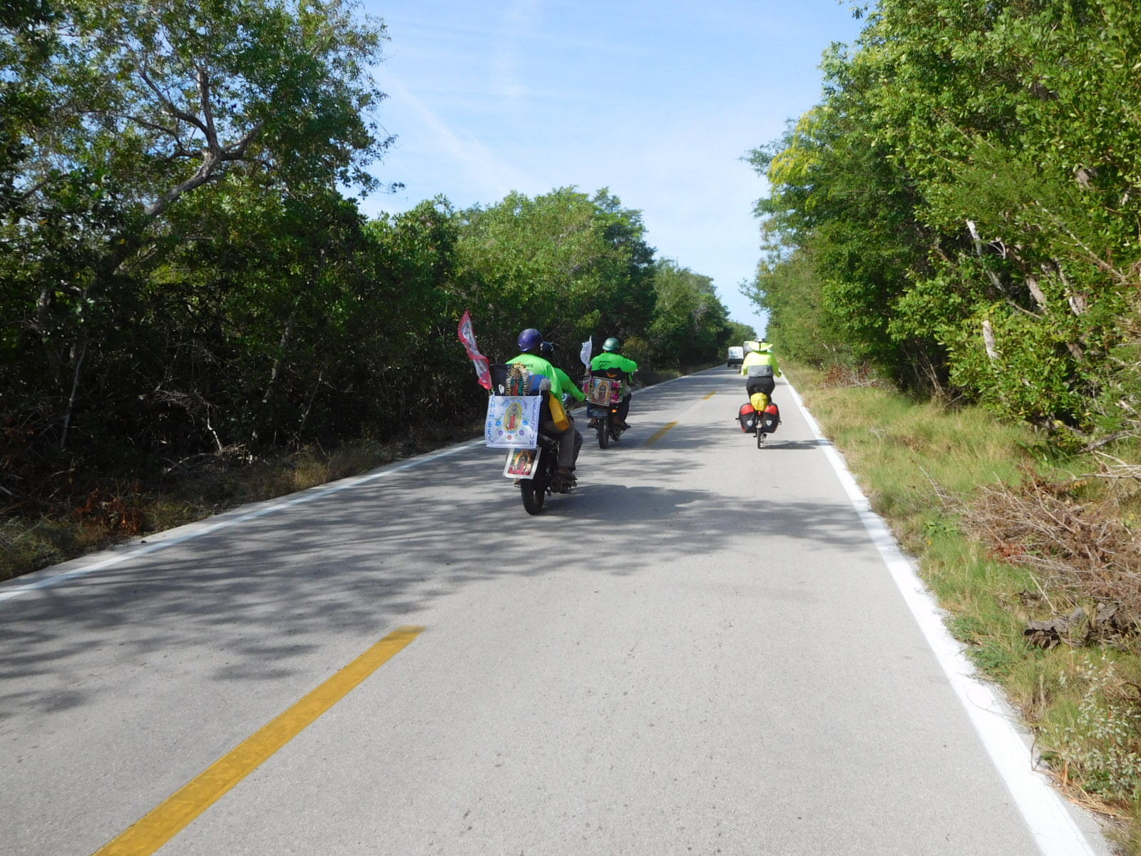 The road to Celestun is basically a straight shot, and has only the village of Kinchil, at the beginning of it. We didn't encounter much of note as we made the run. Well, there was another small motorized religious parade. These are obviously some sort of local tradition, and are accompanied by a lot of honking, flashing lights, and sirens.