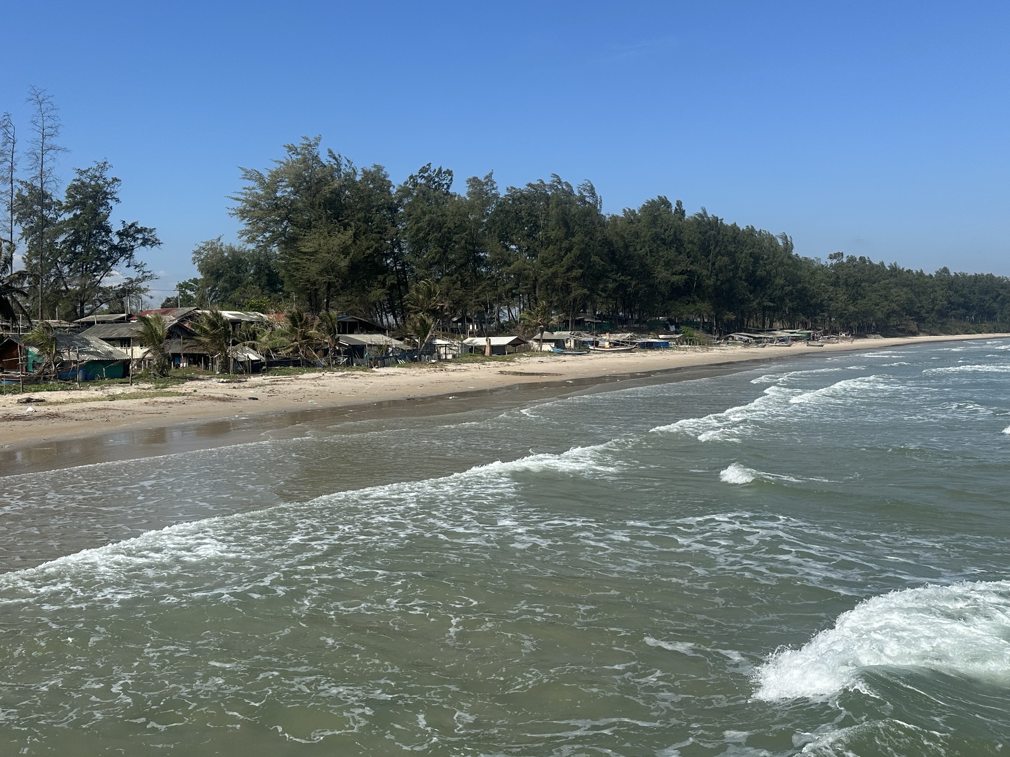 As Ban Boet seemed to have a couple of nice looking coffee places, we opted for a later start this morning so we could have iced coffees and a (very) early second breakfast. The surfers were up early this morning, so we got to enjoy our coffees and omelette while watching them carve up the waves.  This bike touring life is rough, I tell ya.