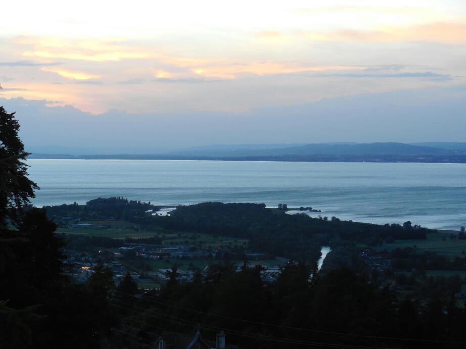 Delia had some supper ready for us, and after we settled down to watch Germany defeat France in the World Cup. Then it was time to start writing this blog. I was doing it, when Bernie suddenly said "Hey, we could drive to Switzerland for an overview of the Lake". "What, at 8:45?" I said. "Sure!".