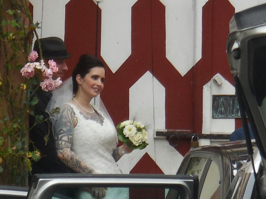 There were happier images up there as well. I snapped a bride, for example, who was really doing the official photo session for her wedding. We passed as well an old hotel - the Deuring Schlossle - where we noted that you could get a ravioli type dish, for example, for 36 euros. A room was 300-400 euros. Not that much, really - we have seen higher. Bernie said that this is where David Bowie had stayed when he had a gig in Bregenz.