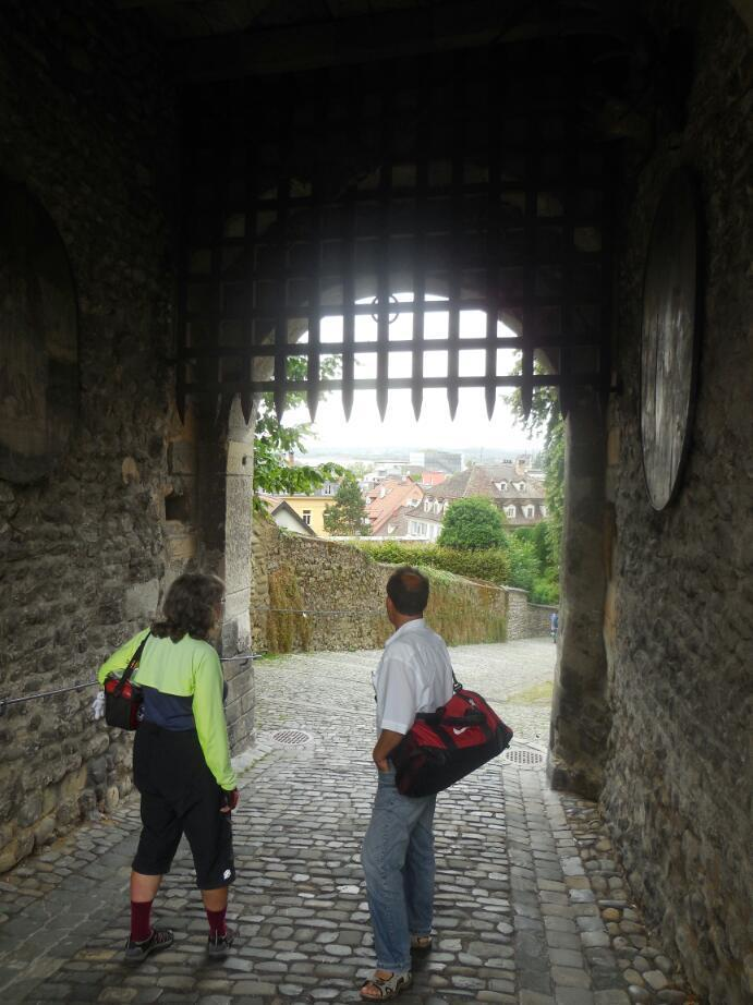 Before heading for Hochst, Bernie took us for a spin around the sights of Bregenz. Bregenz has a fun pedestrian street, but Bernie also took us up to the Oberstadt - the older part of the city, up the hill. This was an area with old walls and gates, and a church that also featured very old and faded frescoes.