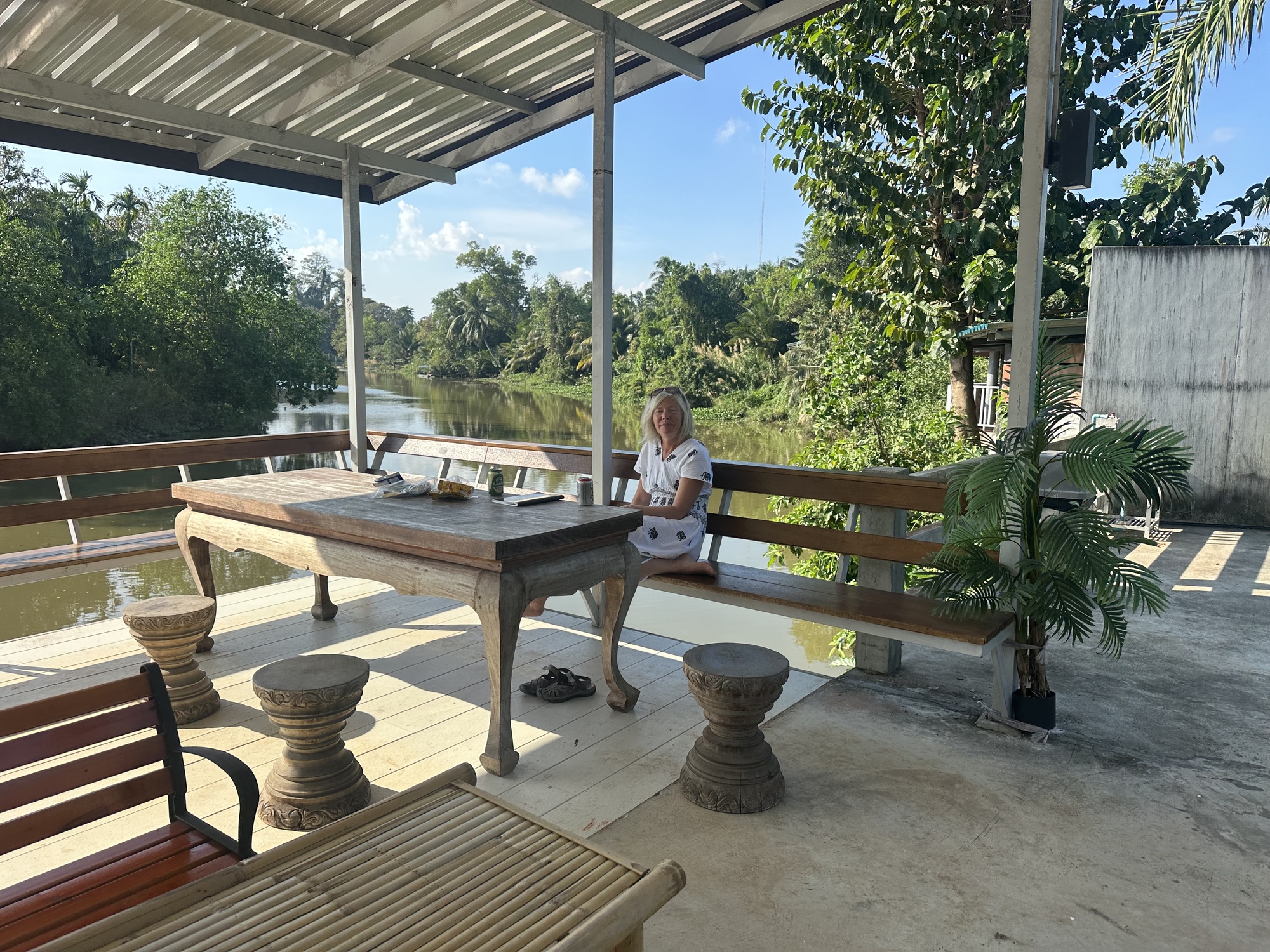 From there it was only another hour or so into the city of Chumphon — the first real town of any size we’ve been to since Hua Hin. Our hotel, another collection of bungalows, was located on the edge of town along the river, with a covered deck cantilevered out over the water — perfect for late afternoon bird watching and beer drinking.