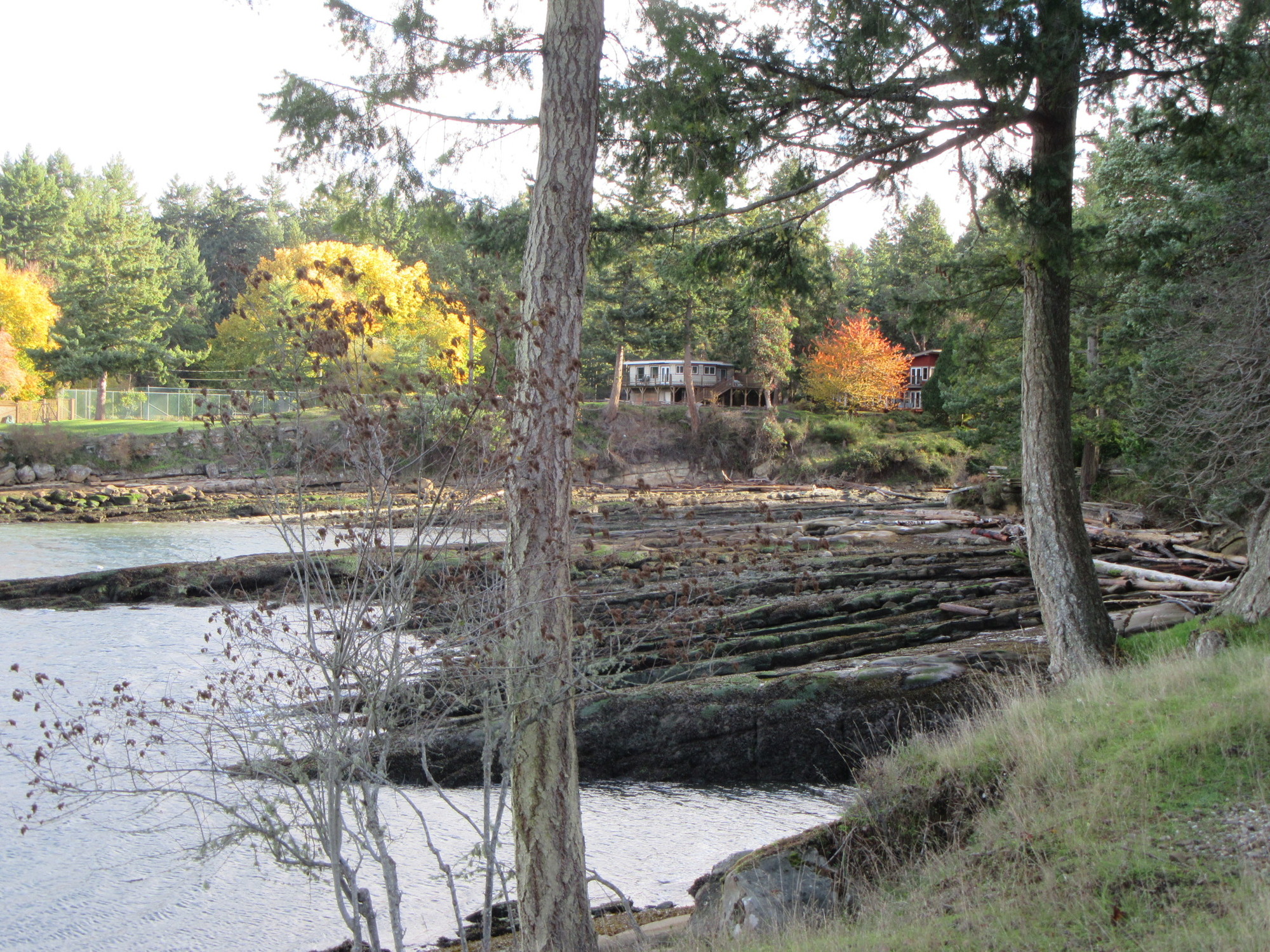 The bit of road that we were heading north on fronted Active Pass. Active Pass is burned into the minds of all residents of Victoria, who have repeatedly taken the ferry to Vancouver. If you zoom out the above map, you will see how a boat leaving Swartz Bay (Sidney) will pass between Saltspring and Pender before squeezing between Mayne and Galiano, Active Pass. After Active Pass it's a straight shot through to Vancouver.